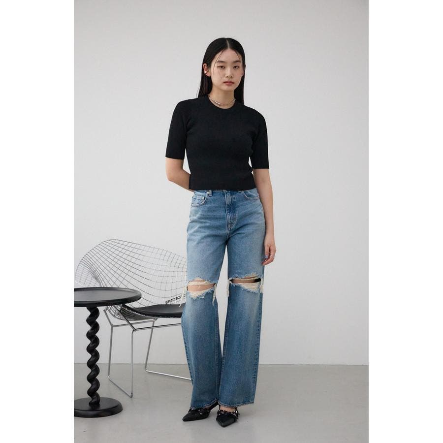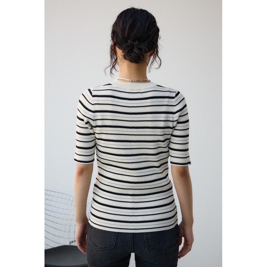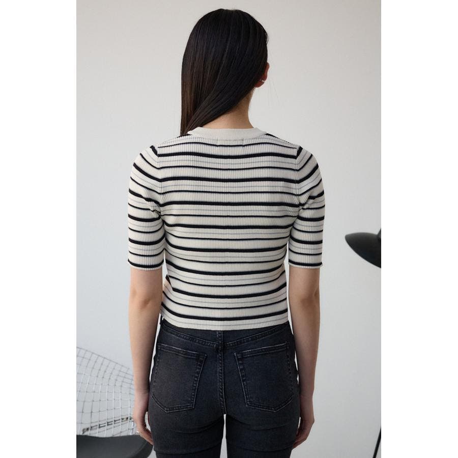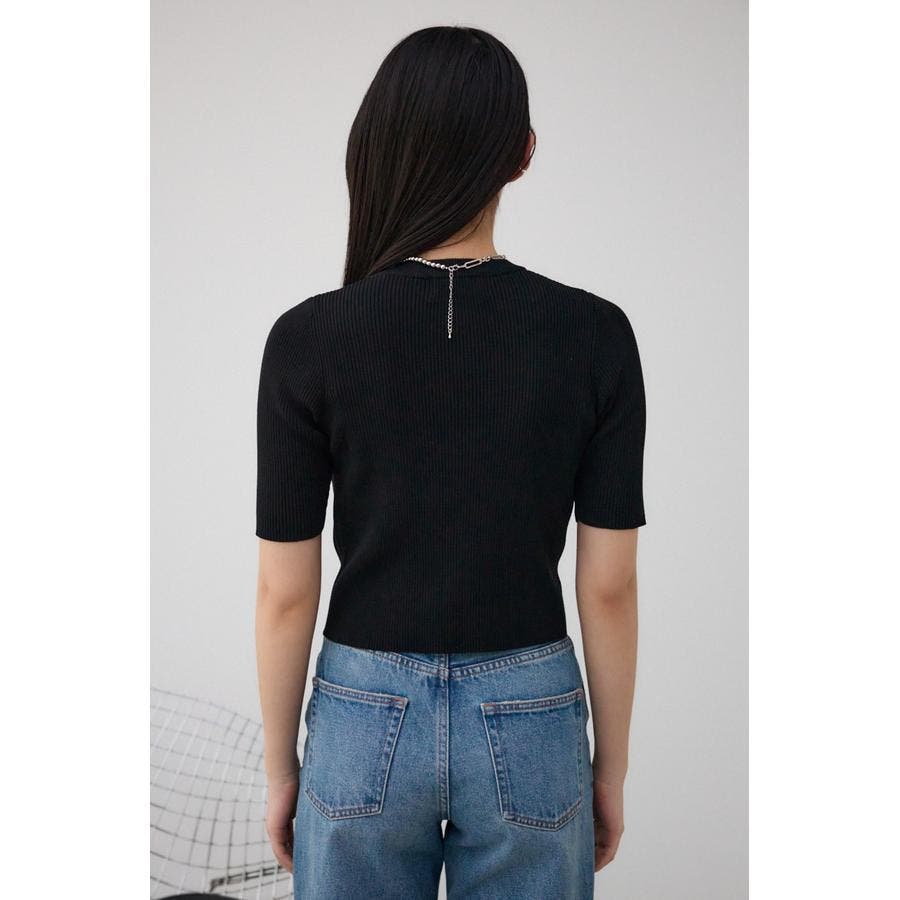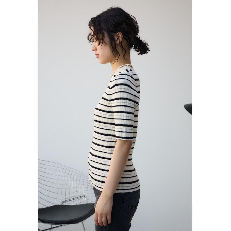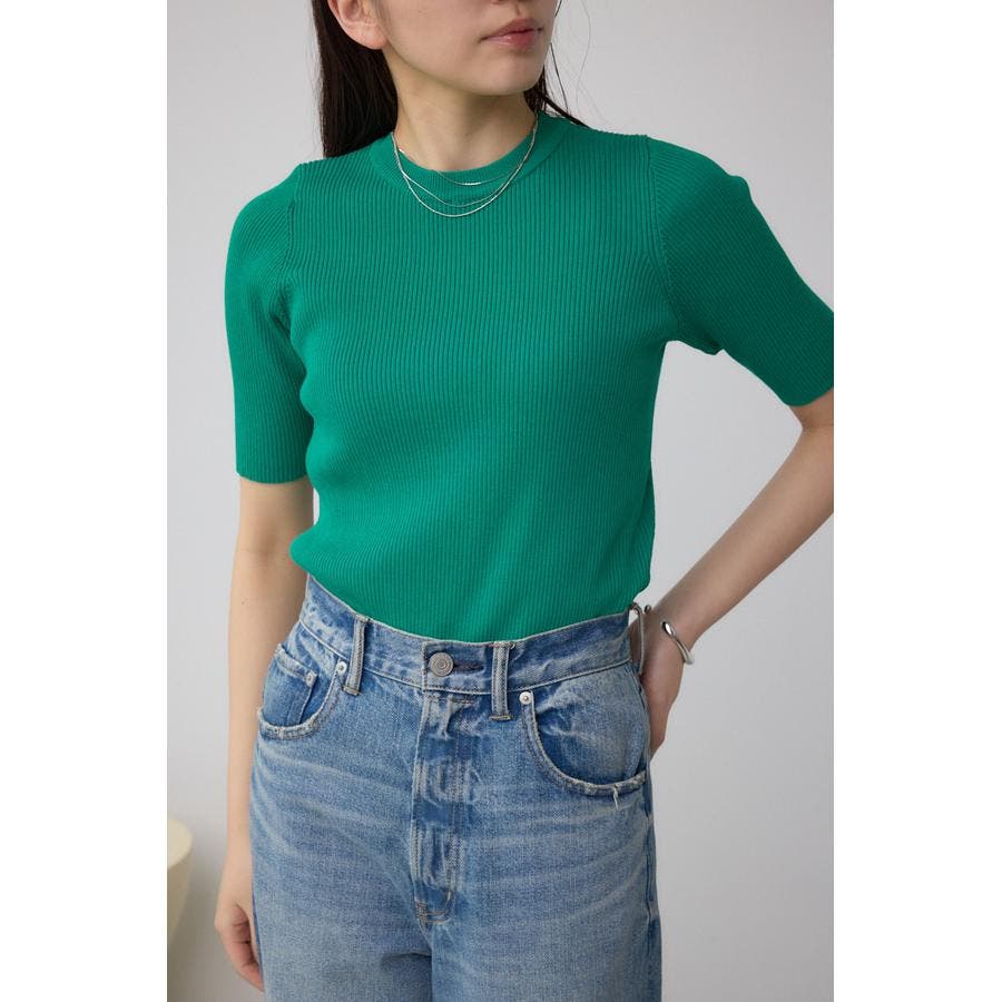 ■ハーフスリーブクルーネックリブトップス
