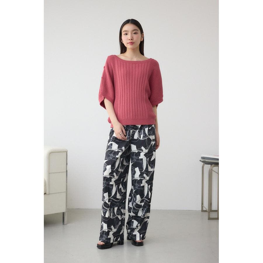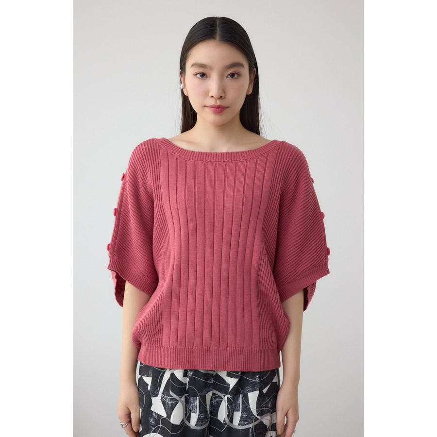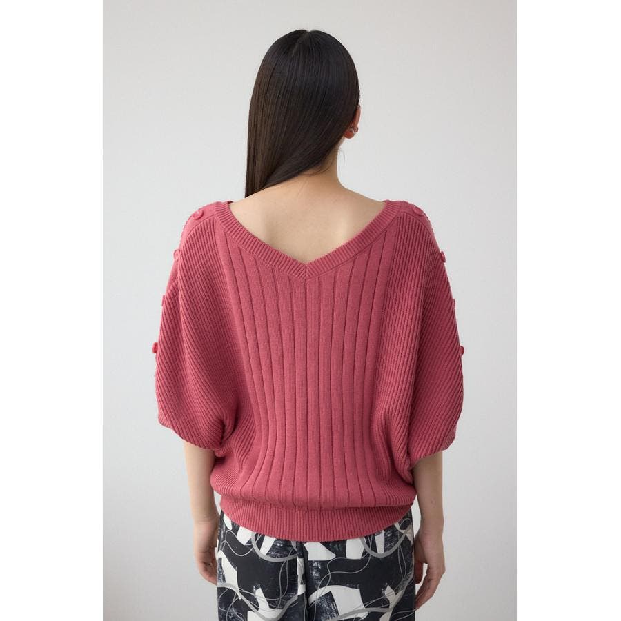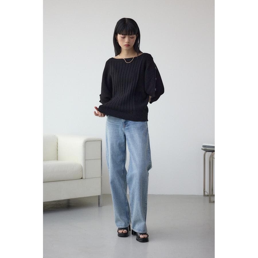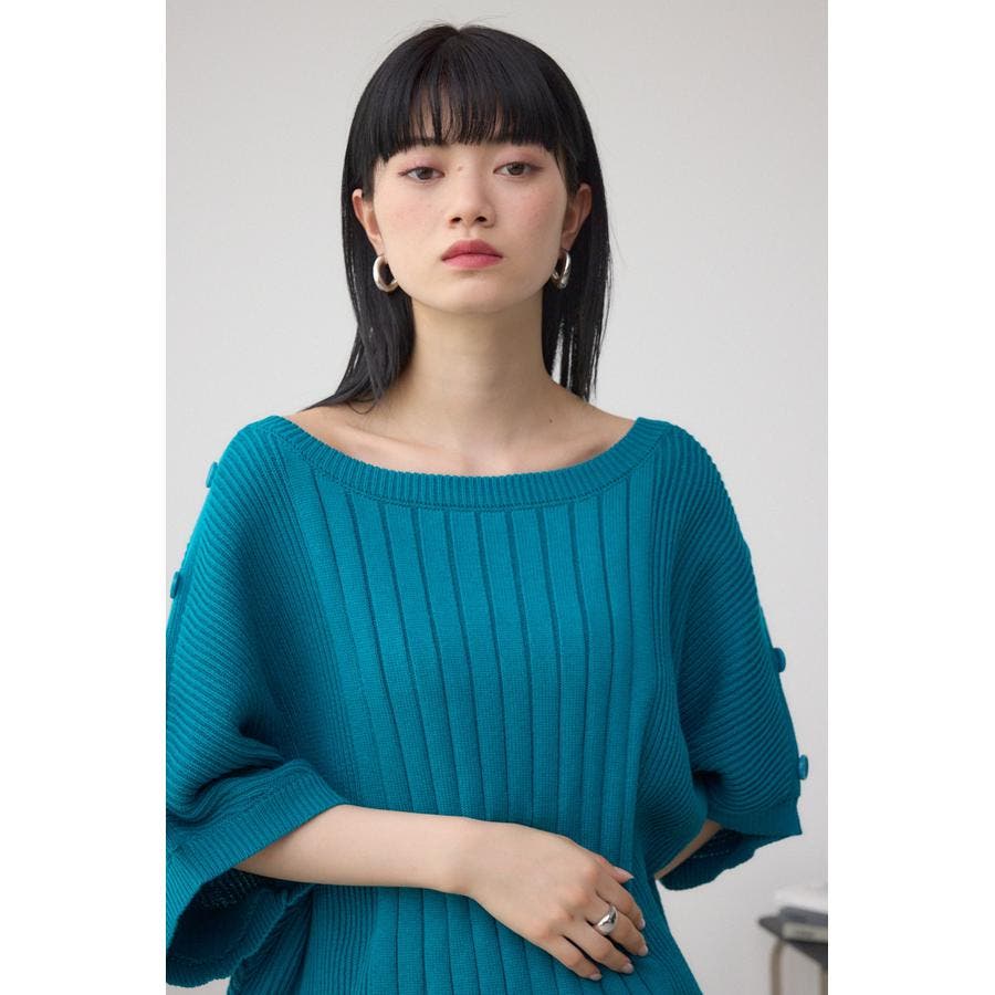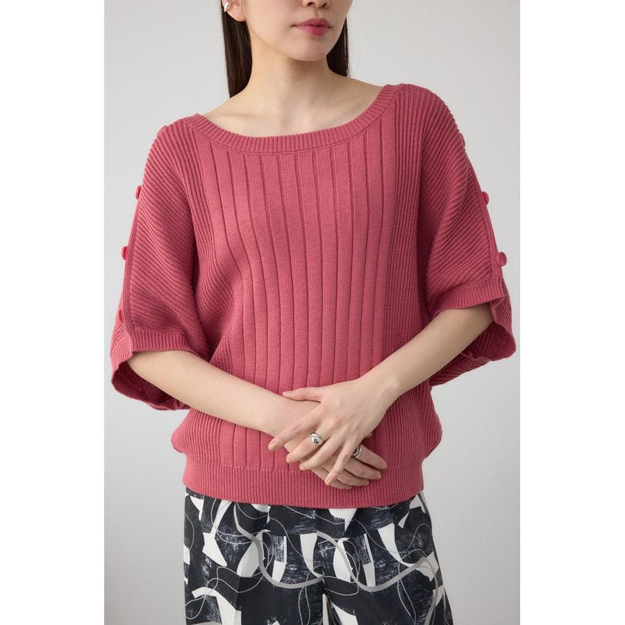 肩のボタンデザインが目を惹くデザインニット。