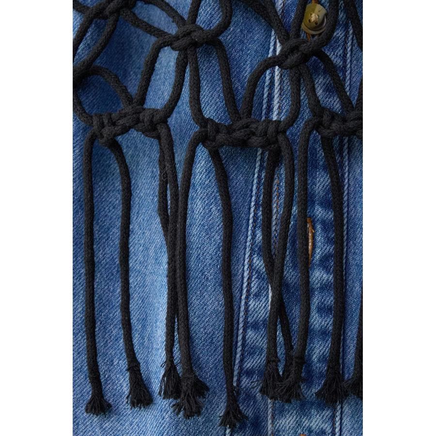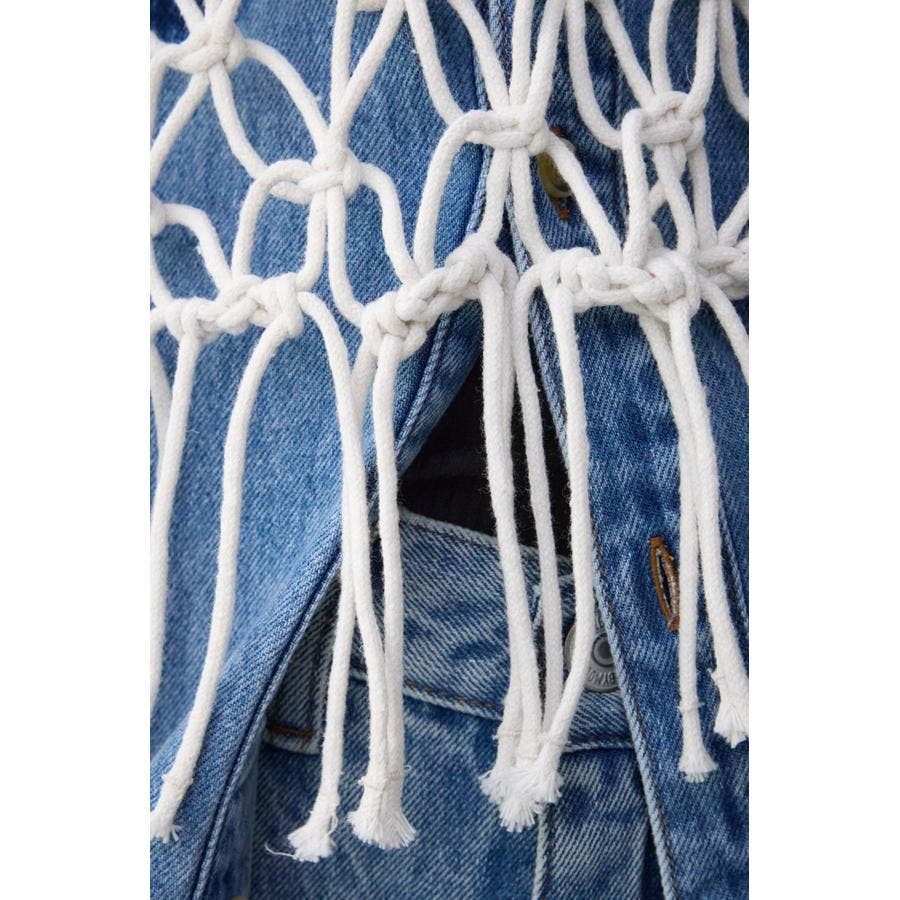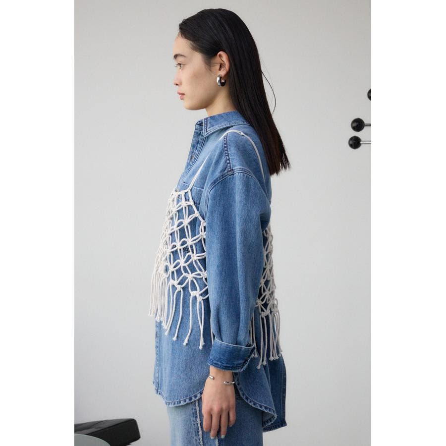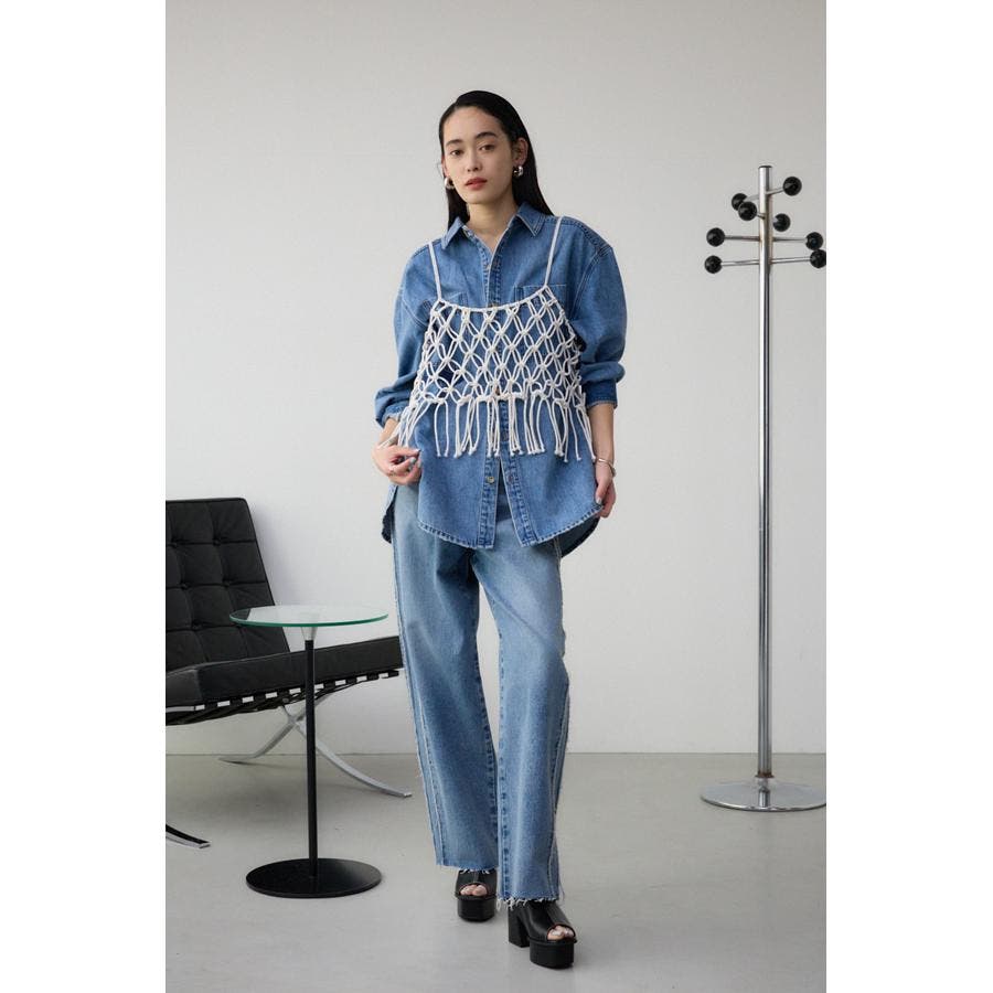 インナーとのバランスが取りやすい程良くコンパクトな丈感と、動きのある裾のフリンジがポイントです。