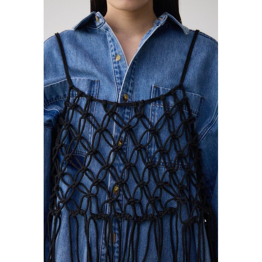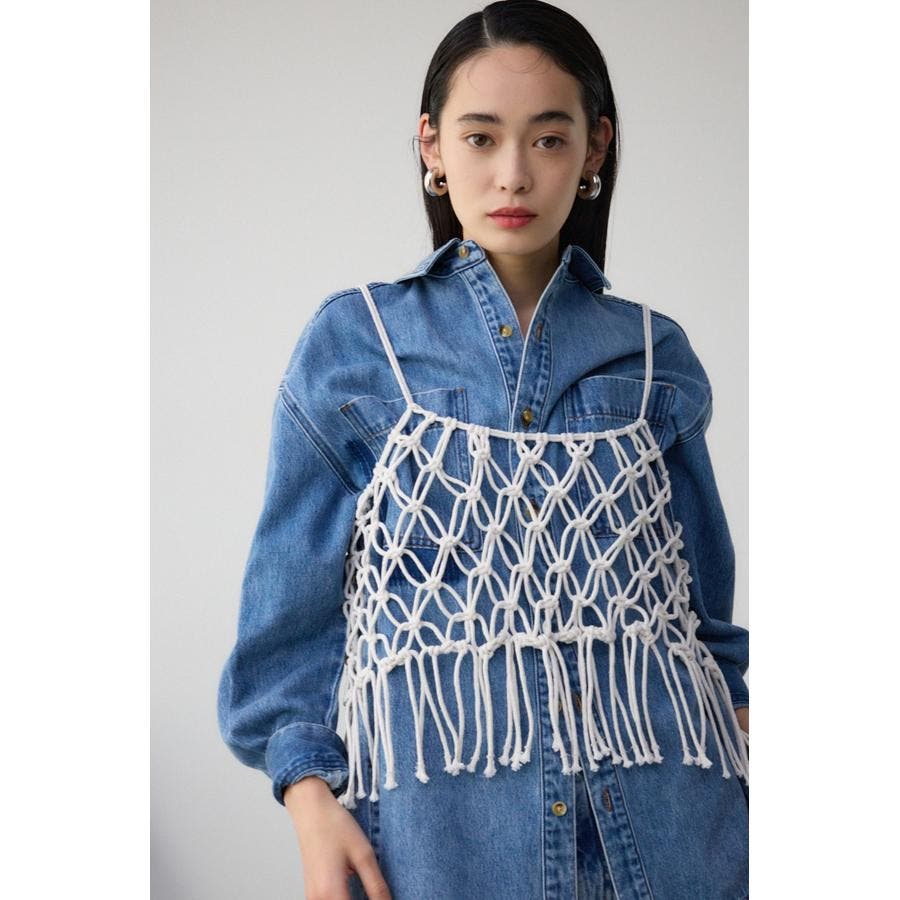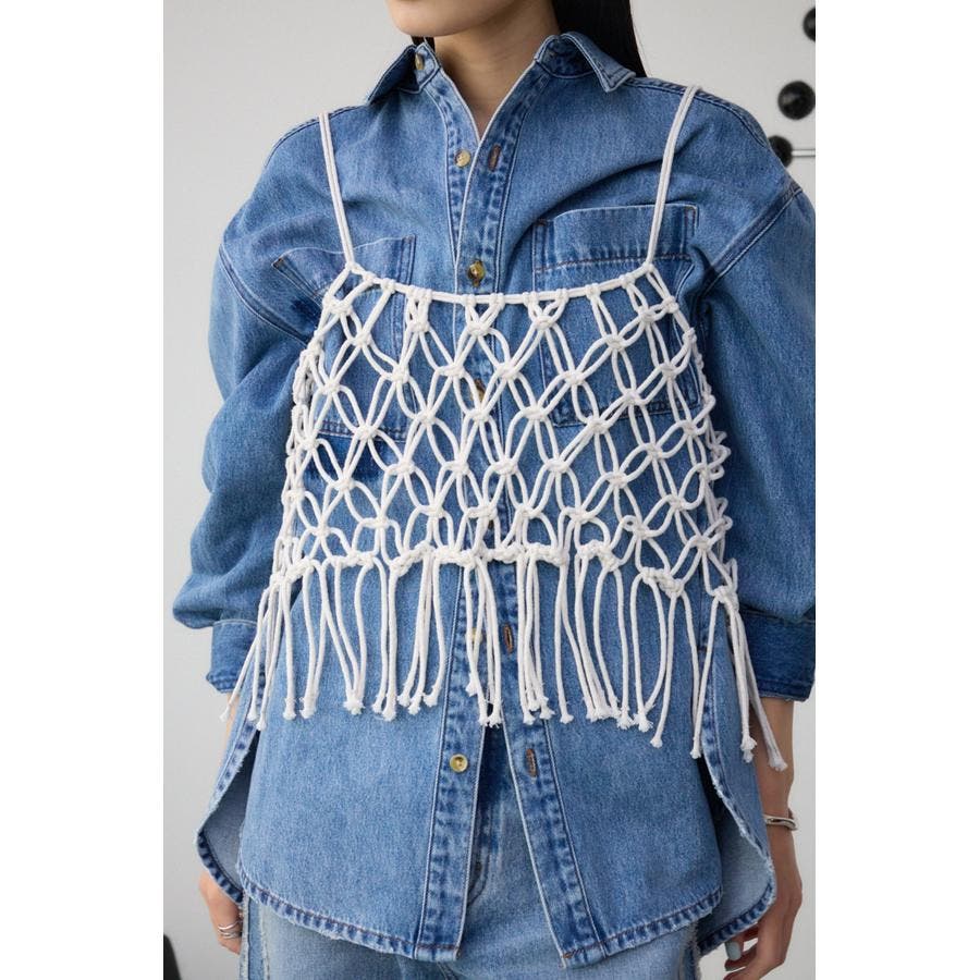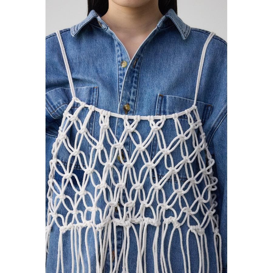 レイヤードスタイルにぴったりなマクラメ編みのキャミソール。