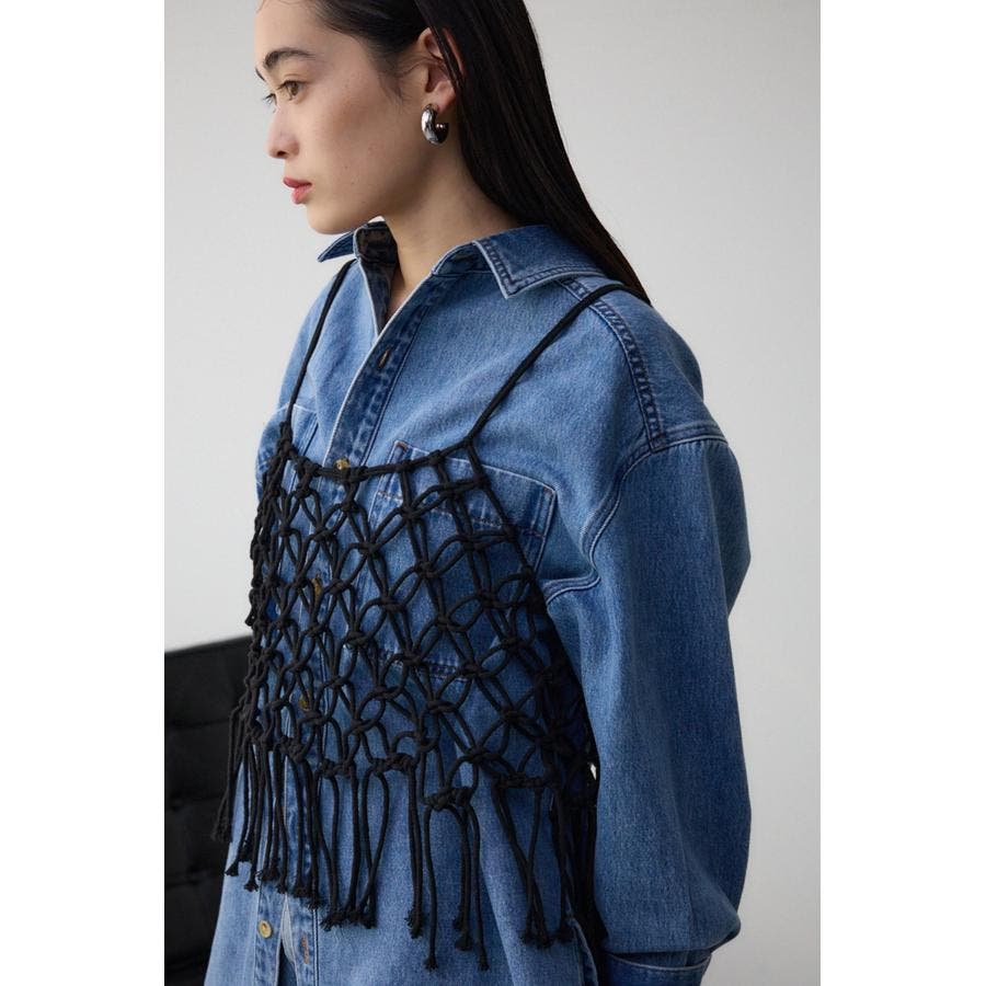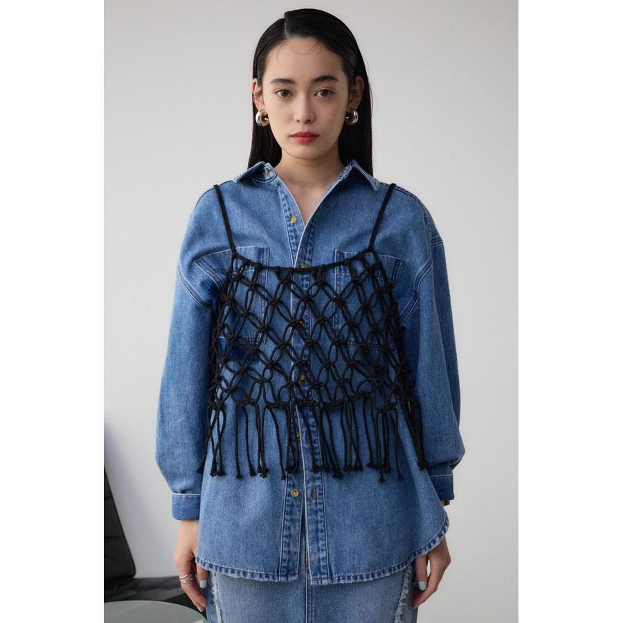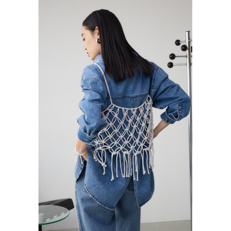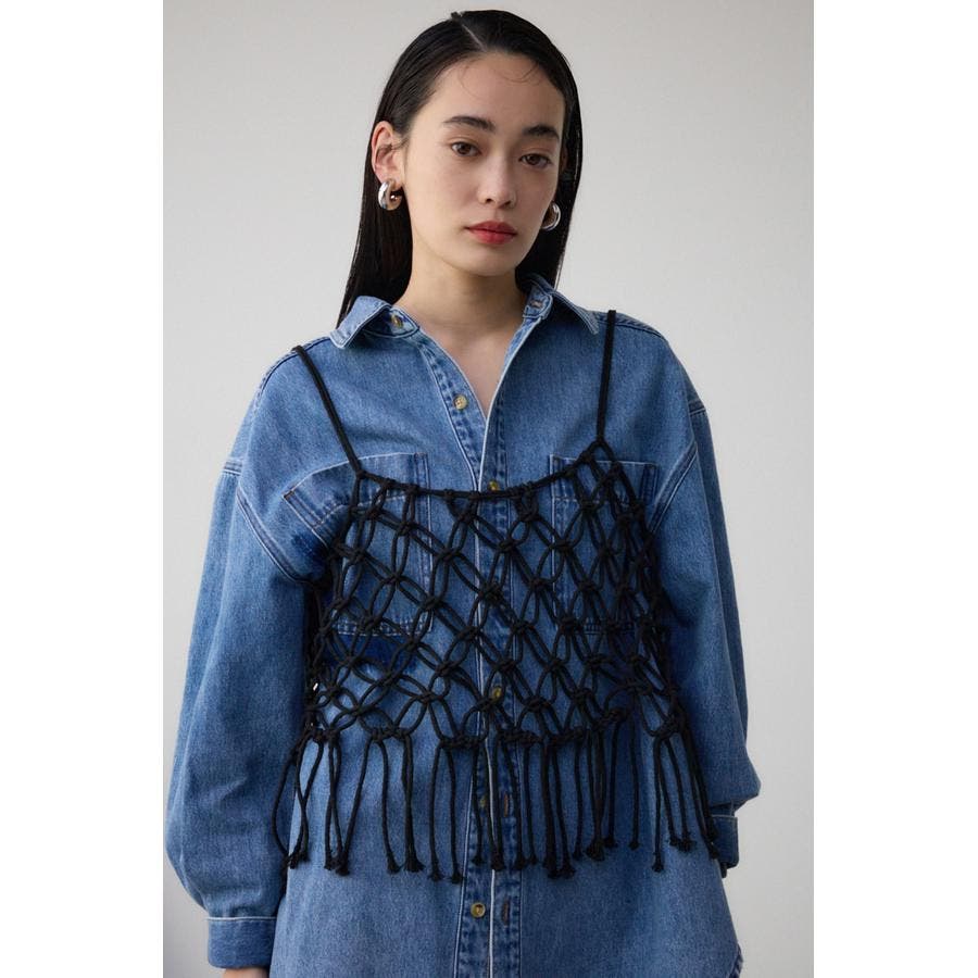 レイヤードスタイルにぴったりなマクラメ編みのキャミソール。
