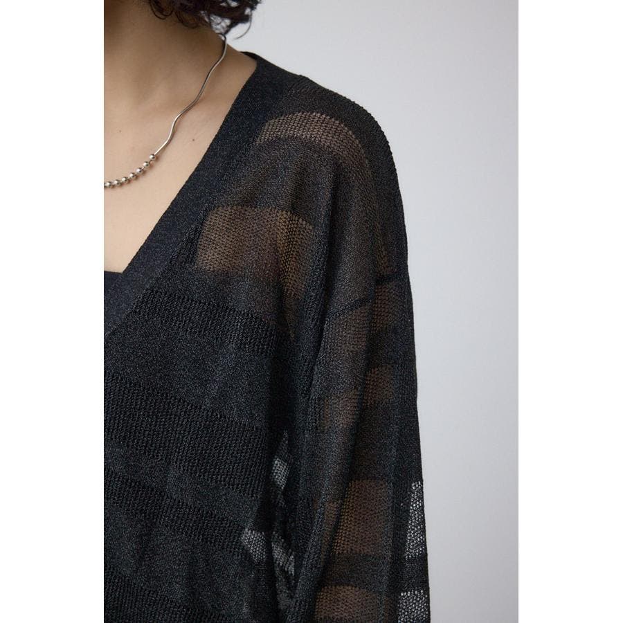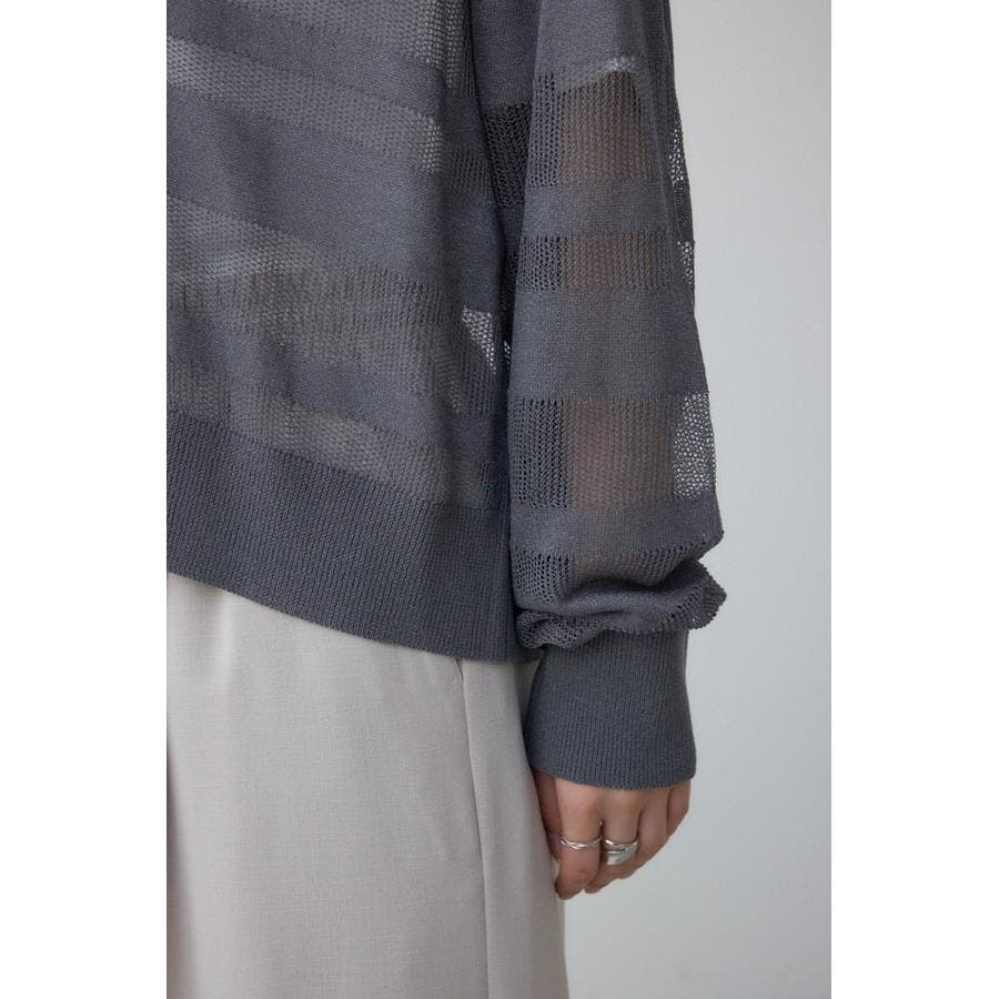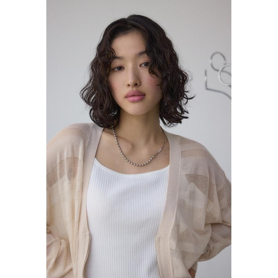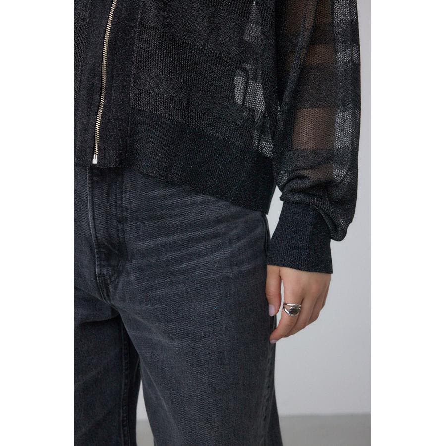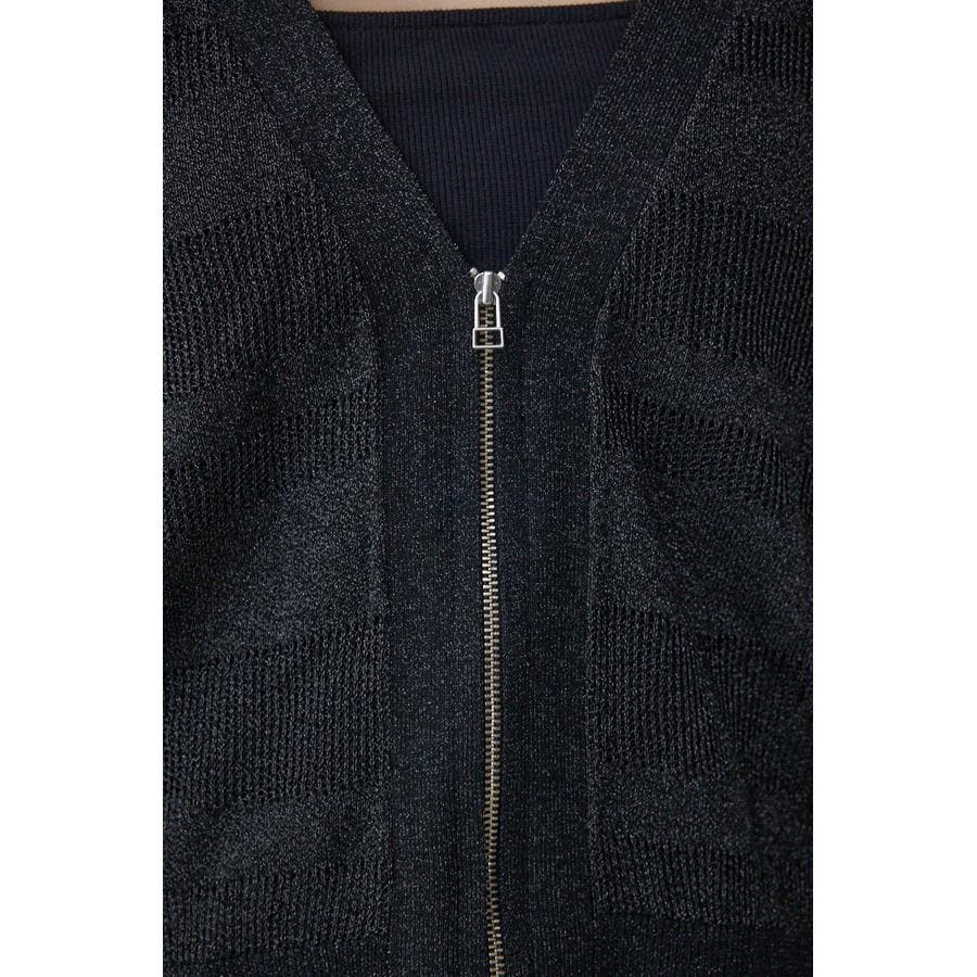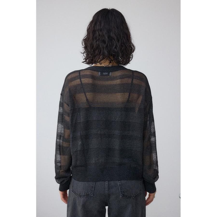 メッシュ編みのシアーボーダー柄のジップカーディガン。
