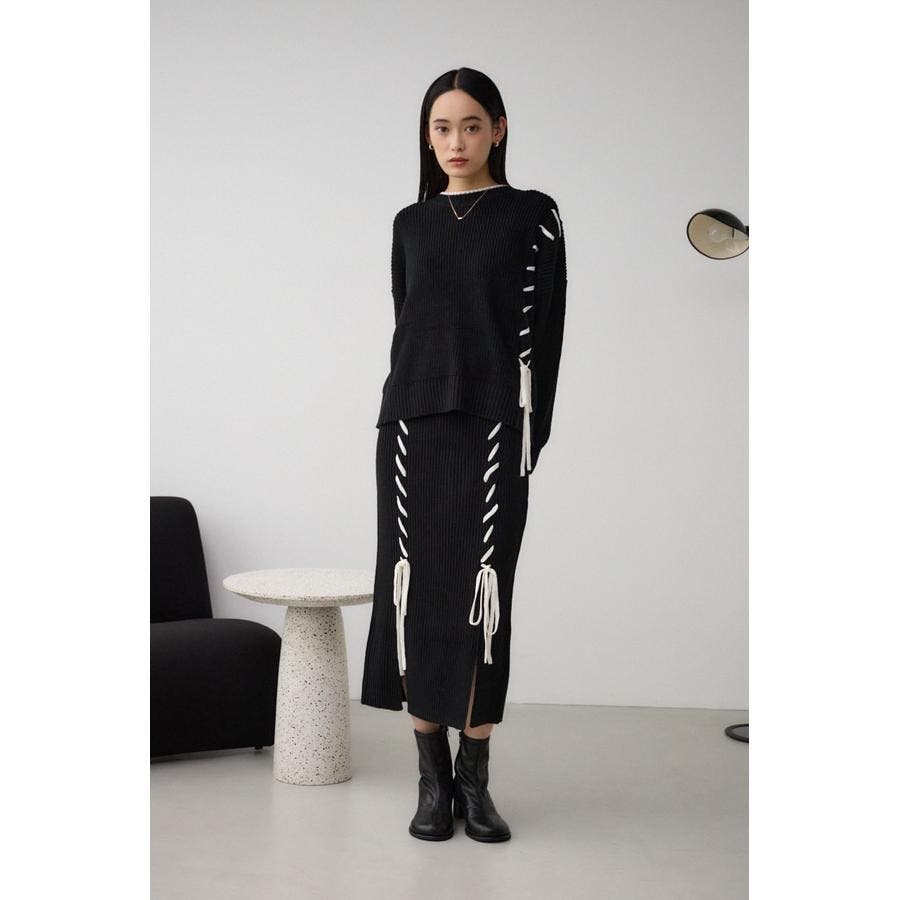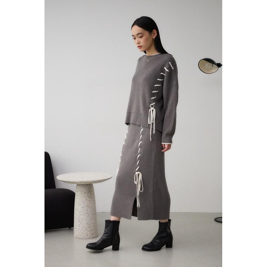 単品使いはもちろん、250ISB71-300B ステッチデザインリブスカートとのセットアップのコーディネートがおすすめです。