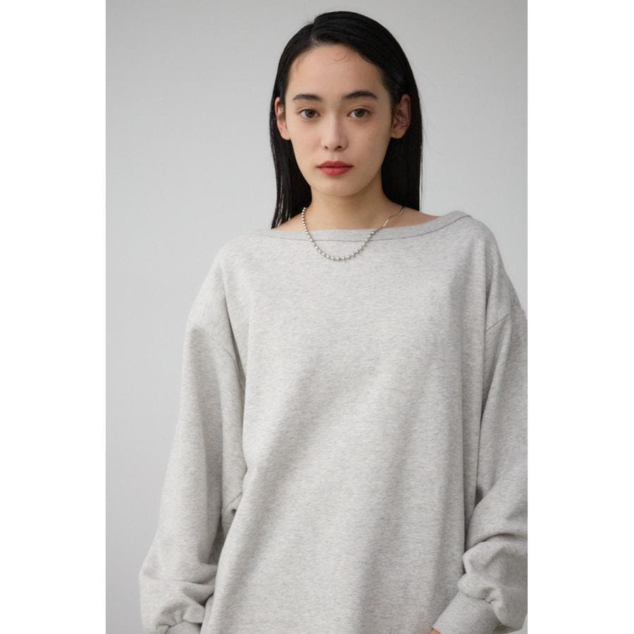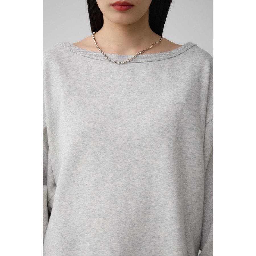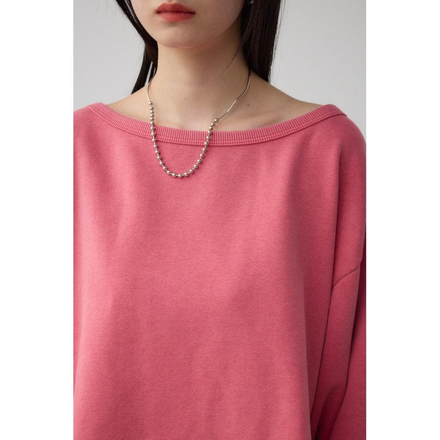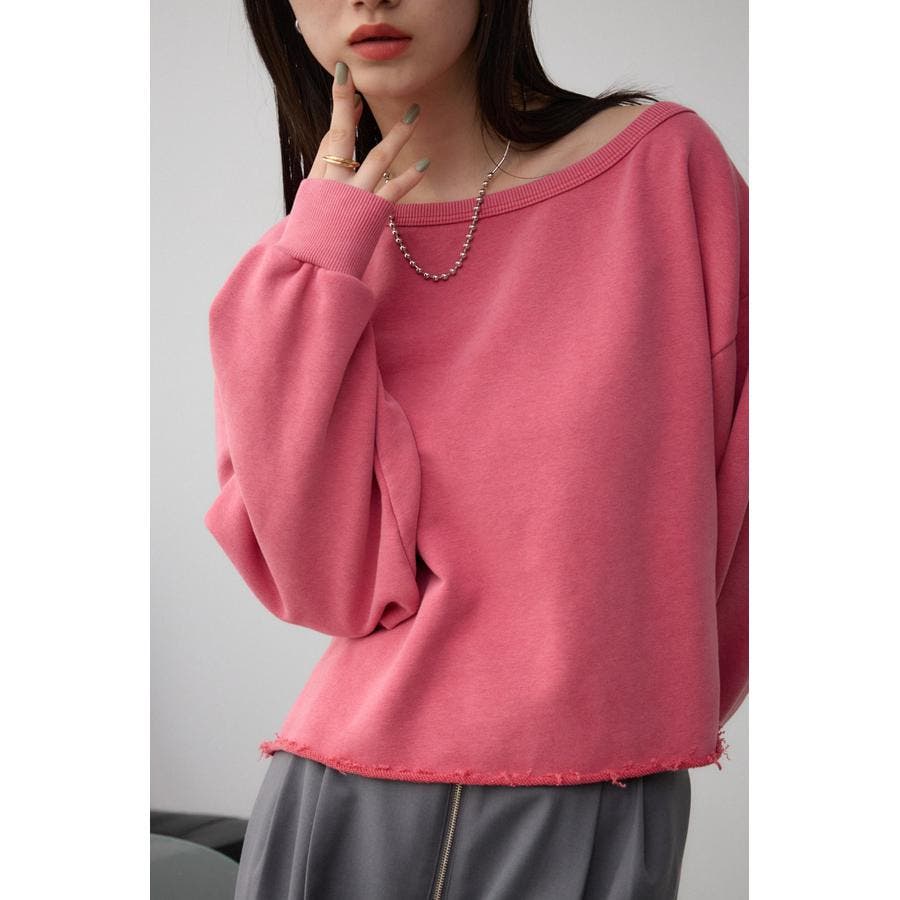 女性らしさを出したネックライン、カジュアルライクに仕上げた裏毛トップス。