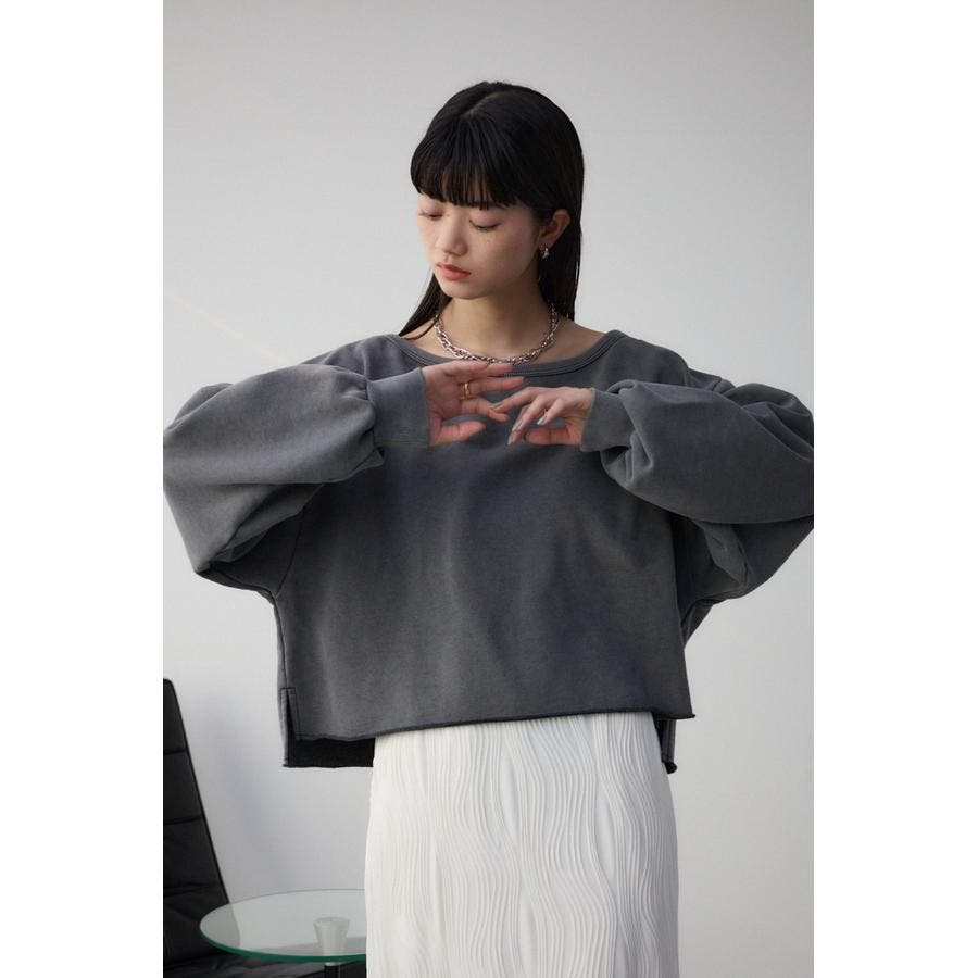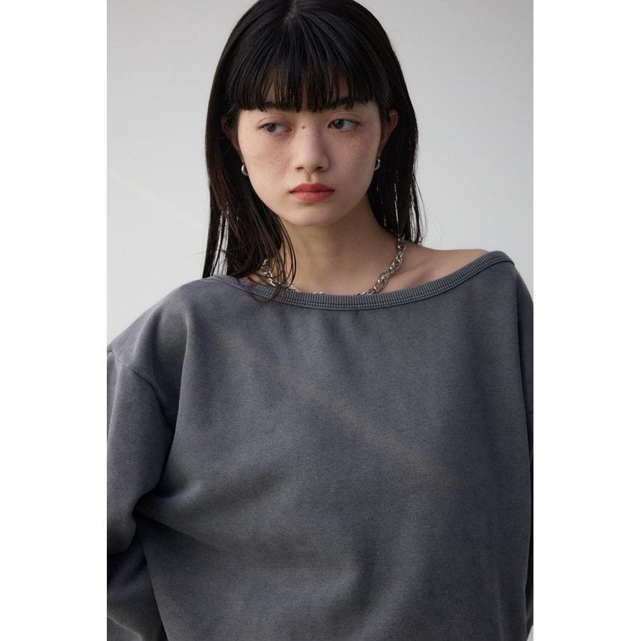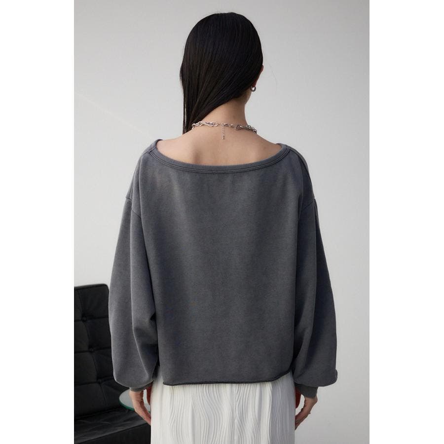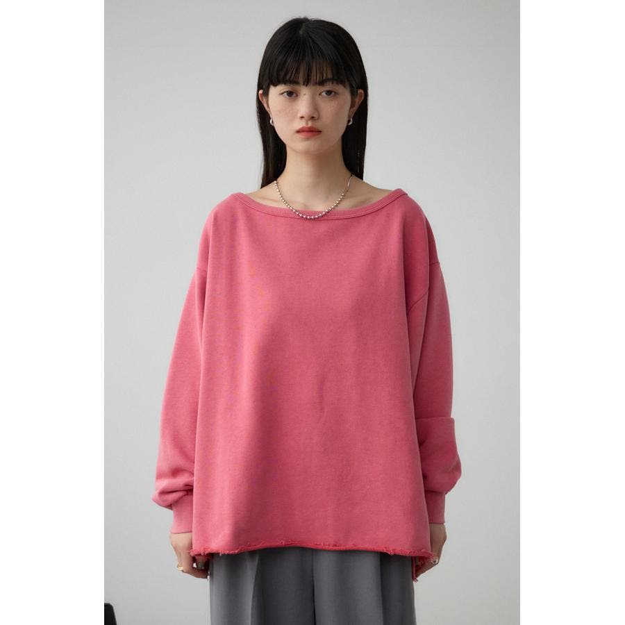 女性らしさを出したネックライン、カジュアルライクに仕上げた裏毛トップス。