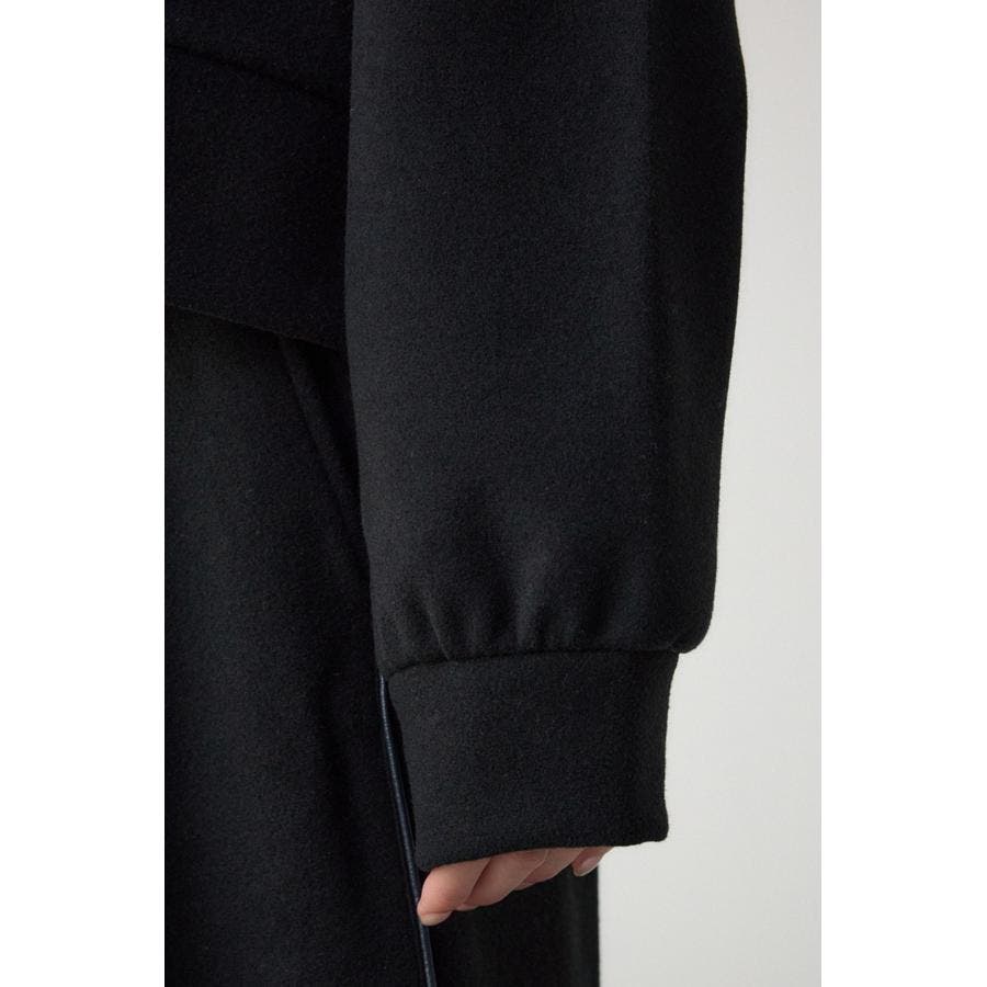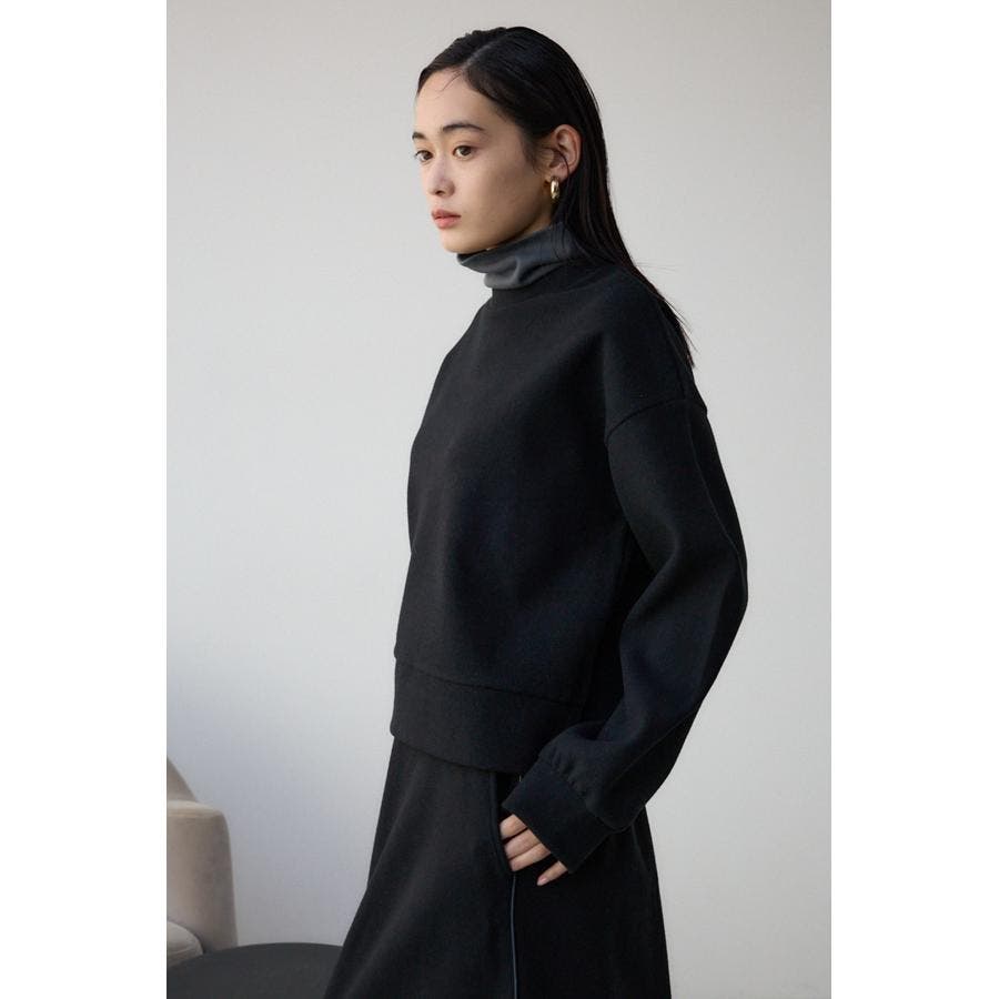 ウールライクな素材とリブ素材のタートルネックのドッキングしたトップス。