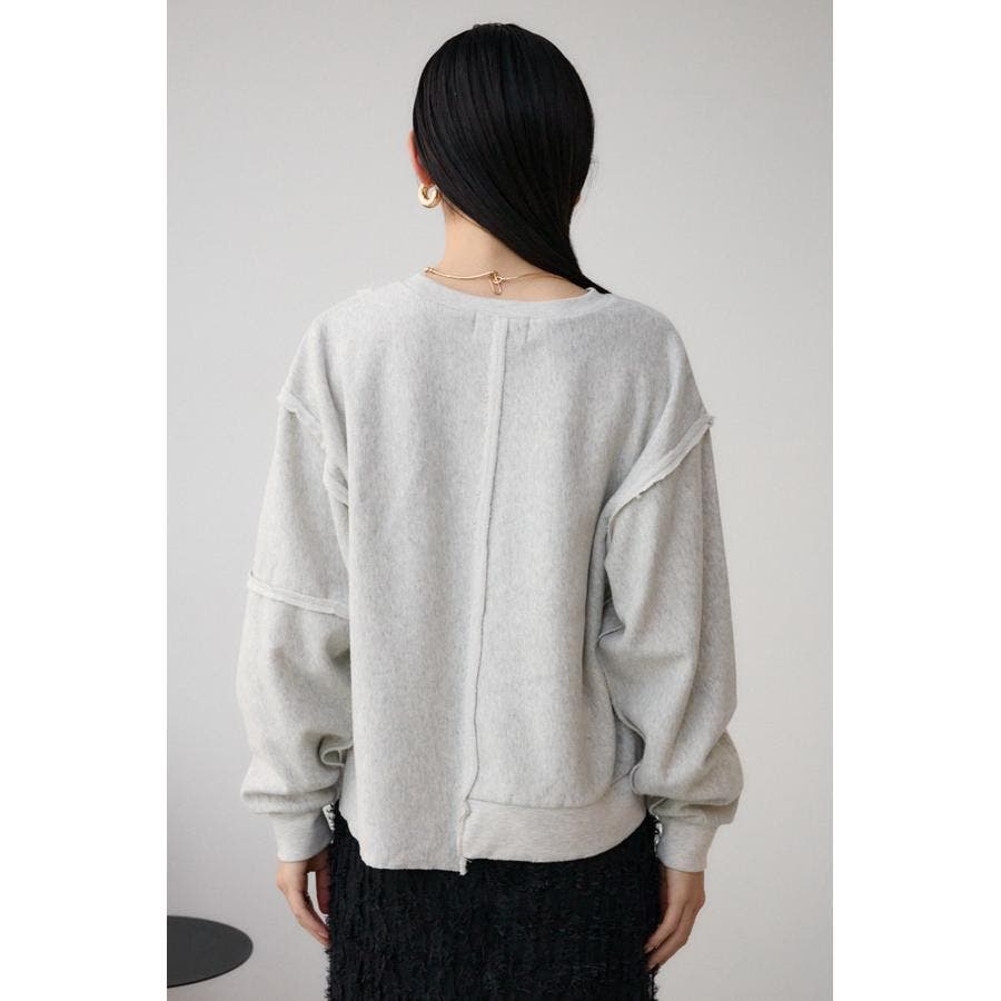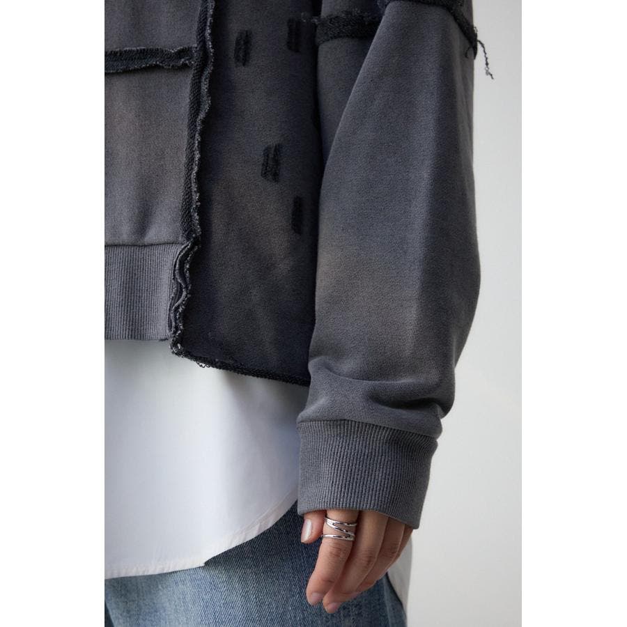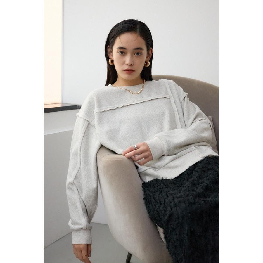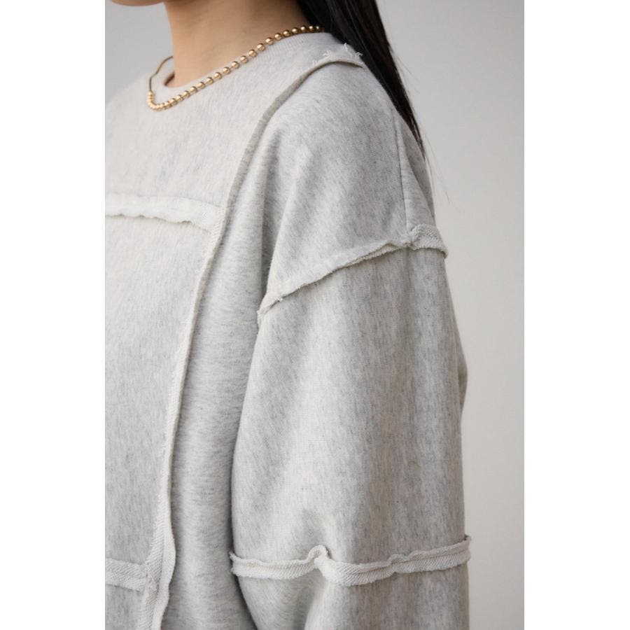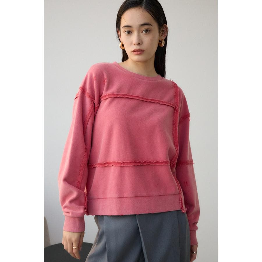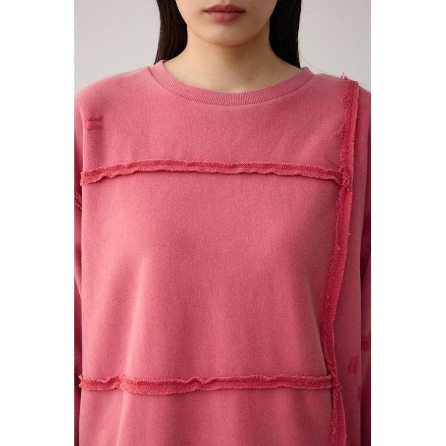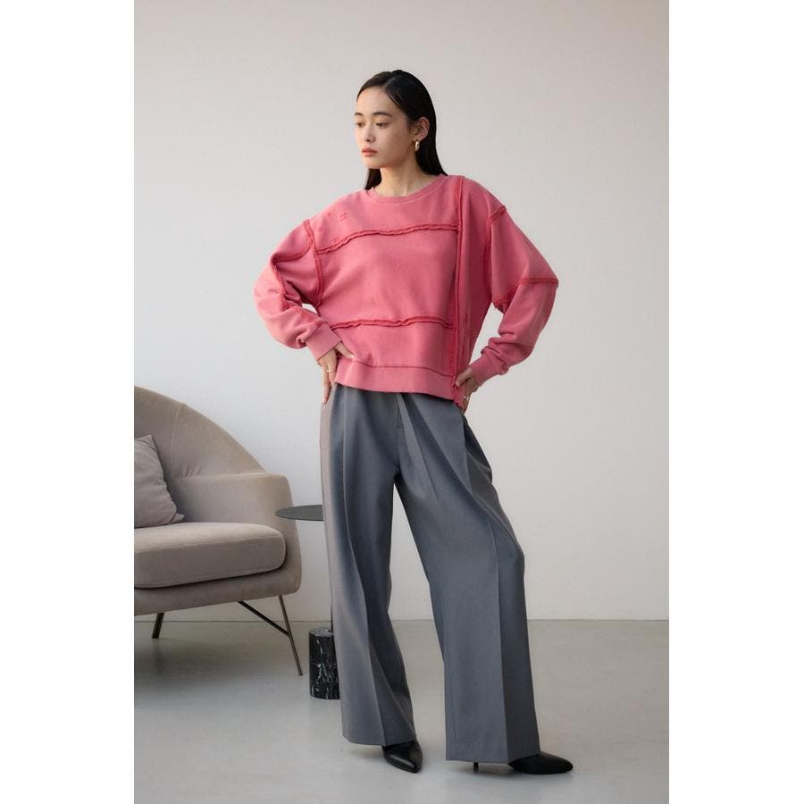 身頃の切替えが表情を出したダメージ加工のスウェットトップスです。