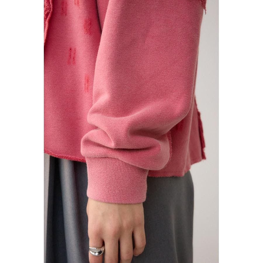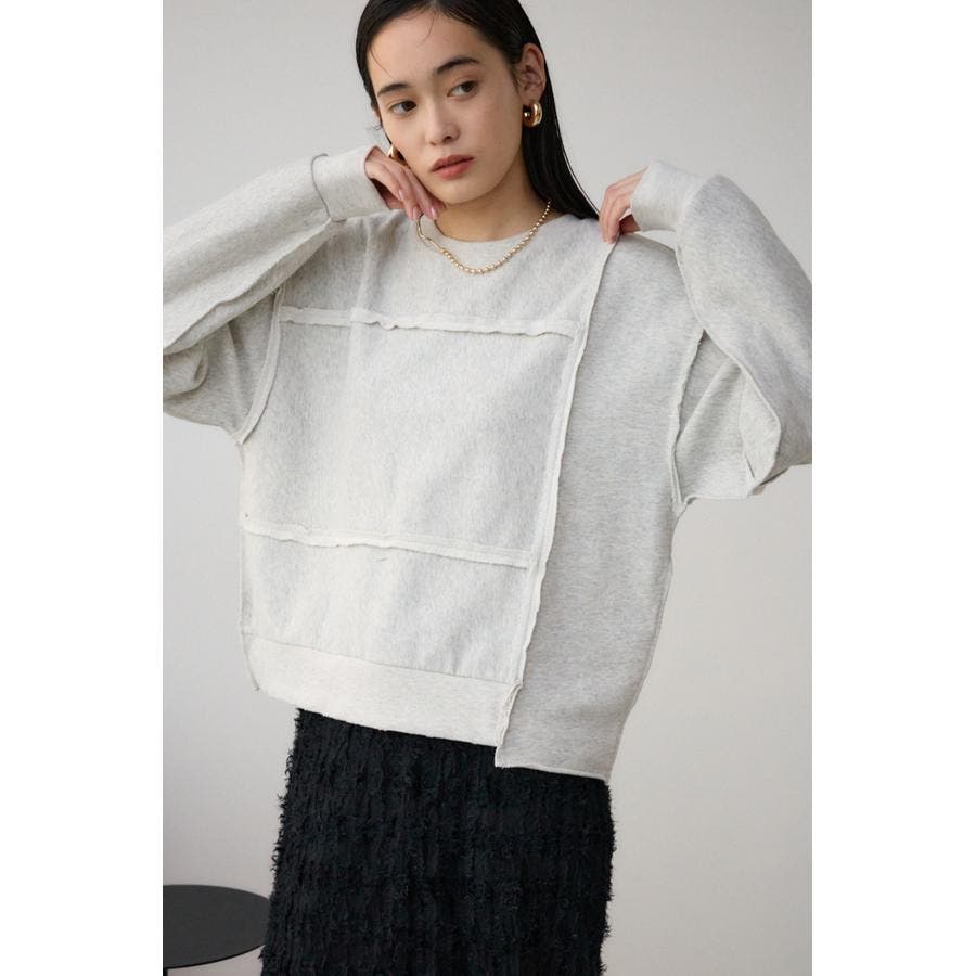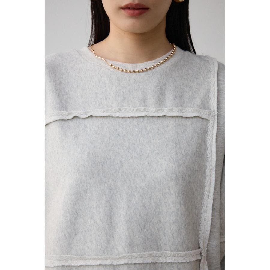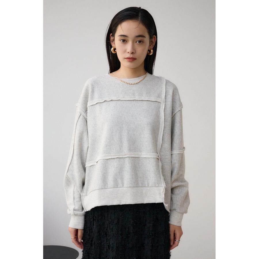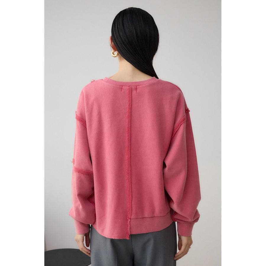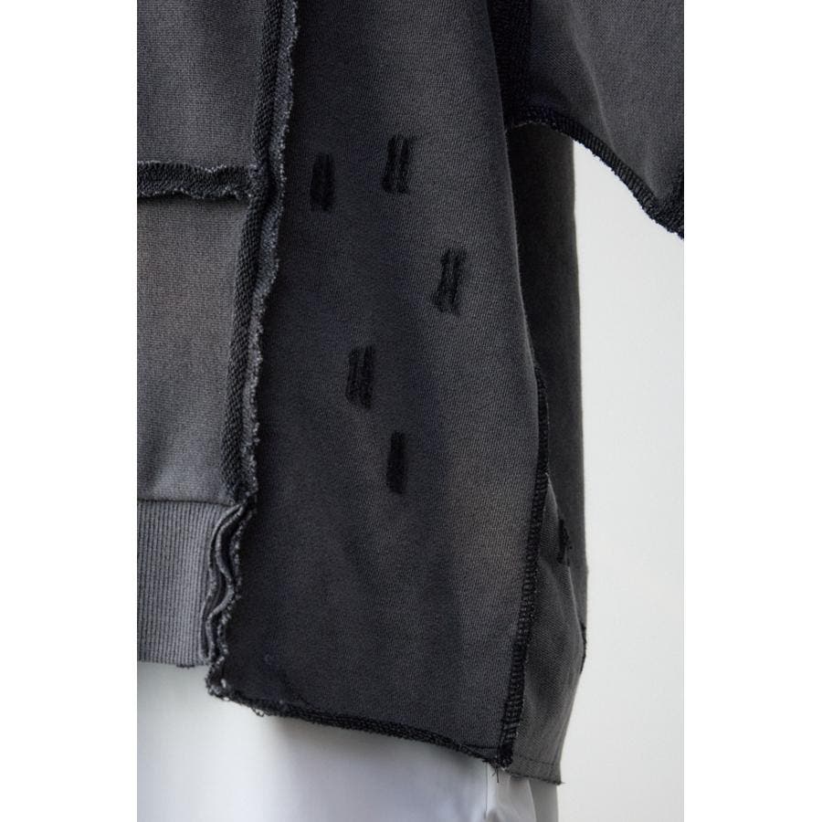身頃の切替えが表情を出したダメージ加工のスウェットトップスです。