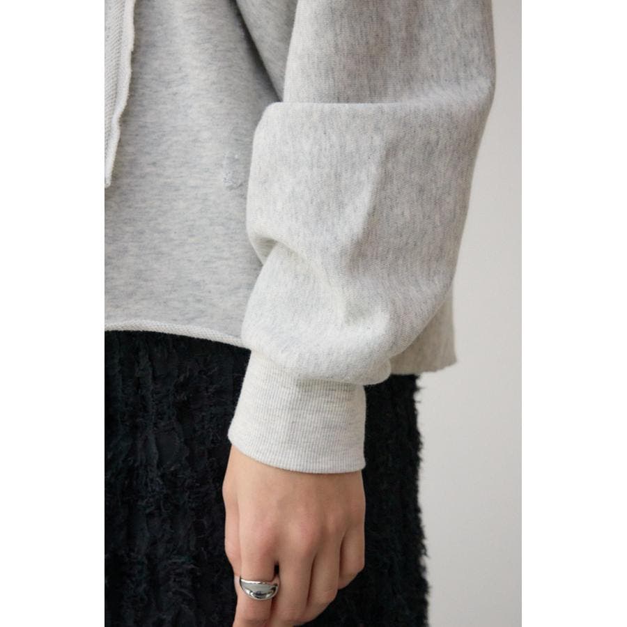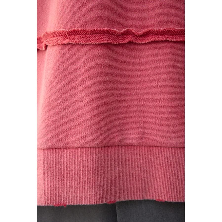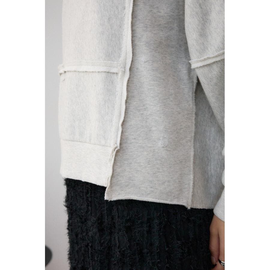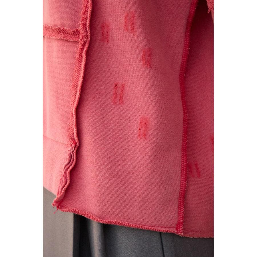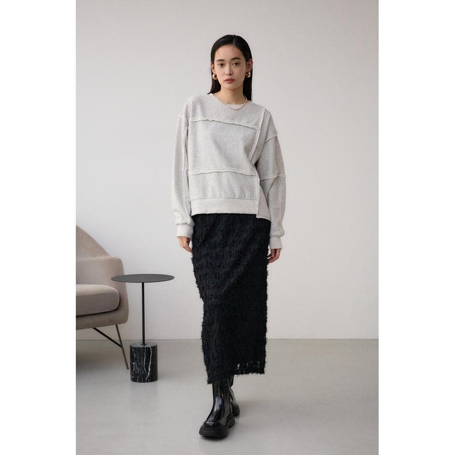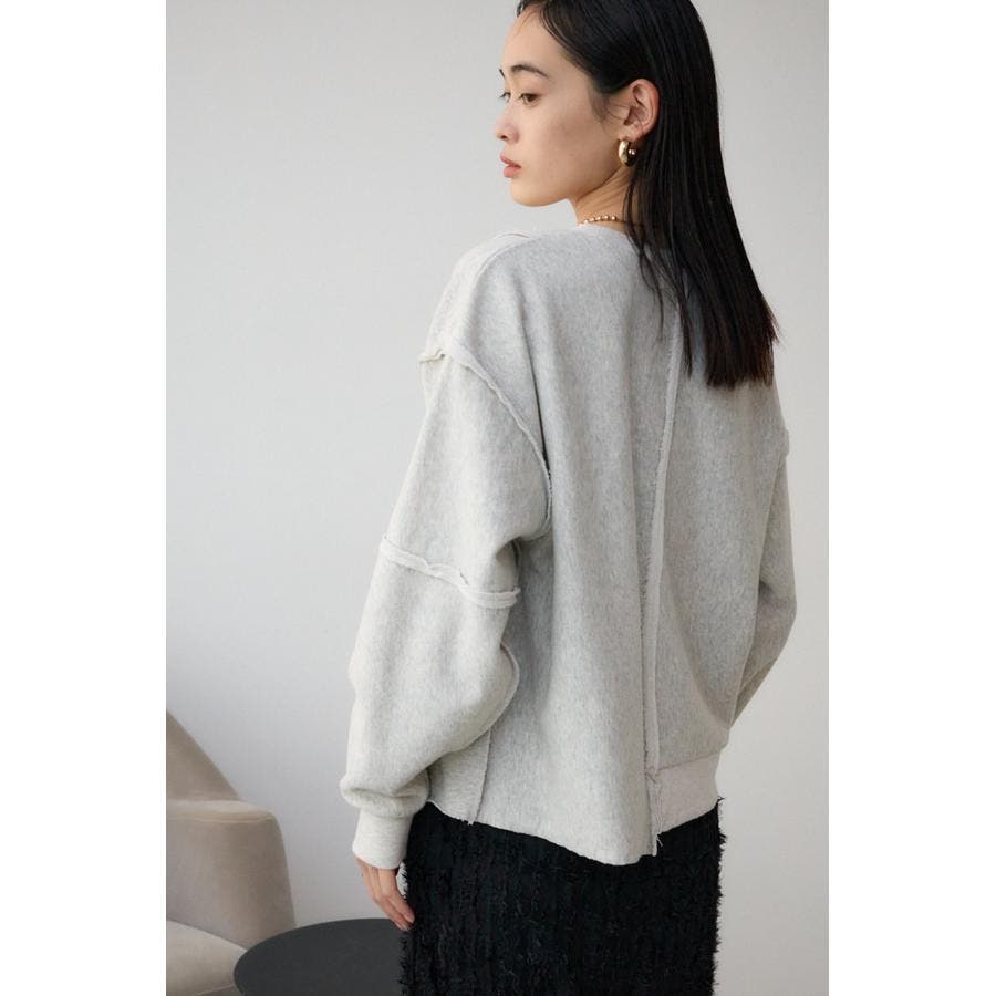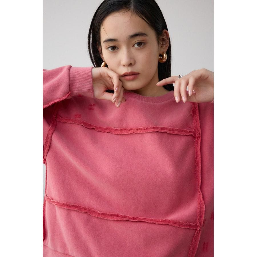 身頃の切替えが表情を出したダメージ加工のスウェットトップスです。