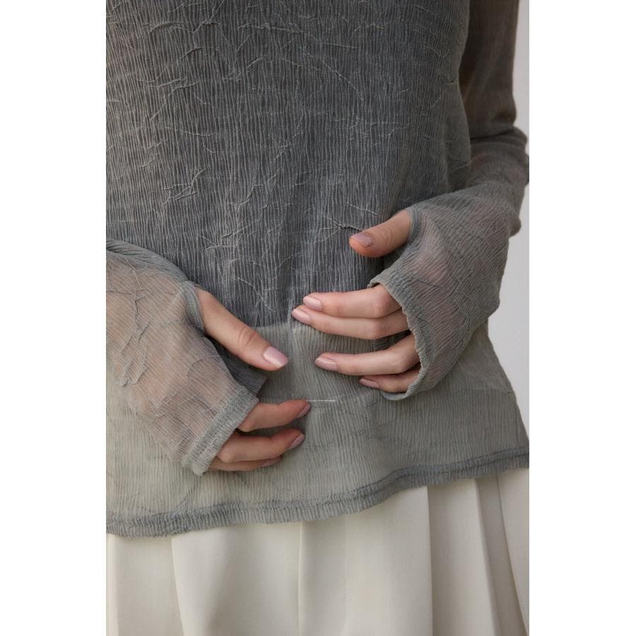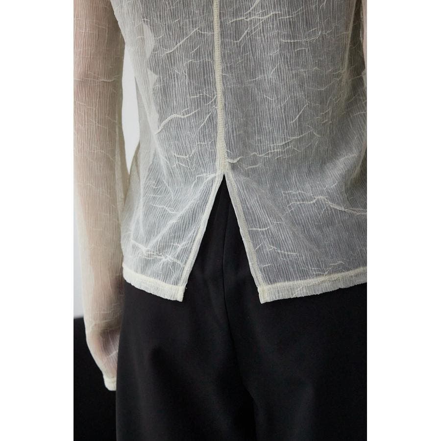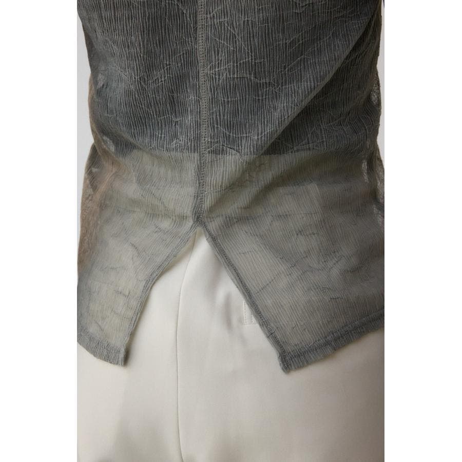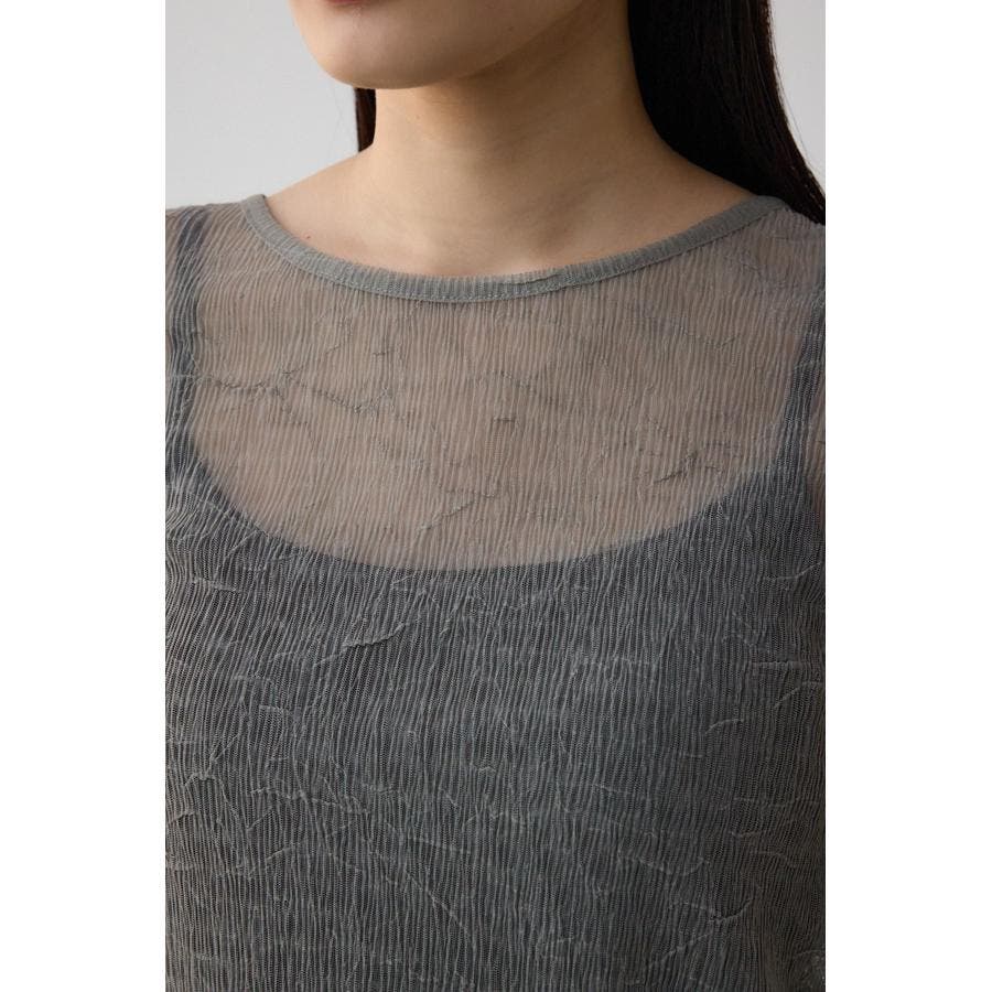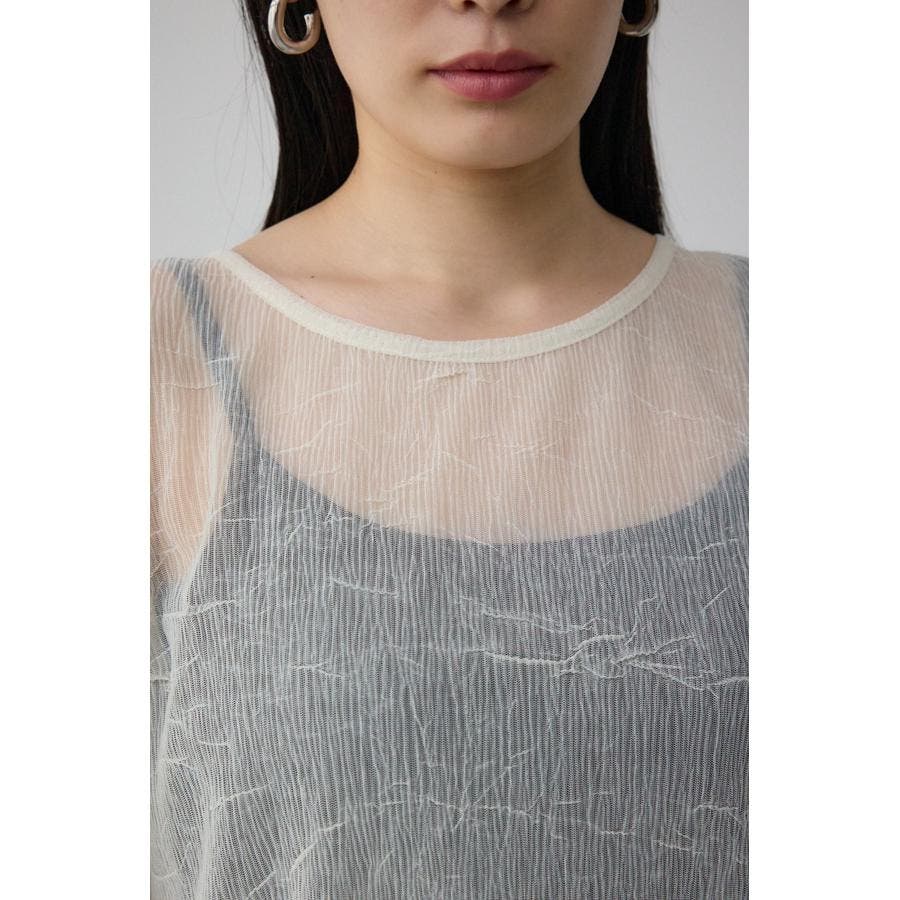 表面感のあるプリーツ加工のチュールトップス。