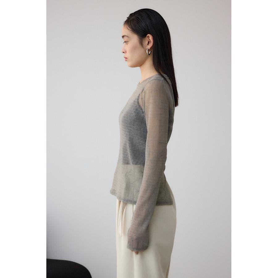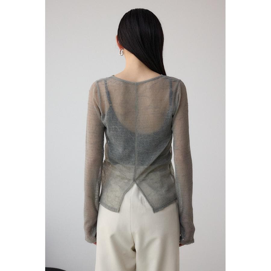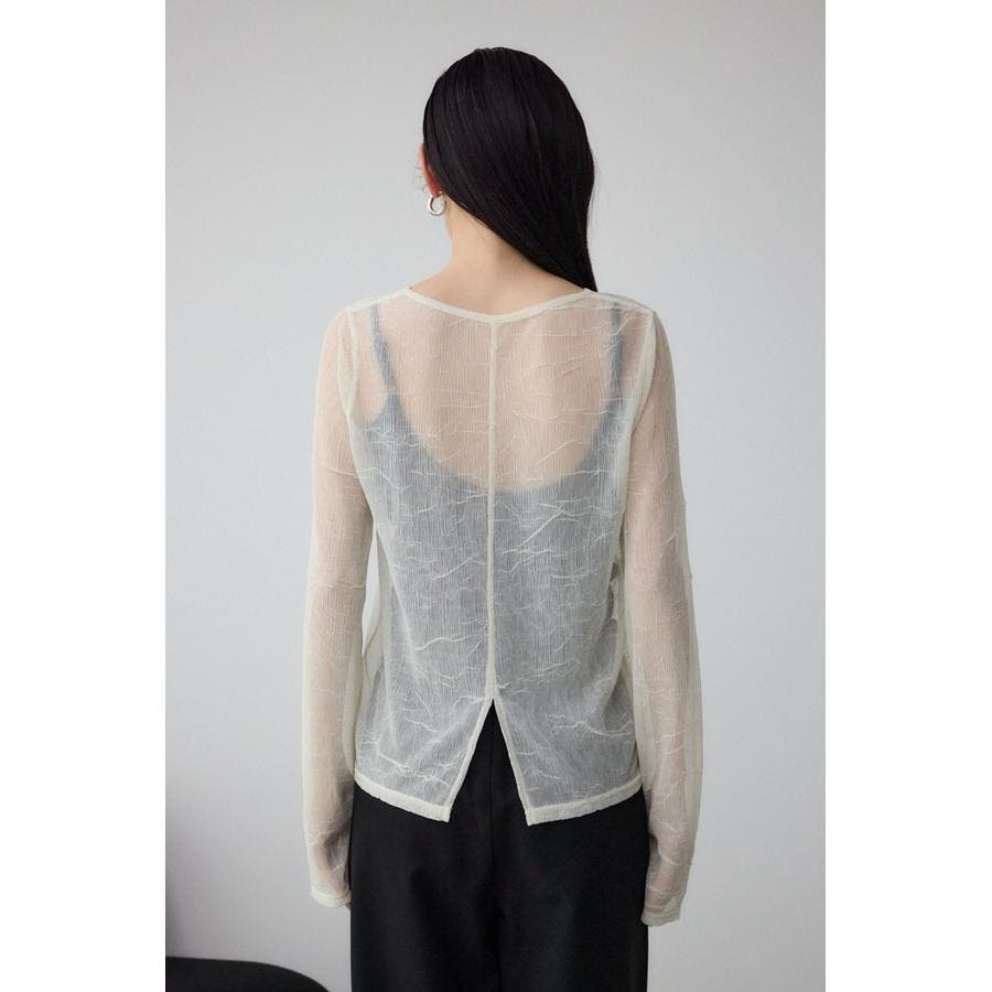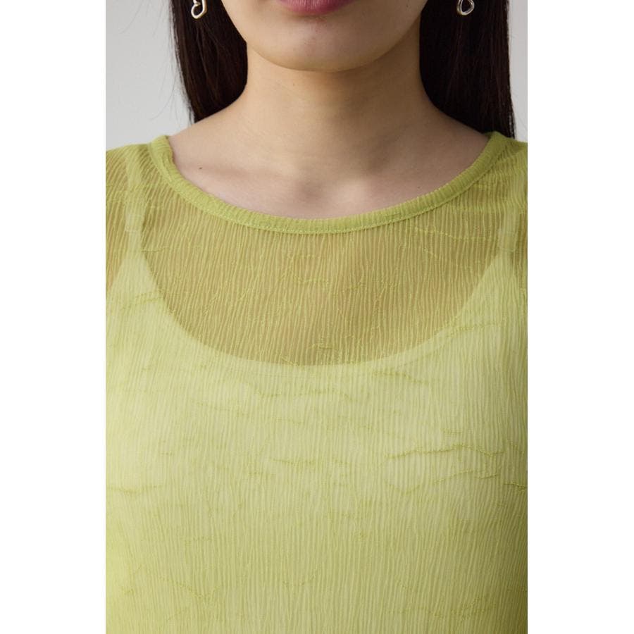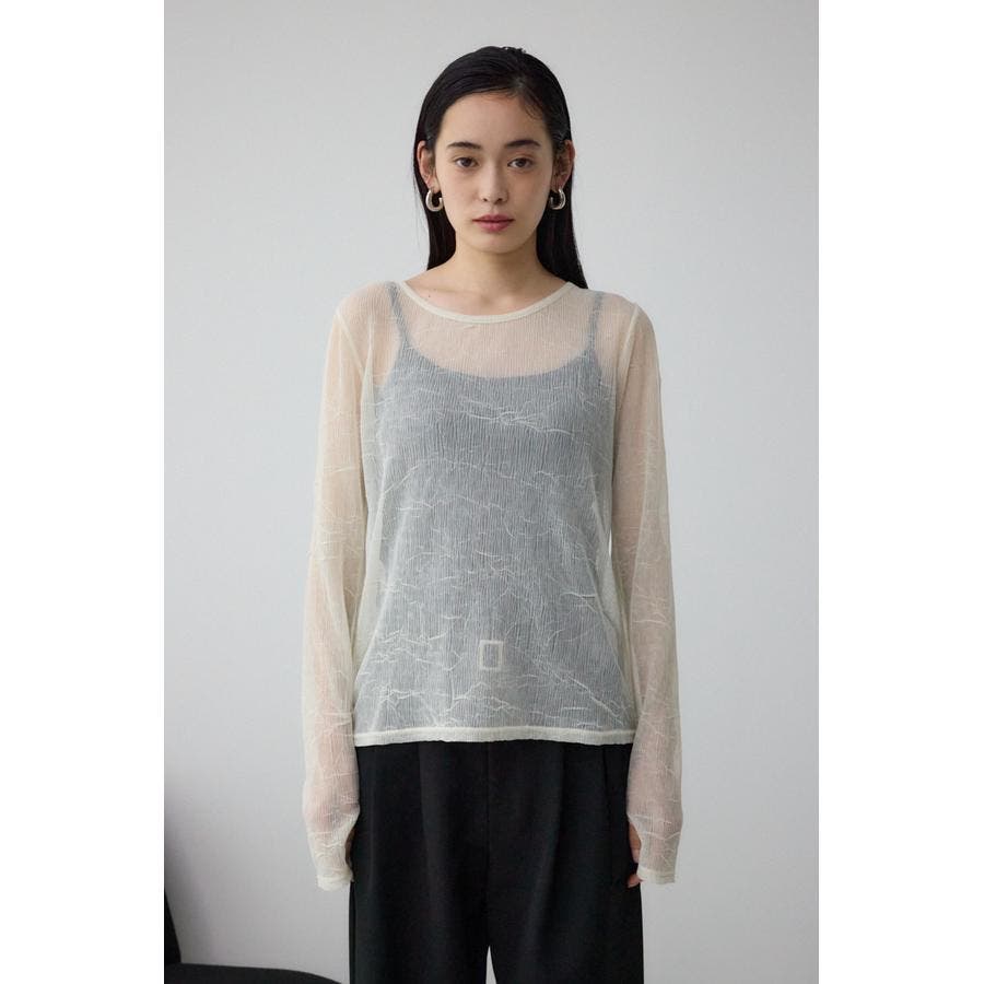 表面感のあるプリーツ加工のチュールトップス。