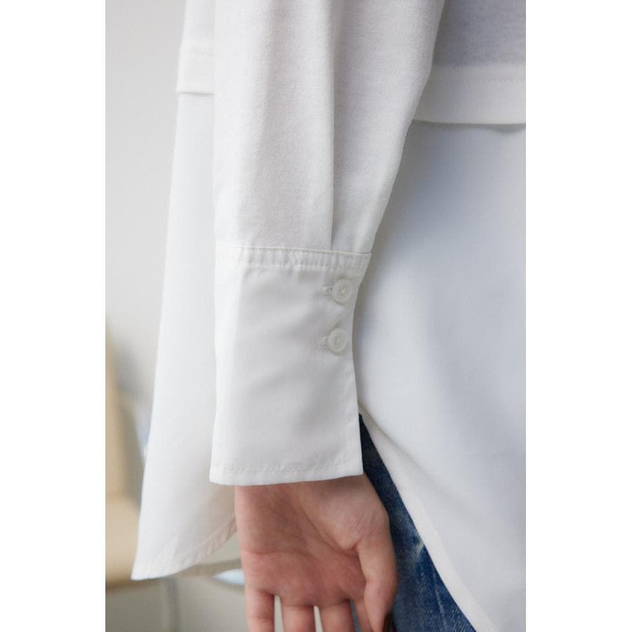 | 素材 | 【M/BLK】【M/WHT】(カットソー部分)ポリエステル63コットン37(布帛部分)ポリエステル100【BLK】【O/WHT】ポリエステル63コットン37 |