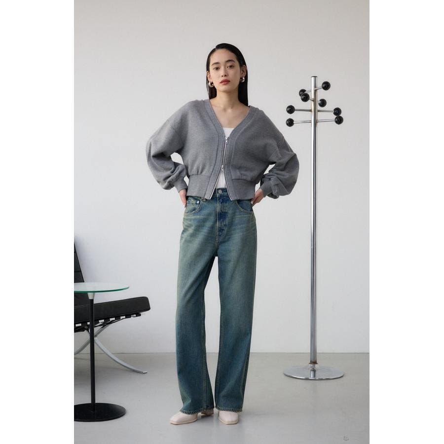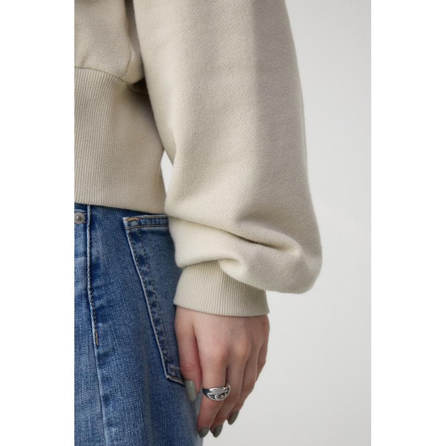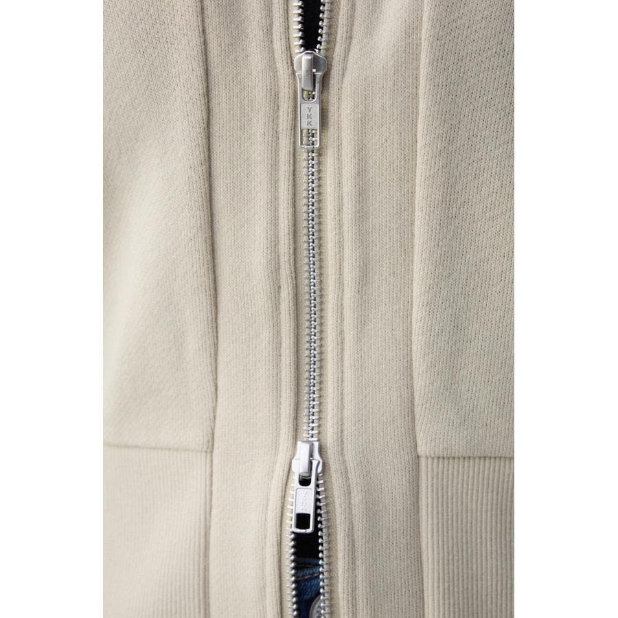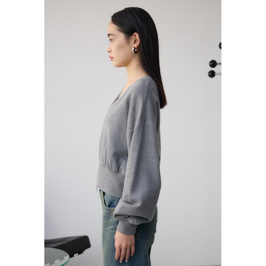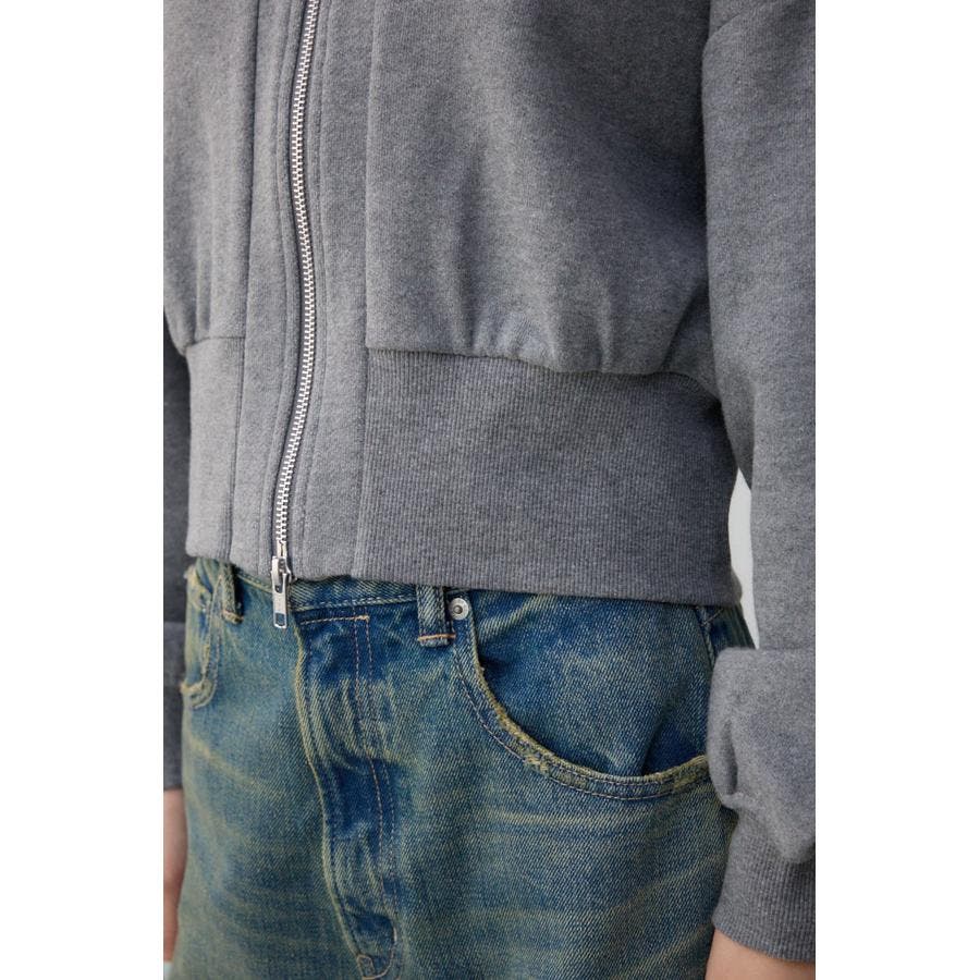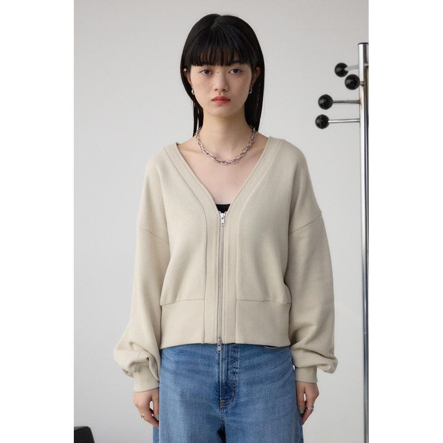 前開きでZIP使いのショート丈裏毛カーディガン。