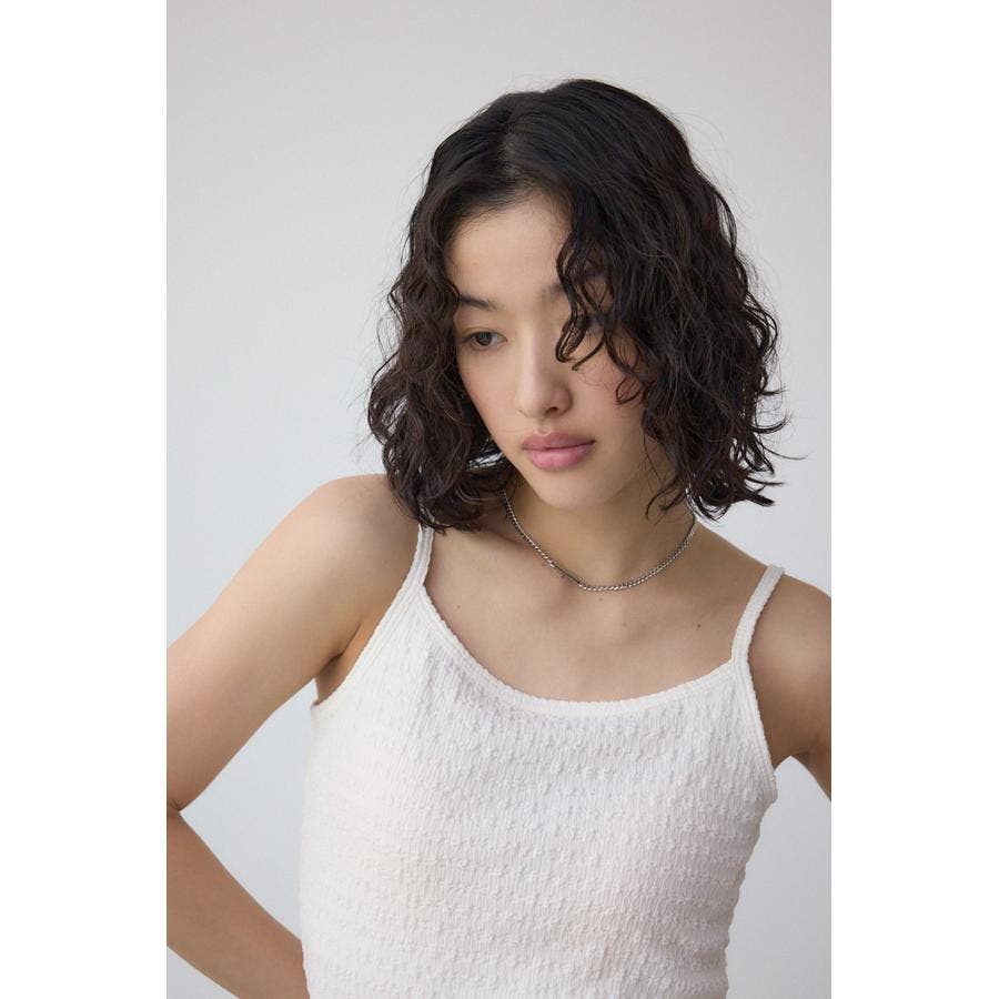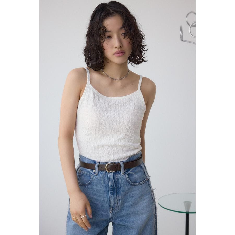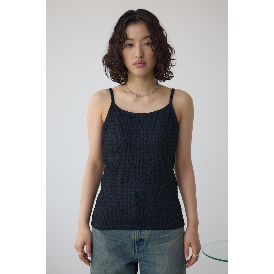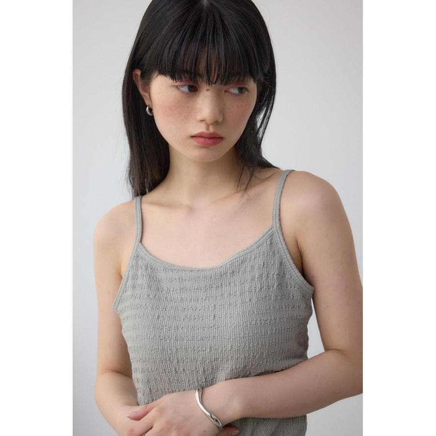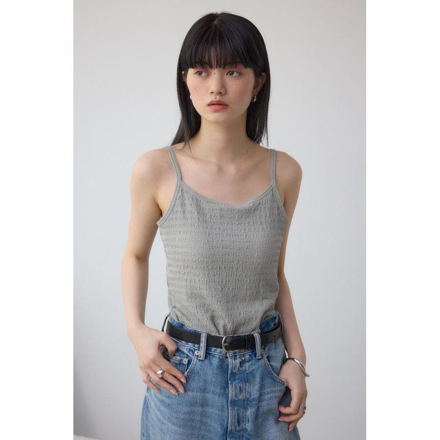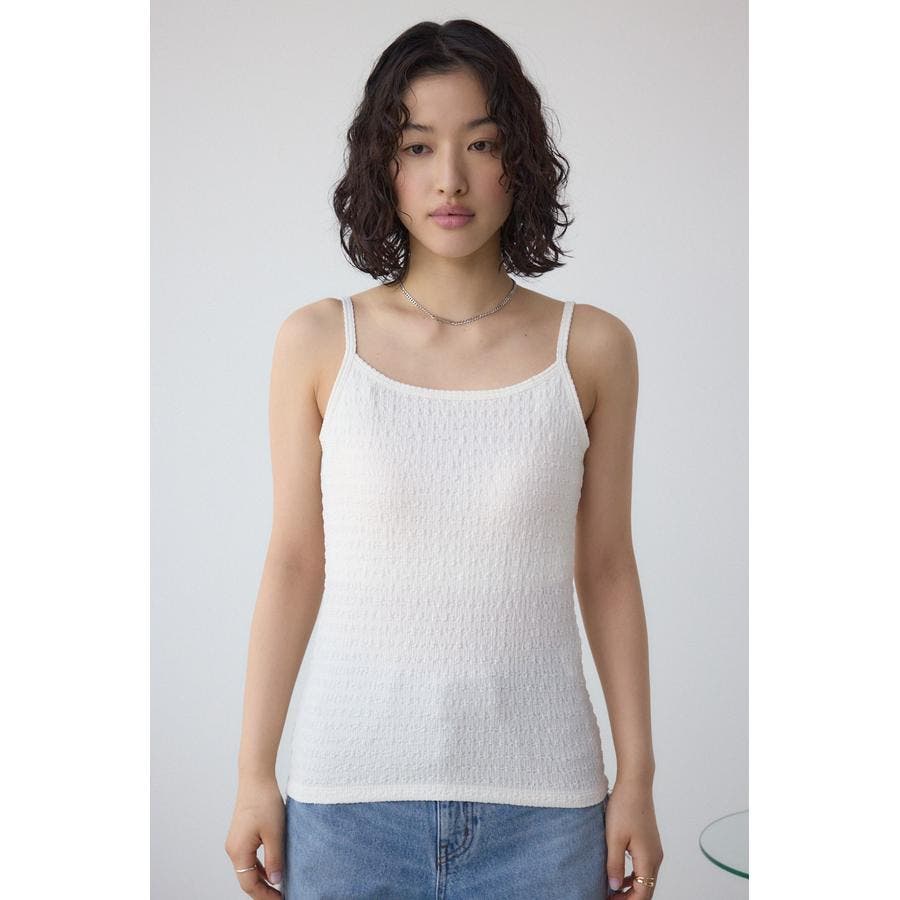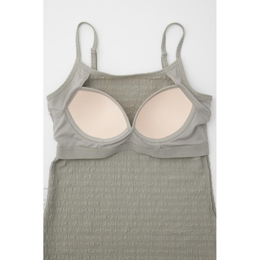 シャーリングのような表面感が特徴のカップ付きキャミソールです。
