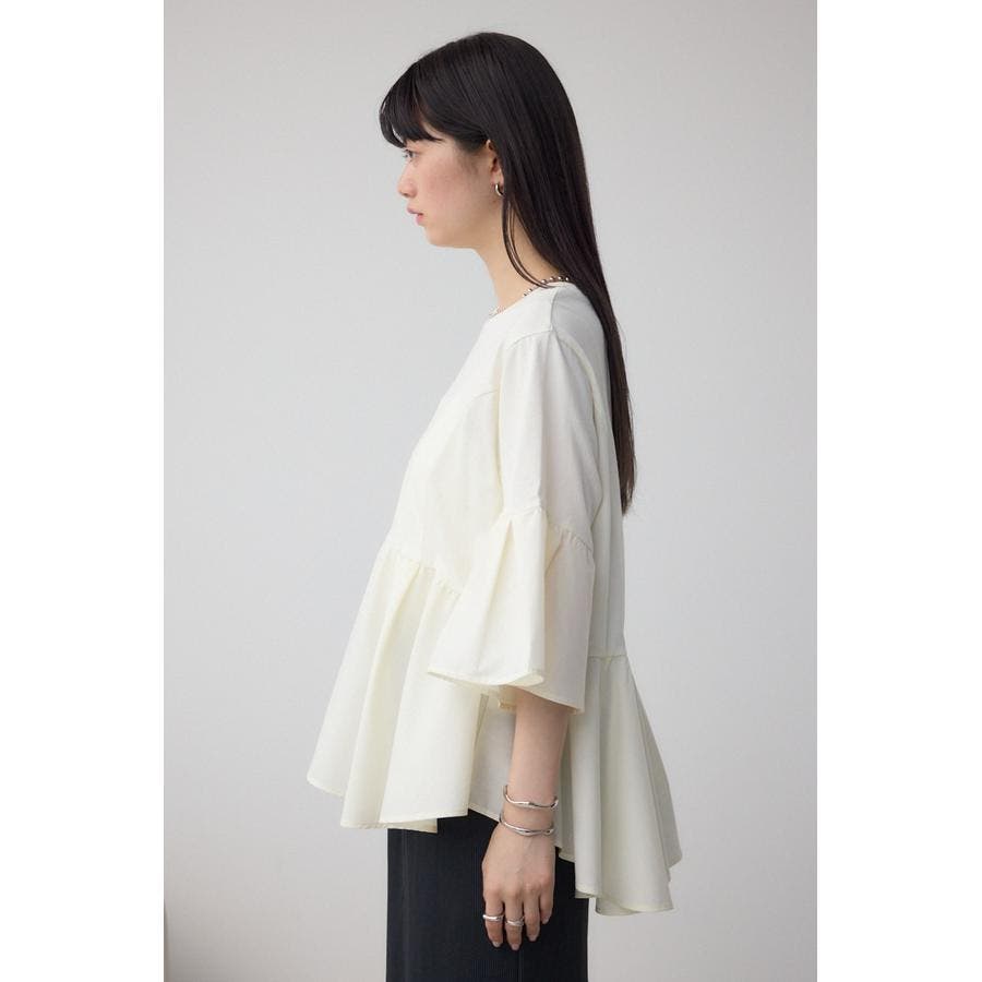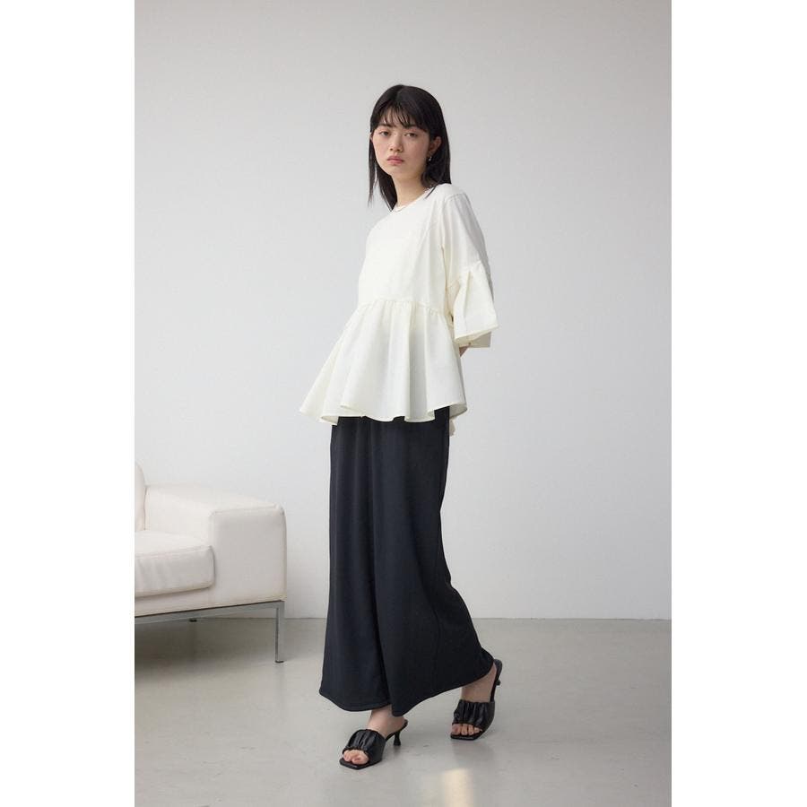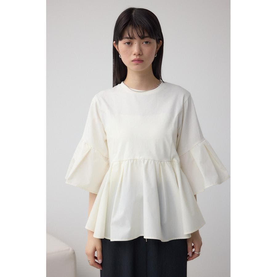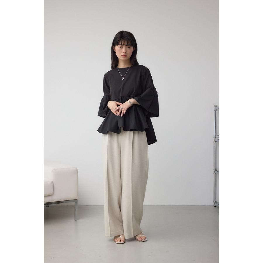 フレアスリーブとペプラムデザインが1枚着るだけで様になるトップスです。