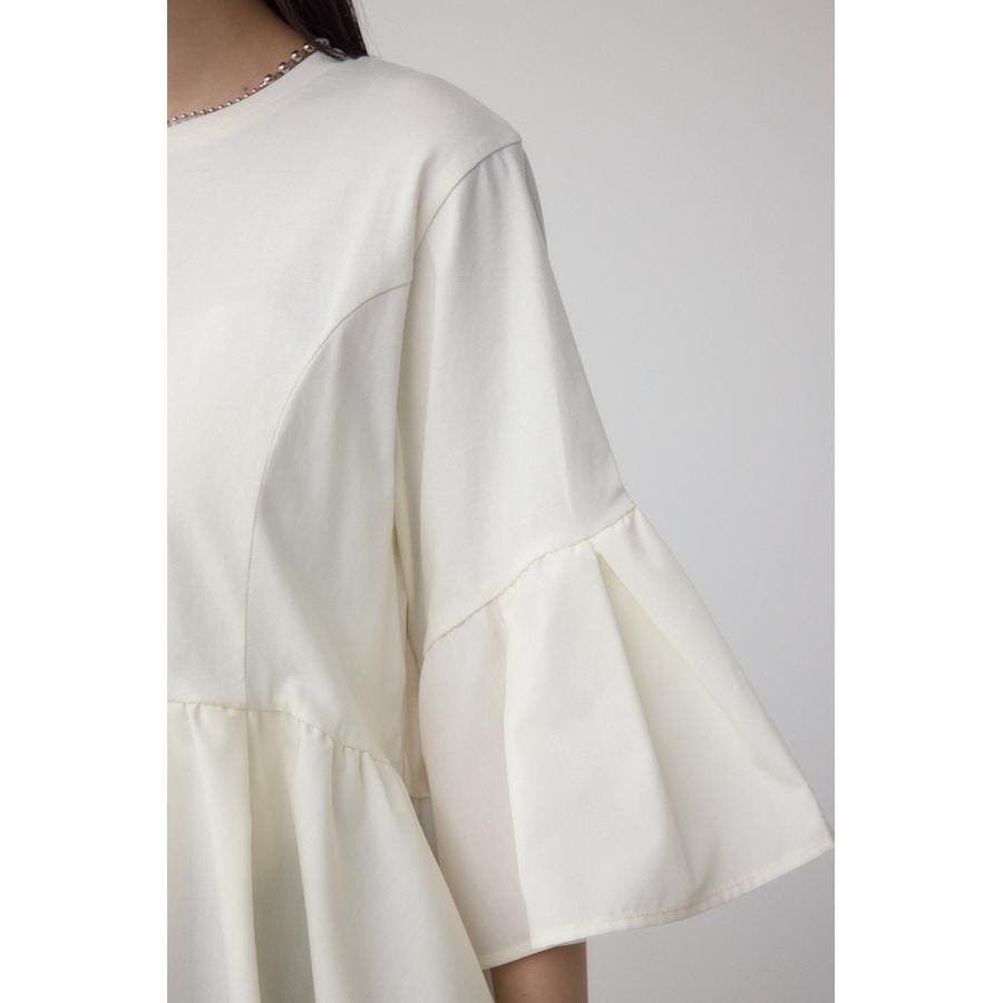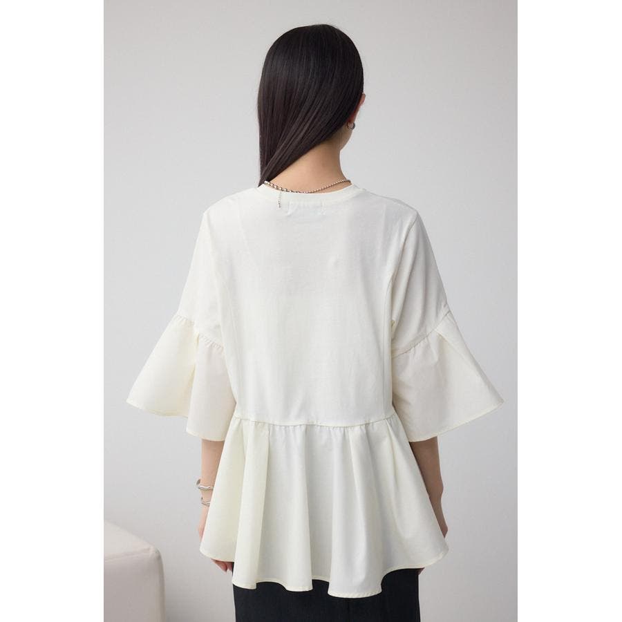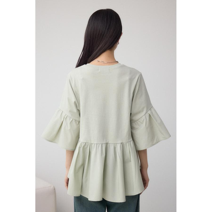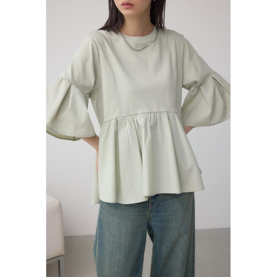 フレアスリーブとペプラムデザインが1枚着るだけで様になるトップスです。