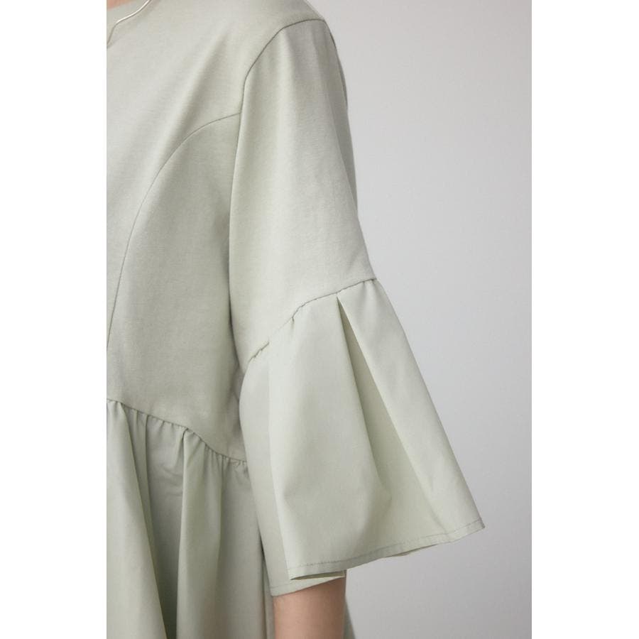 キレイめな風合いの天竺と、張りが強くなく軽やかな布帛のドッキングです。