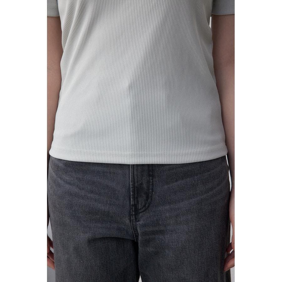 凹凸はありながらもつるっとして微光沢があるキレイ目な風合いが特徴の細ピッチのリブ素材です。