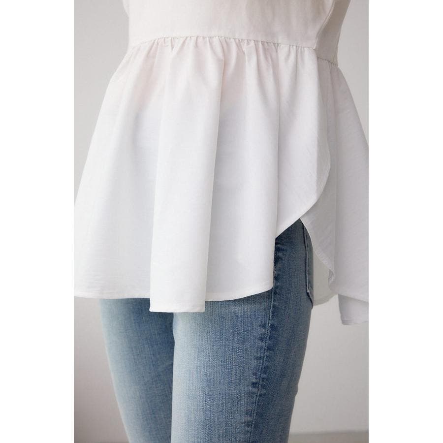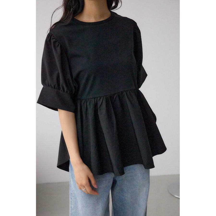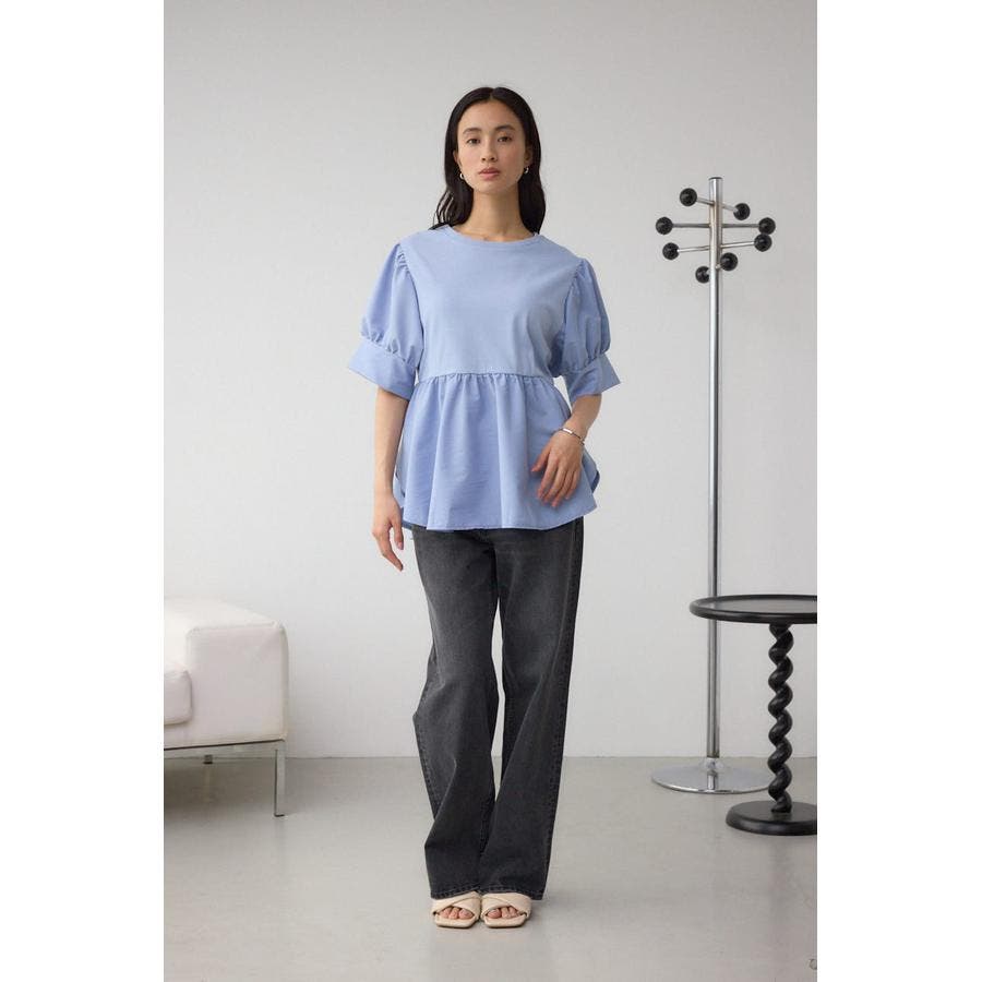 ペプラムデザインが軽やかな動きを演出し、ふんわりとしたボリューム袖はカフスでさりげなく個性をプラス。