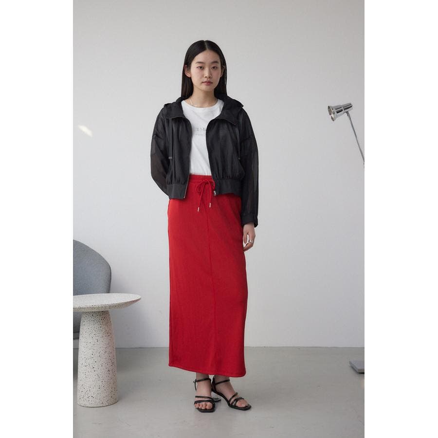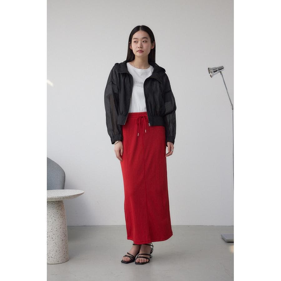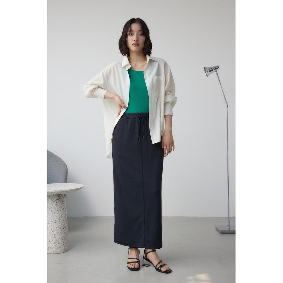 リブカットソー素材を使用したナロースカート。