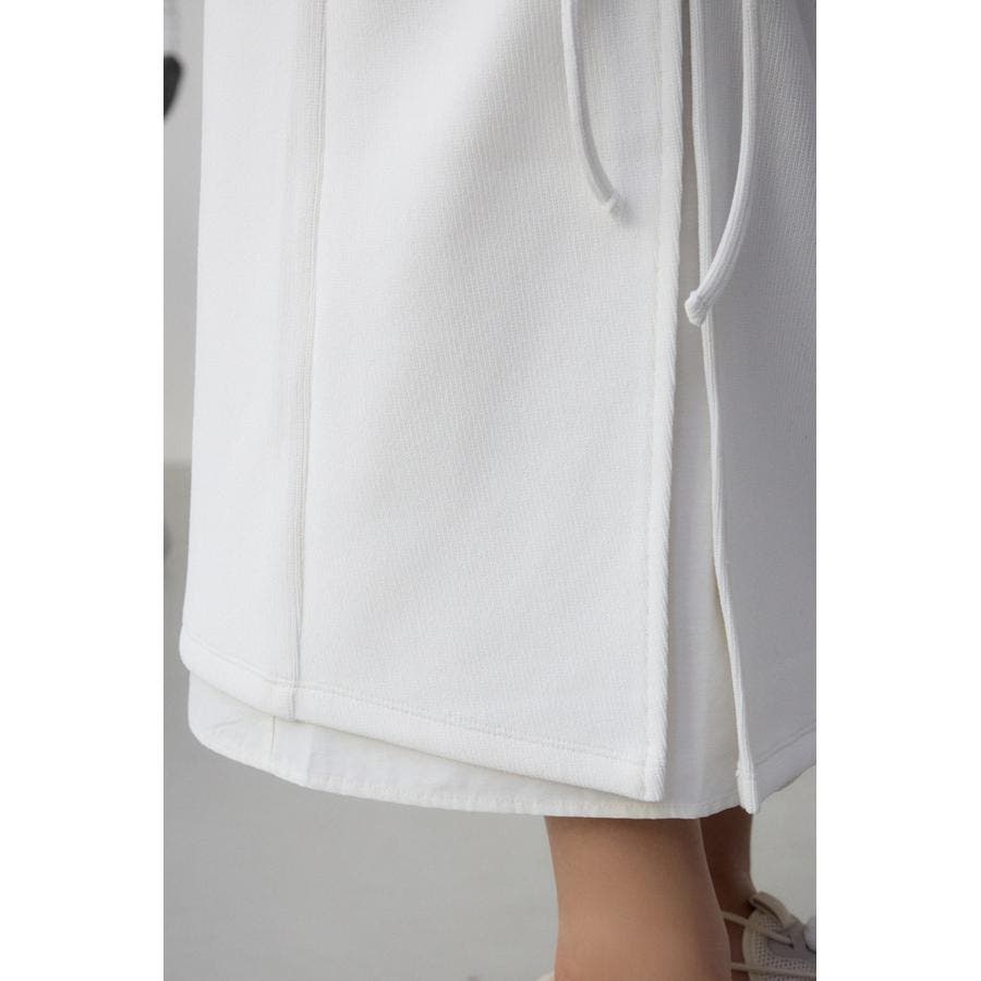 ニットライクな素材に張りのあるキレイ目な布帛素材を合わせたことで、カジュアルさの中に女性らしさも。