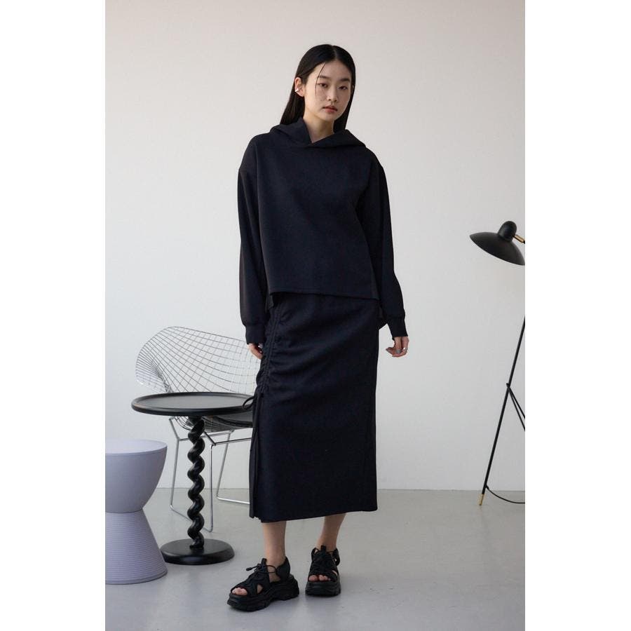 ローゲージのニットソーと張り感のある布帛のドッキングです。