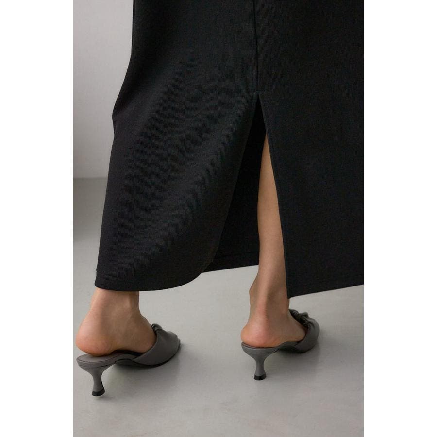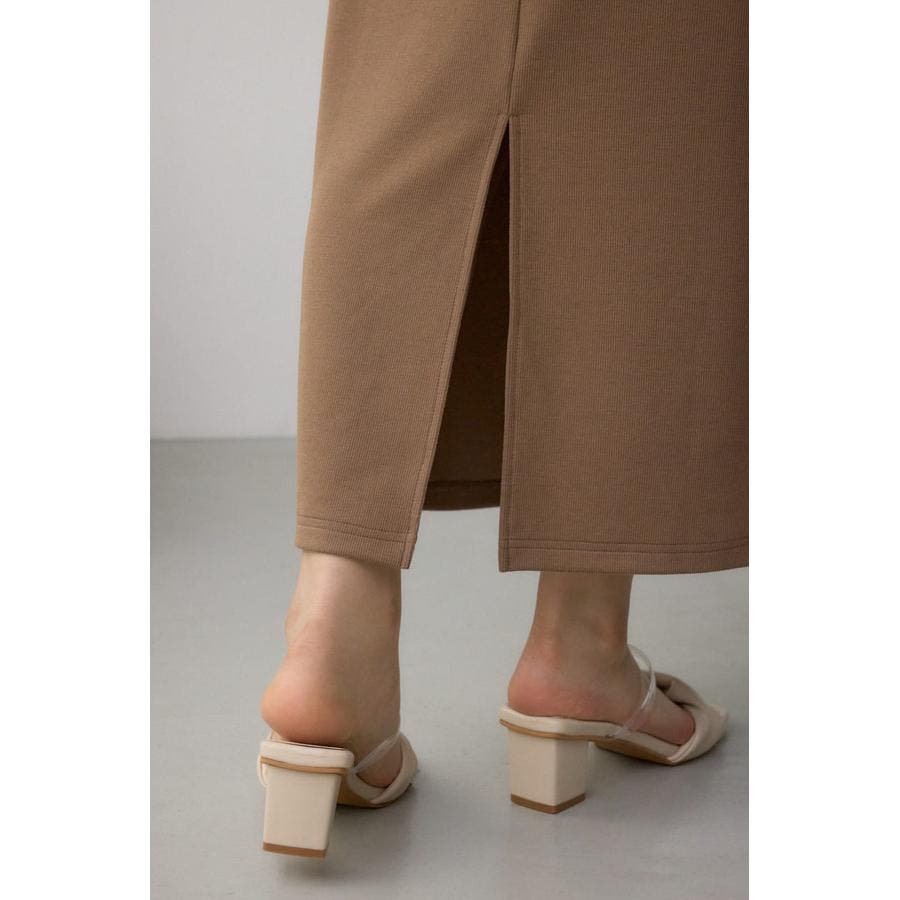 フリンジがアクセントになったジャガード総柄生地のトップスと、柔らかくもちもちした質感の細ピッチリブを使用したワンピースのビスチェレイヤードデザイン。