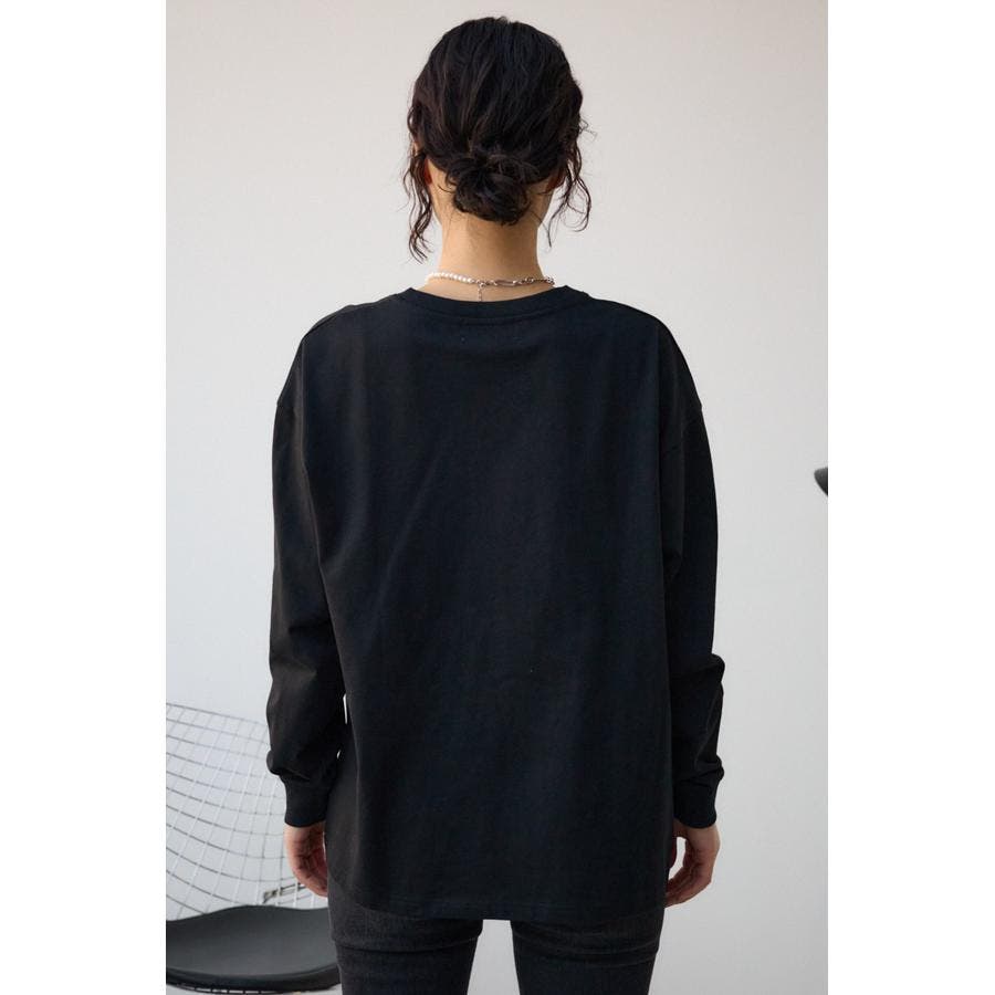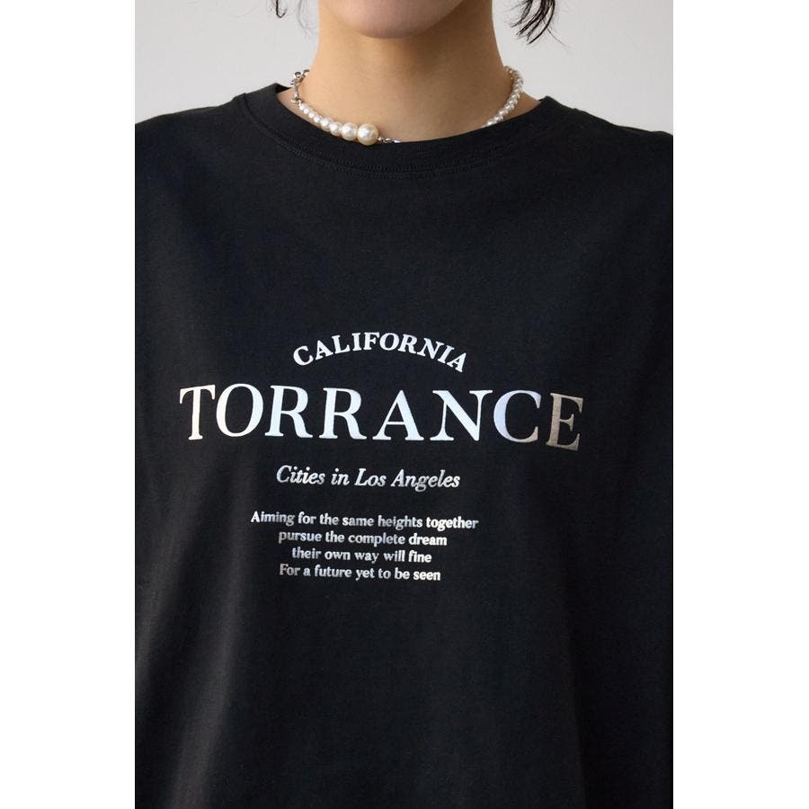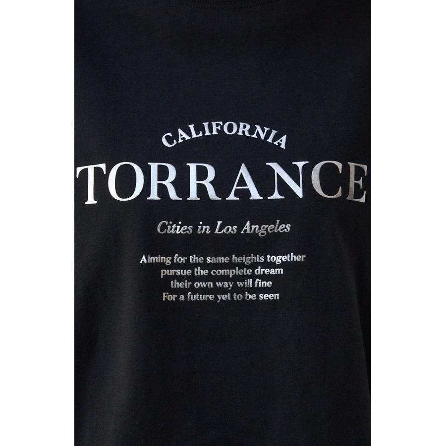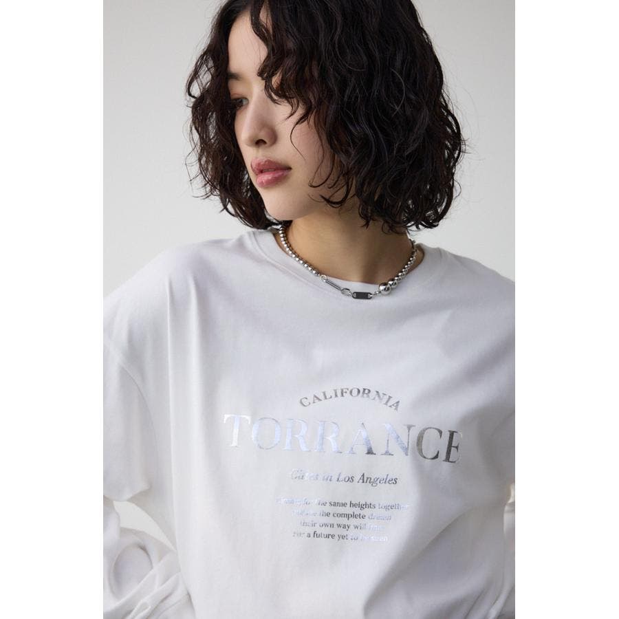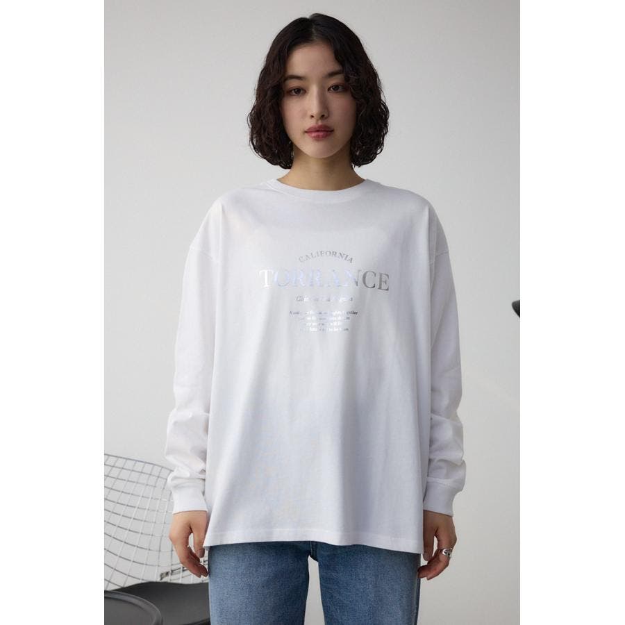 ややゆったりとしたシルエットでリラックス感のある箔プリントのTシャツ。