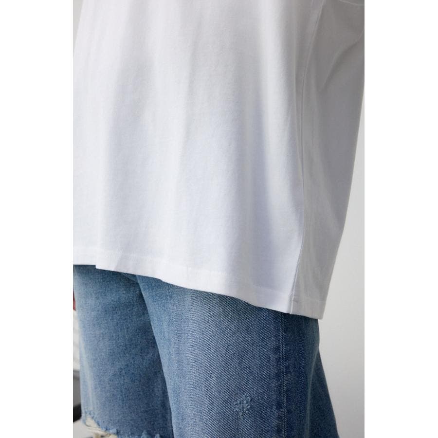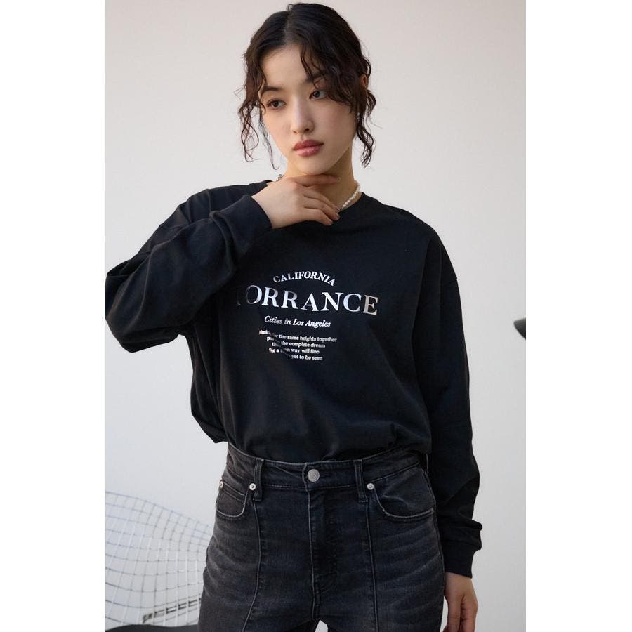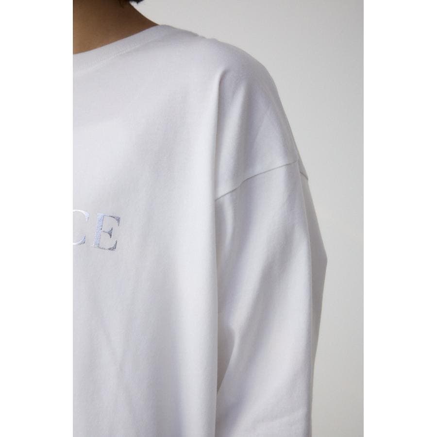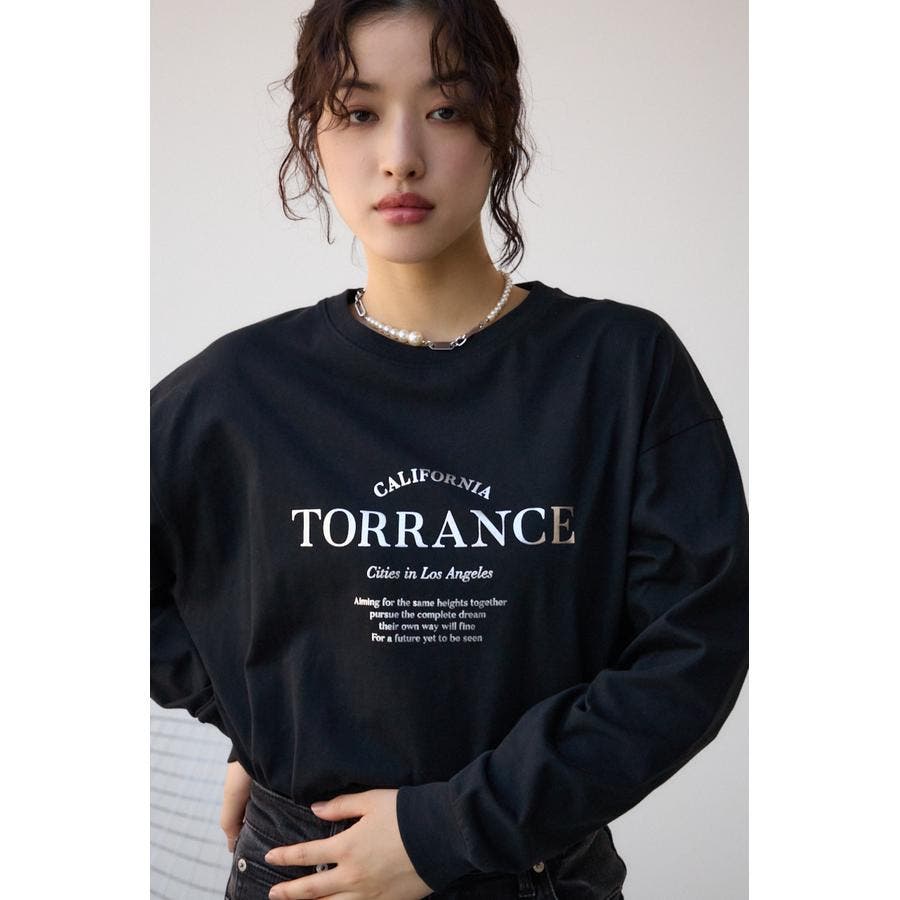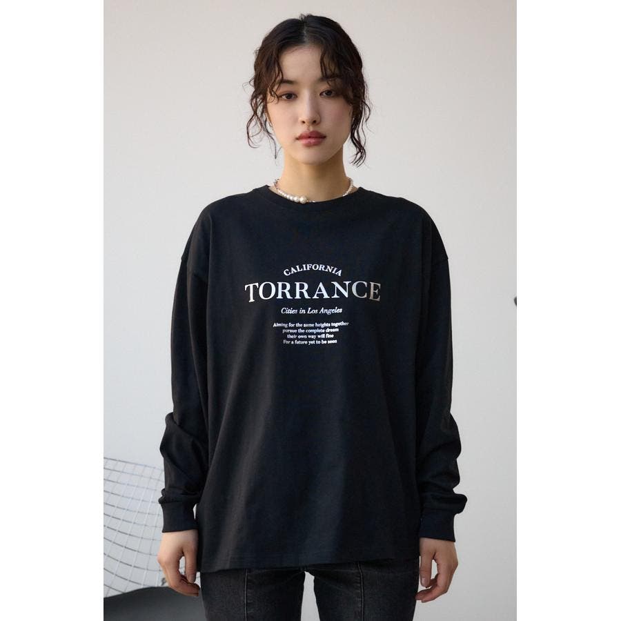 ややゆったりとしたシルエットでリラックス感のある箔プリントのTシャツ。