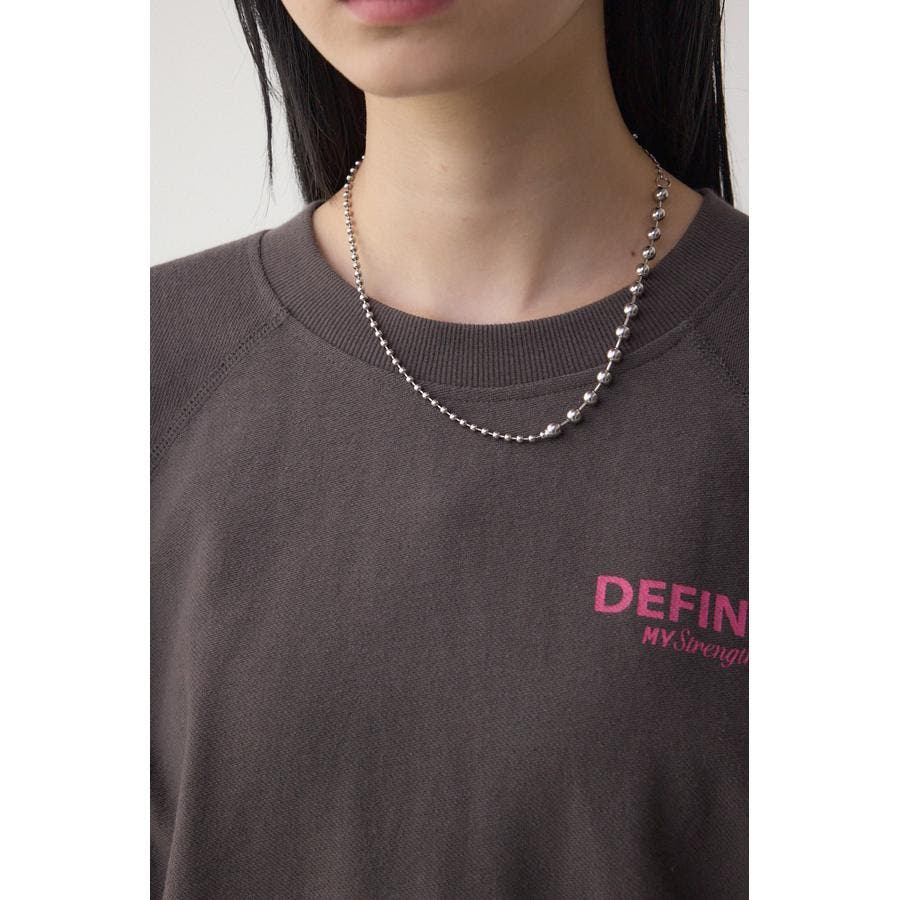配色のロゴが特徴的なミニ裏毛のトップスです。