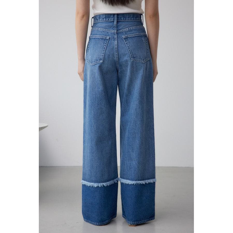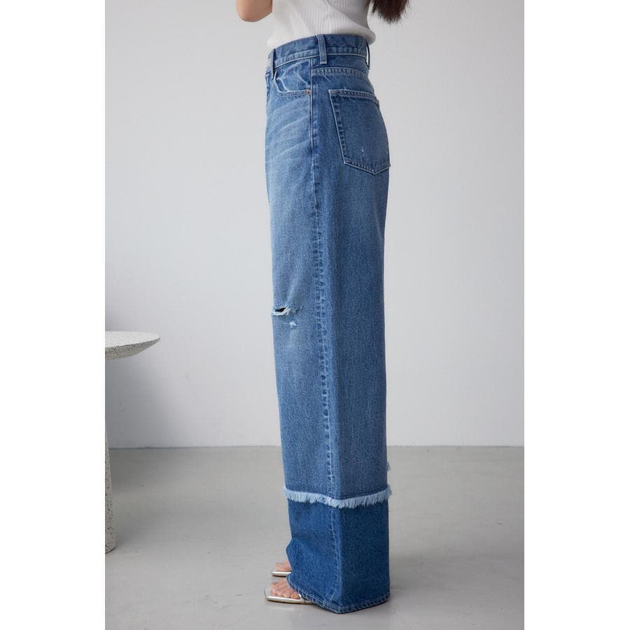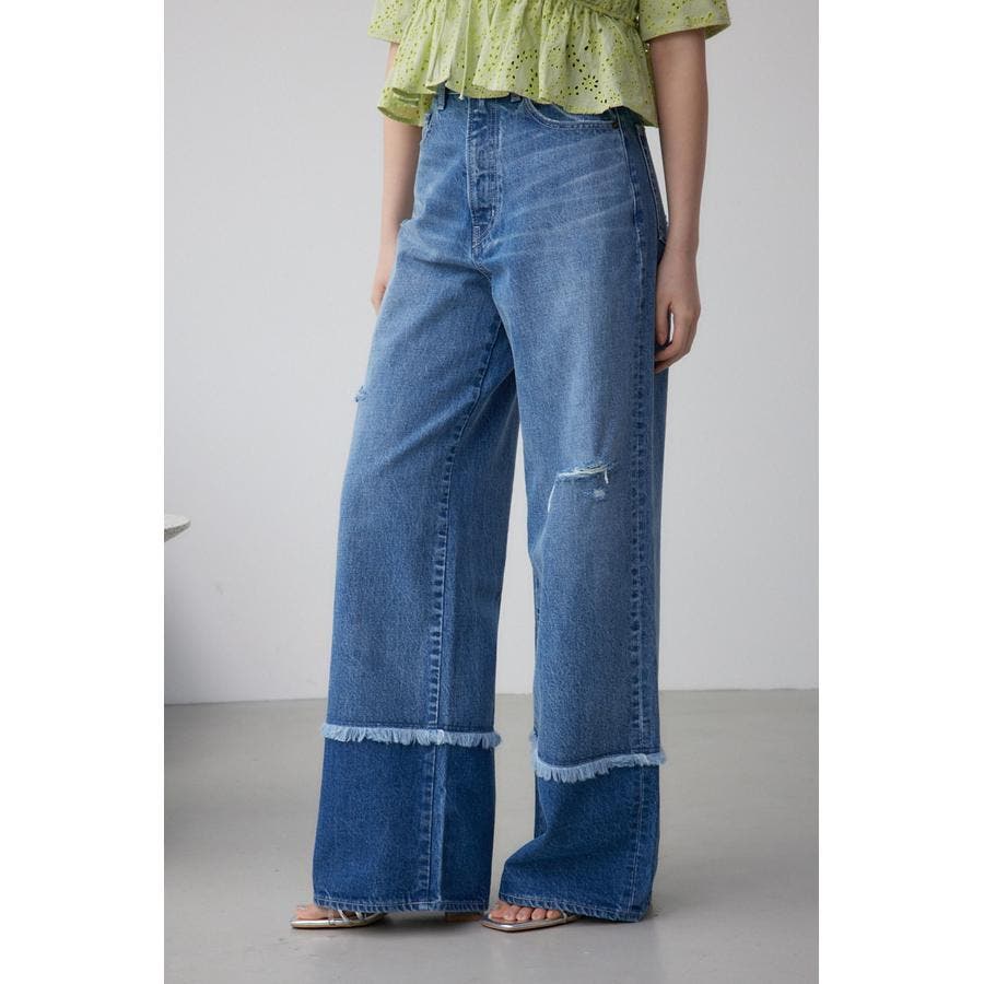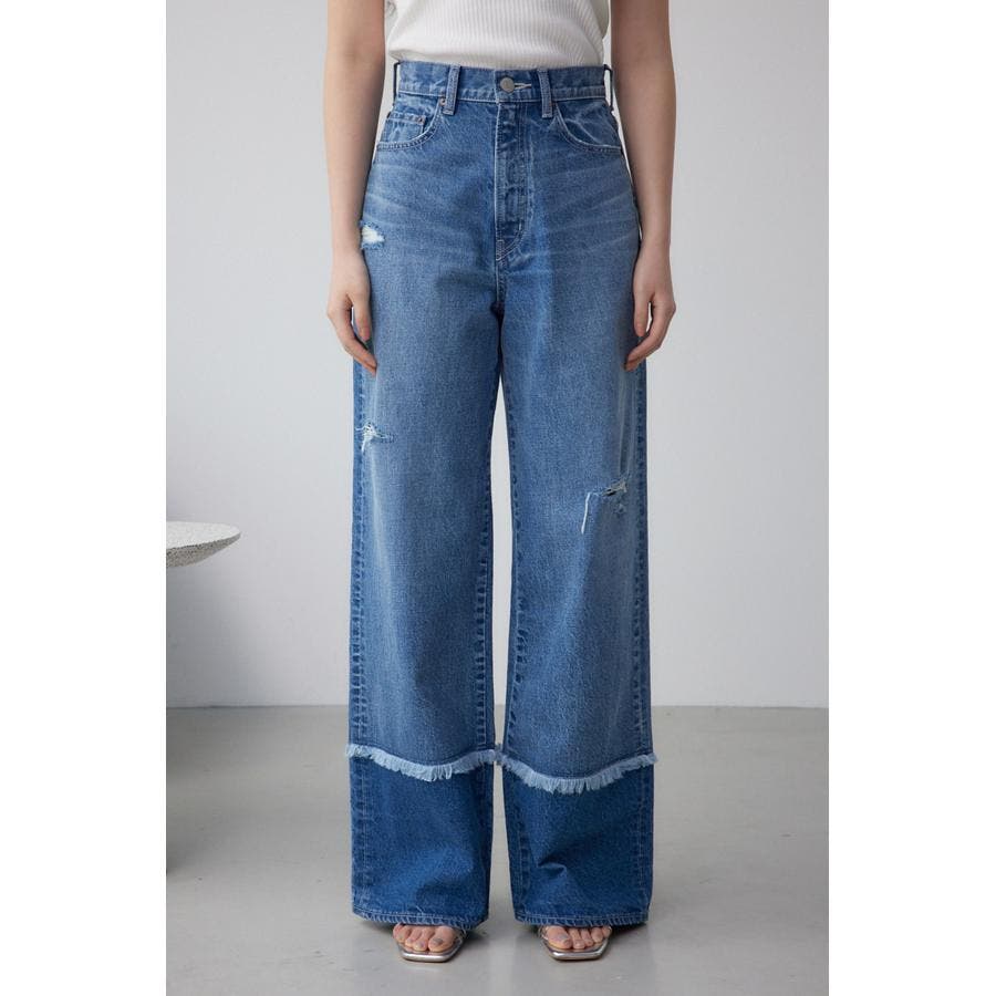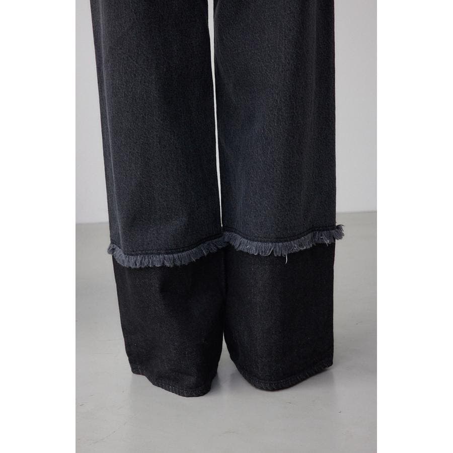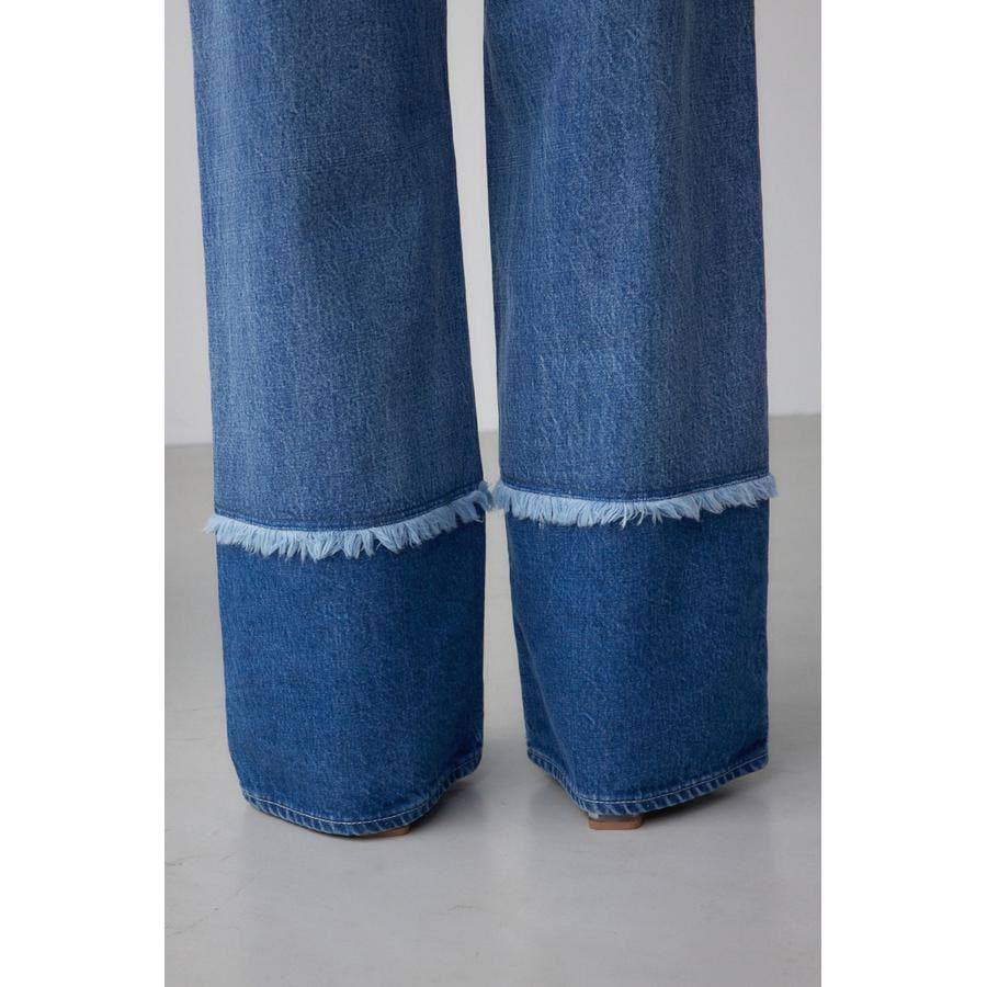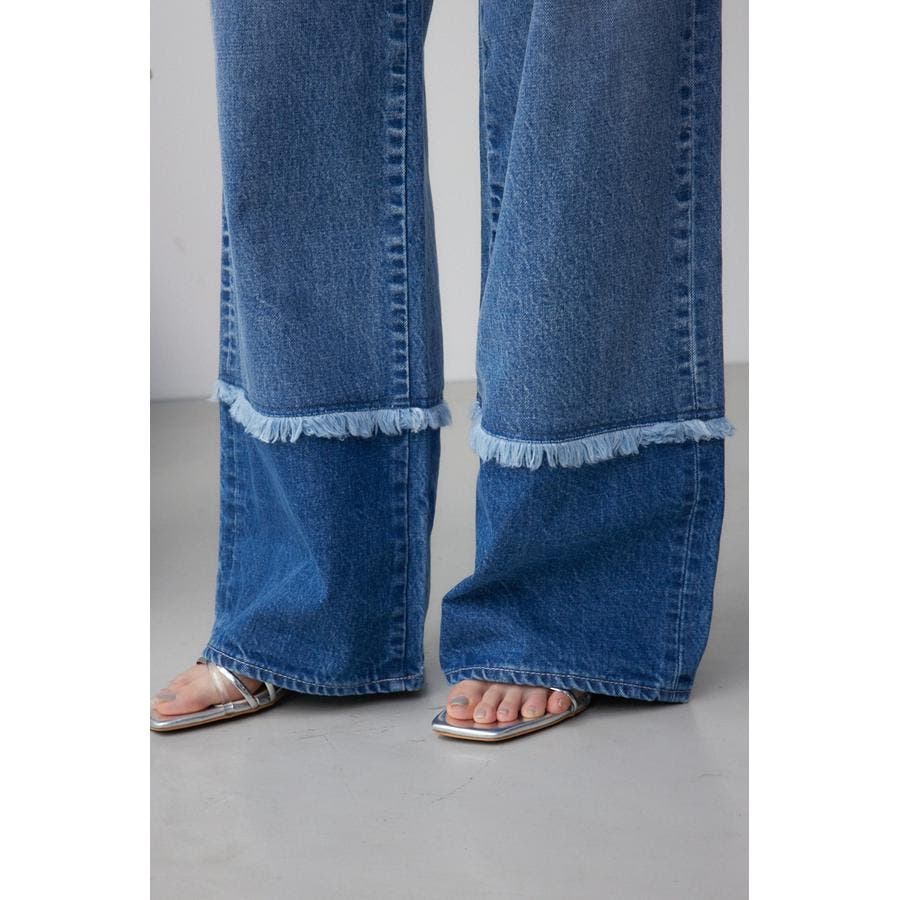 裾の切り替えとフリンジデザインがポイントのワイドシルエットデニムです。