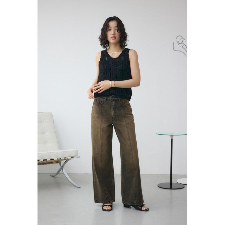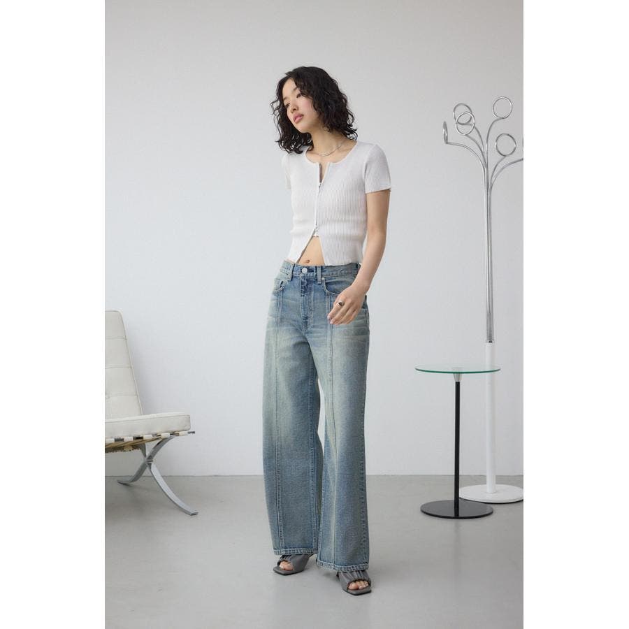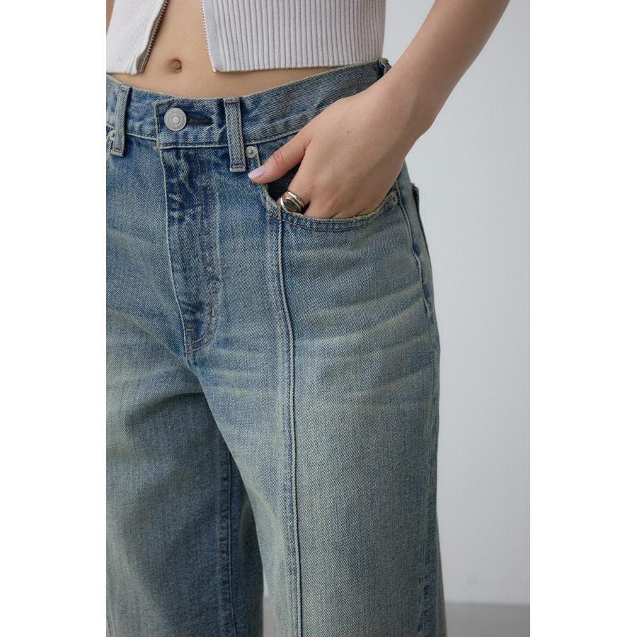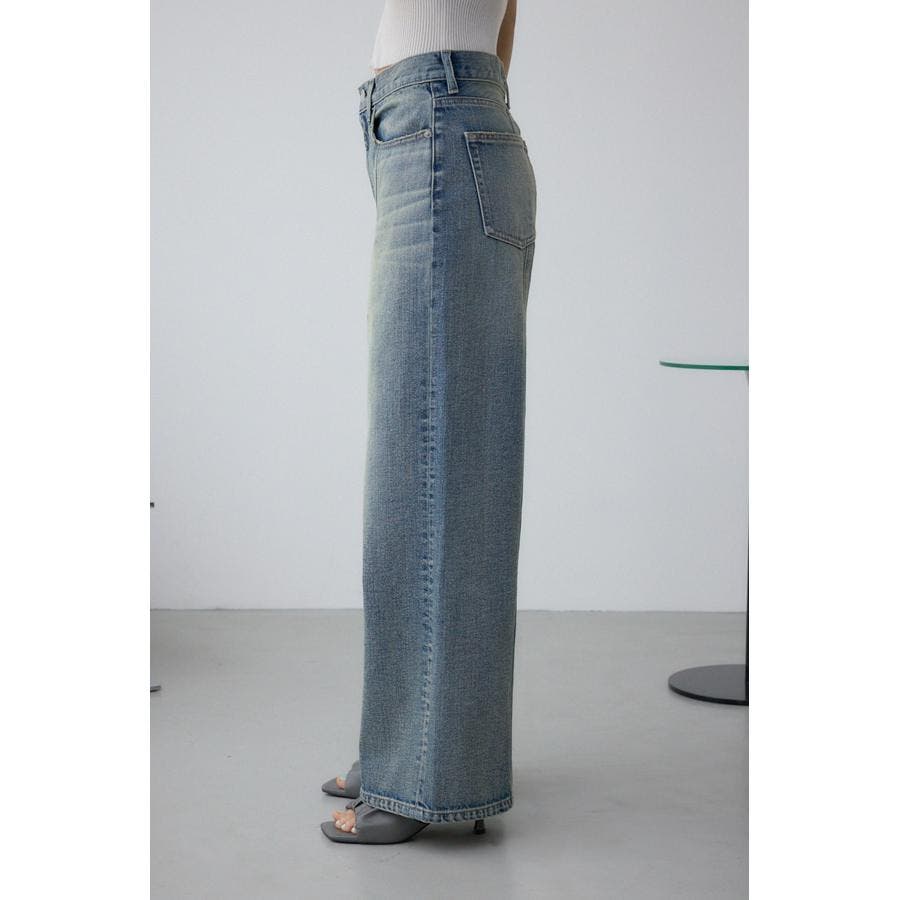 ヴィンテージ加工を施したジャストウエストで着用して頂くワイドデニムです。