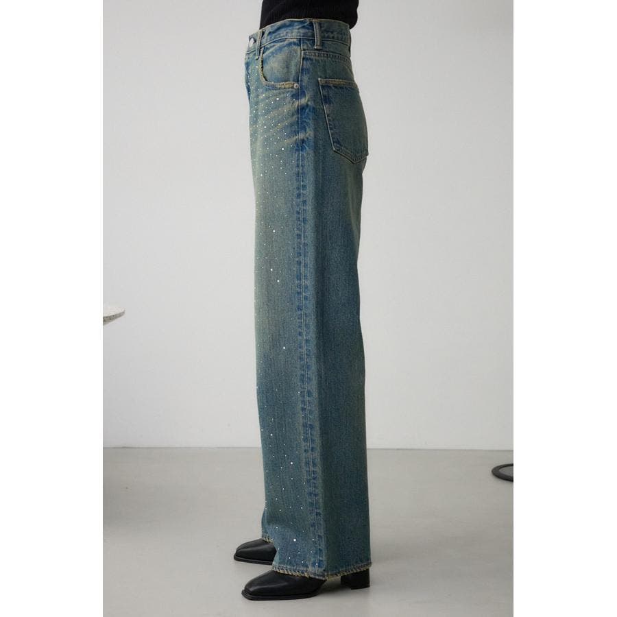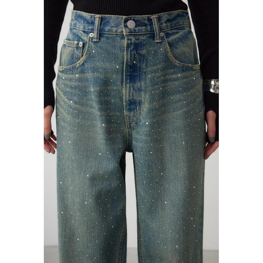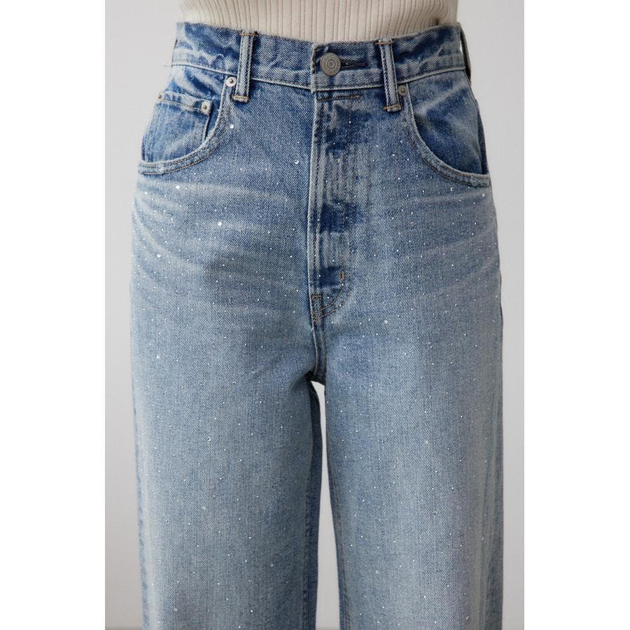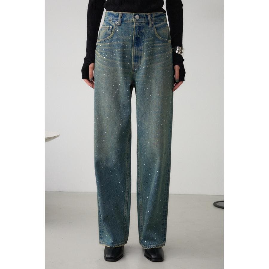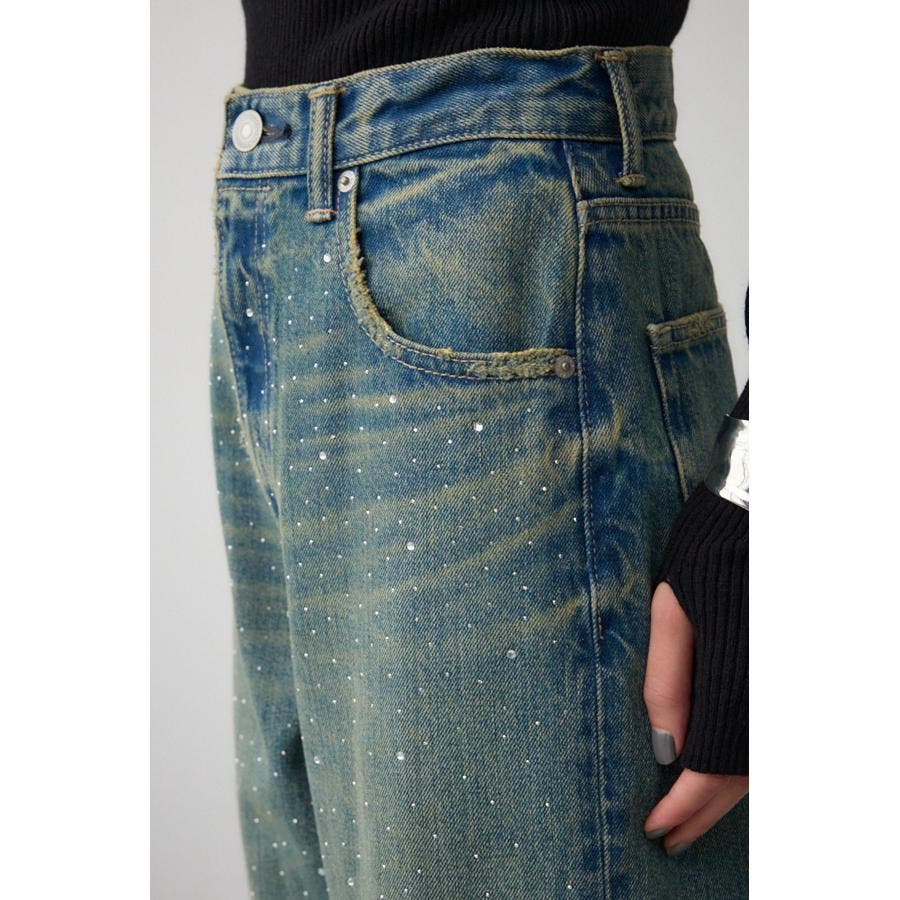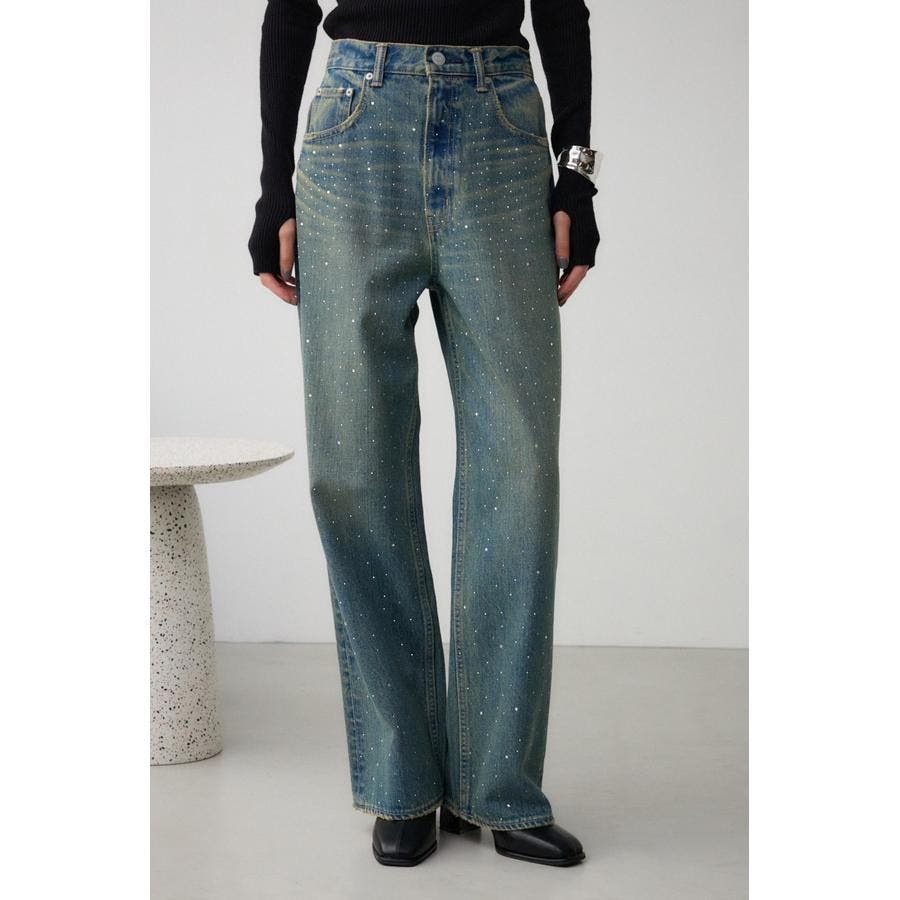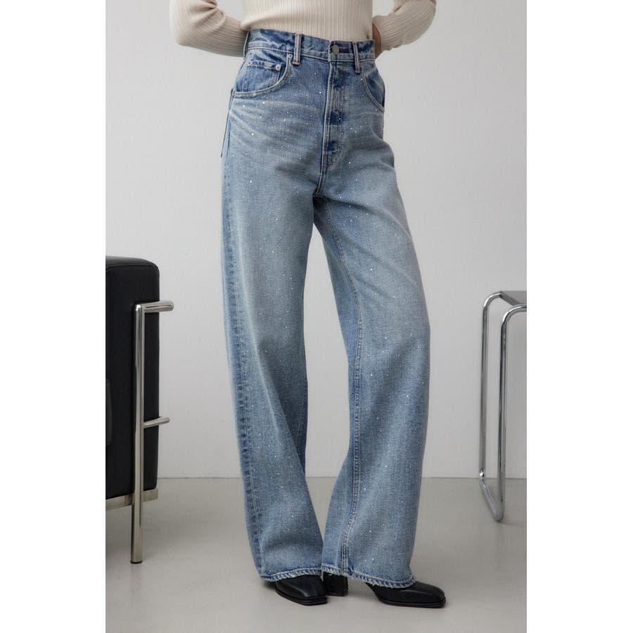 ラインストーンが動くたびにキラキラと輝く今年らしいデニムパンツです。