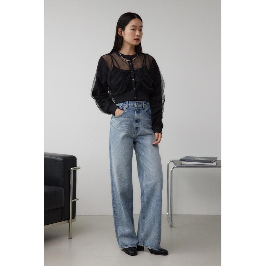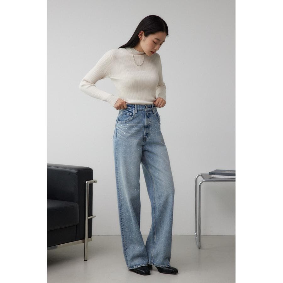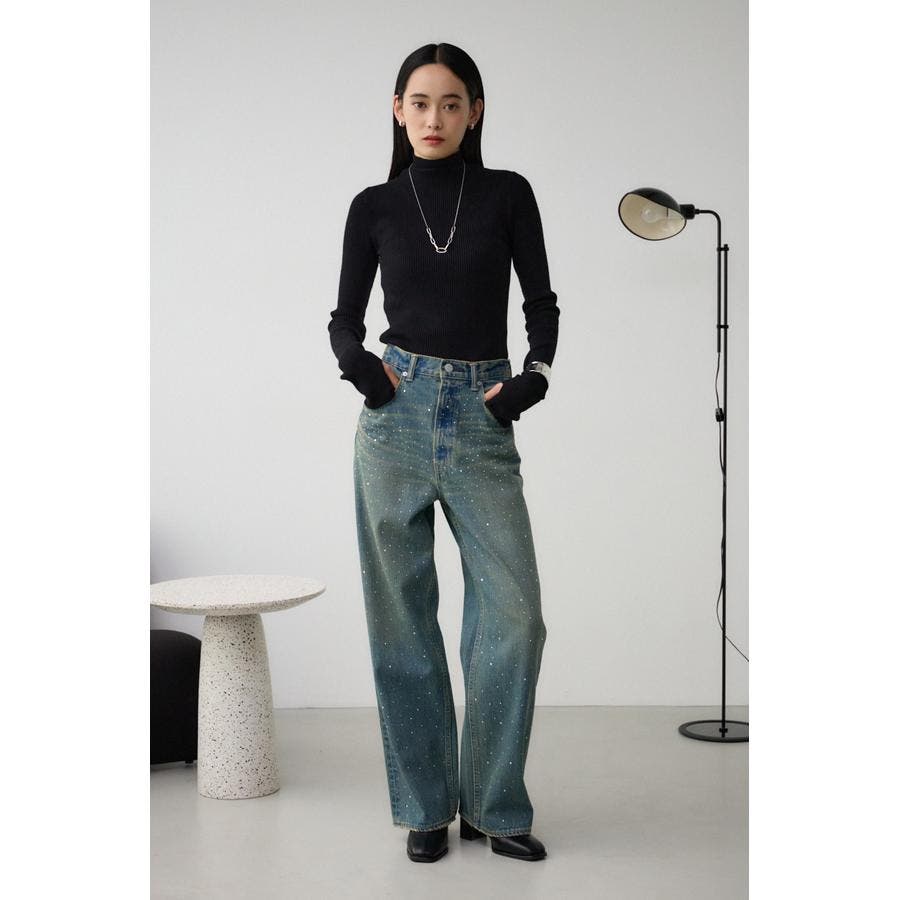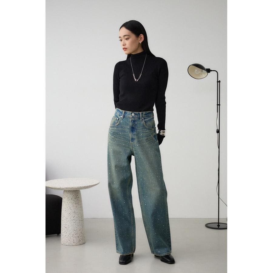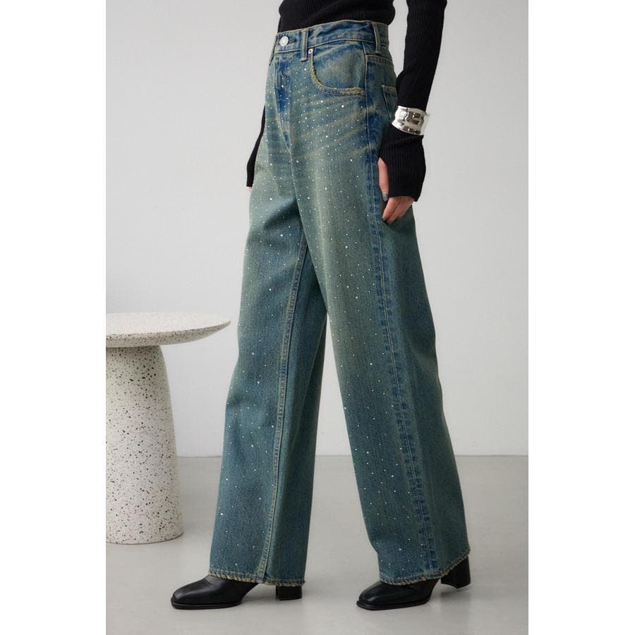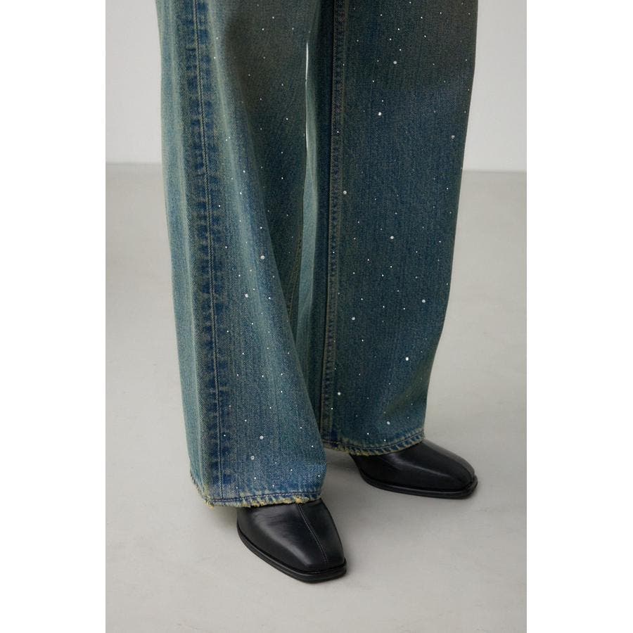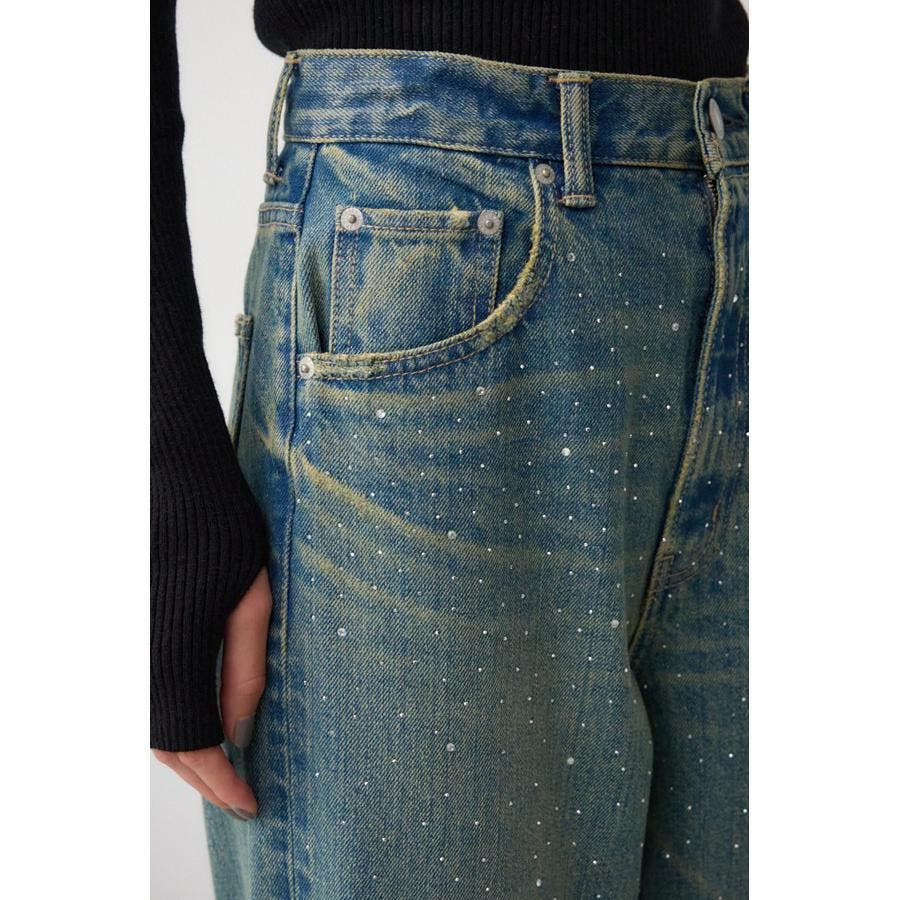 ラインストーンが動くたびにキラキラと輝く今年らしいデニムパンツです。