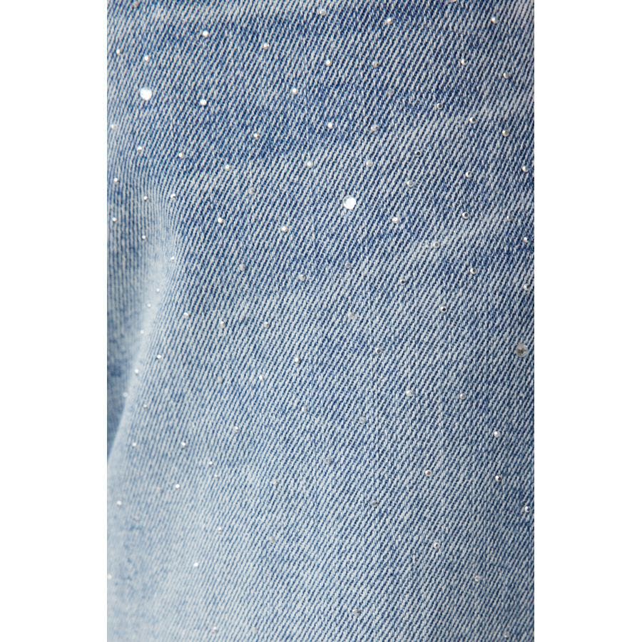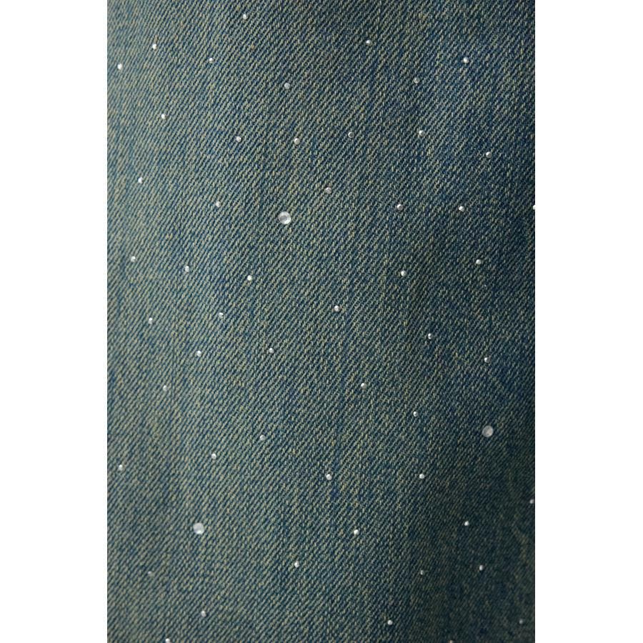 カジュアルなデニムにラインストーンがちりばめられており女性らしい印象になります。