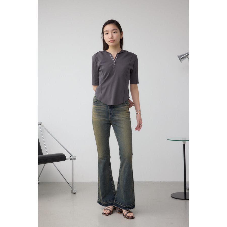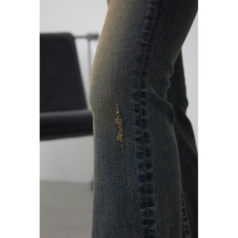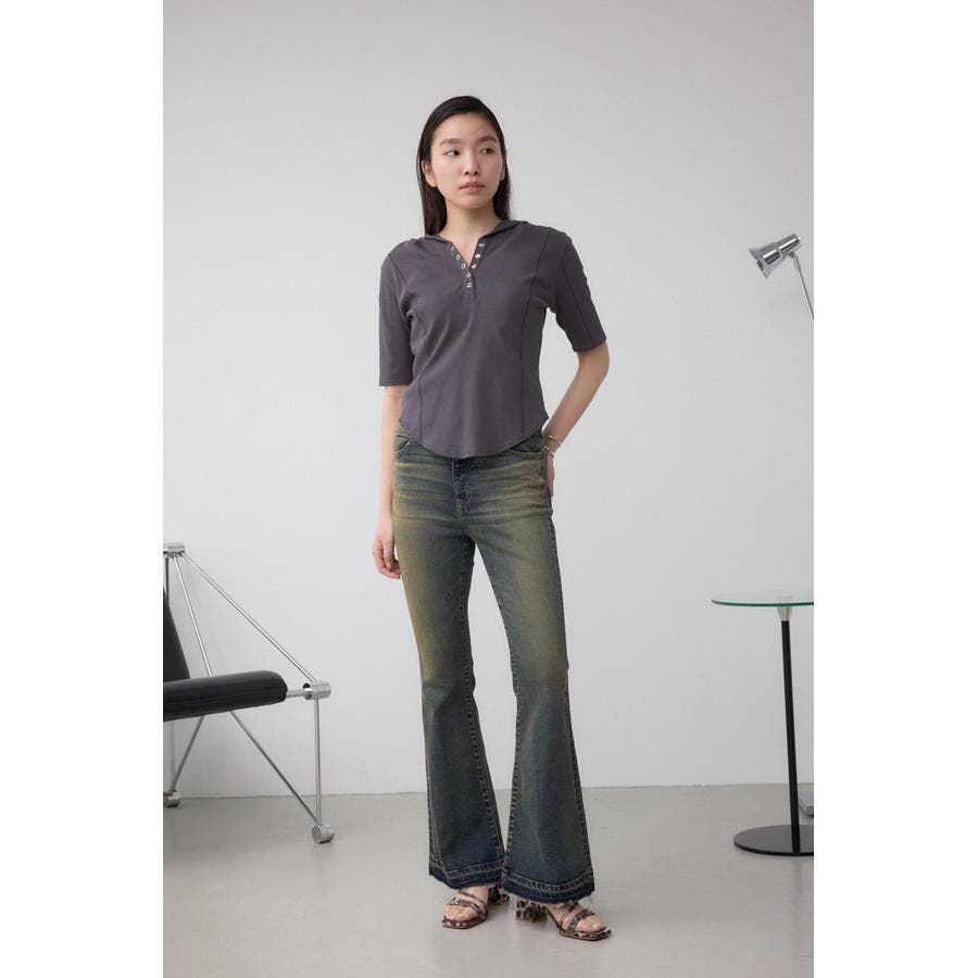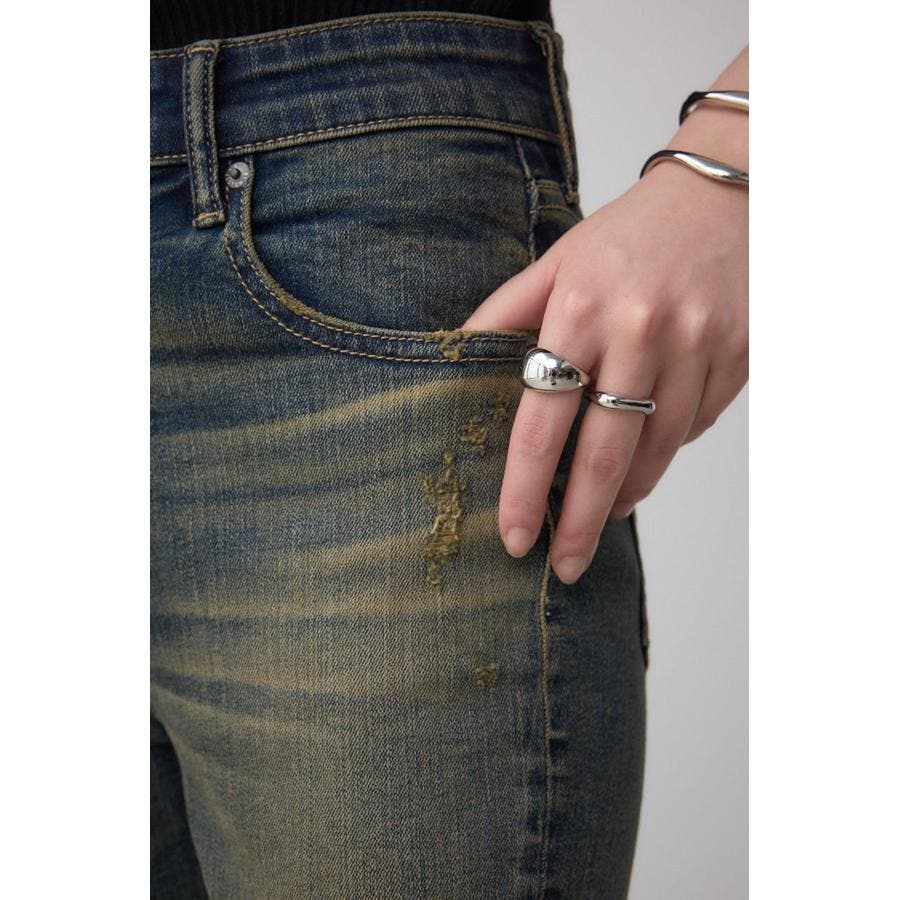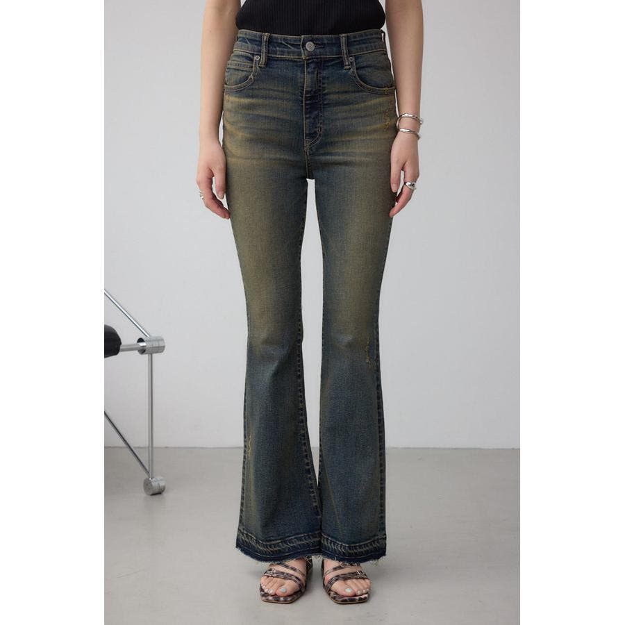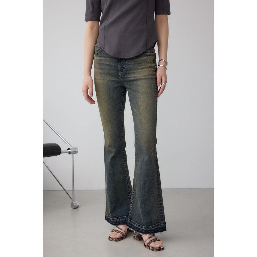 ヴィンテージライクな加工でトレンド感のあるフレアデニムパンツ。