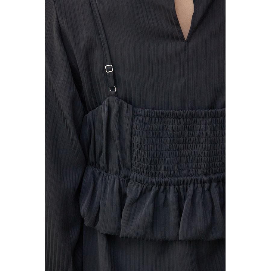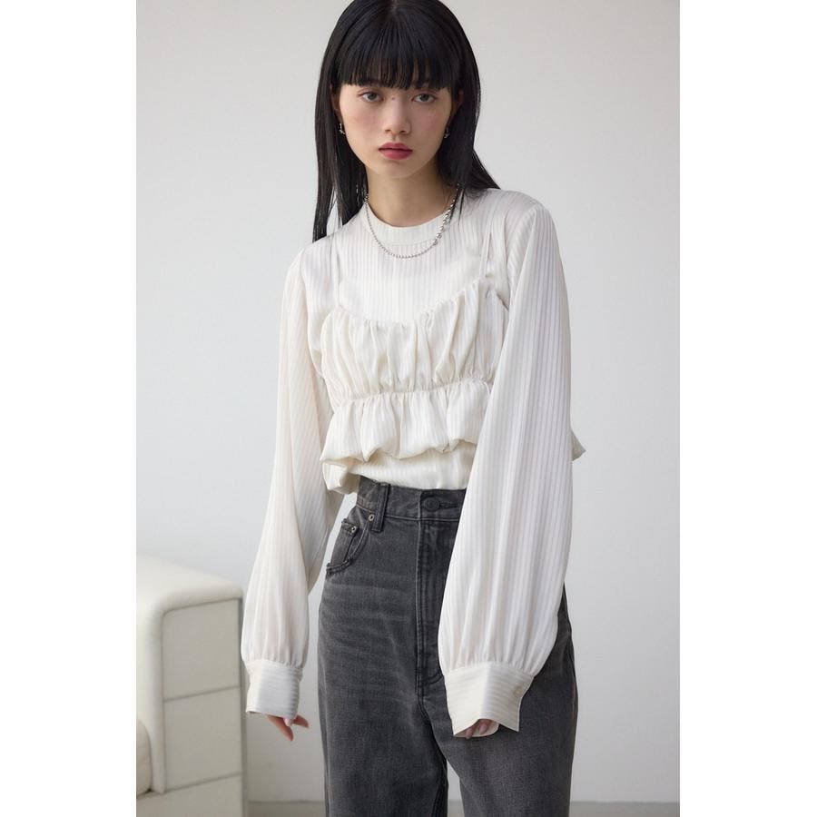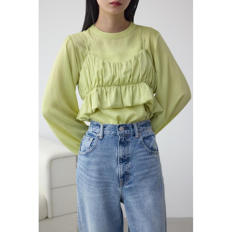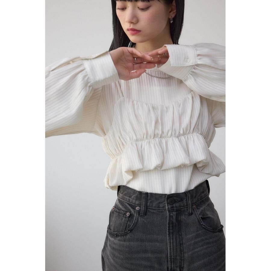 バルーンシルエットのコンパクトな着丈のビスチェがスタイルアップ効果も。