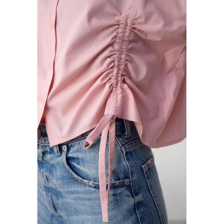 ギャザーを絞ってハイウエストボトムを合わせるスタイリングが今季らしくおすすめです。