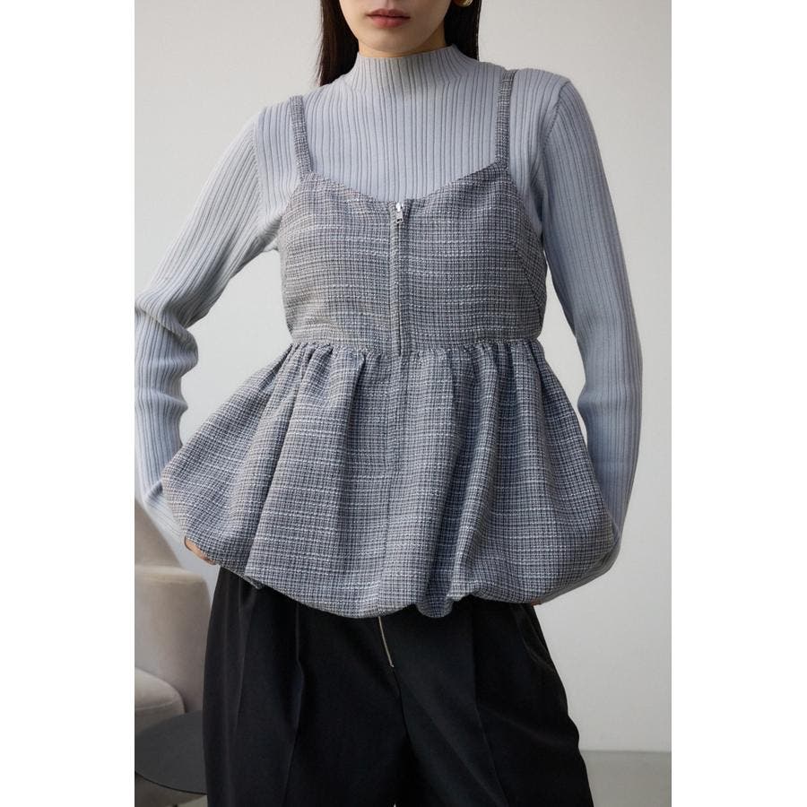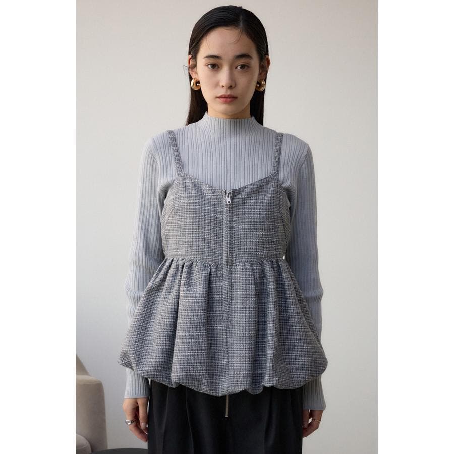 スタイルアップを叶えるバルーンシルエットのキャミビスチェです。