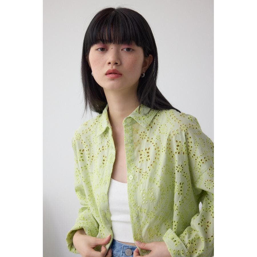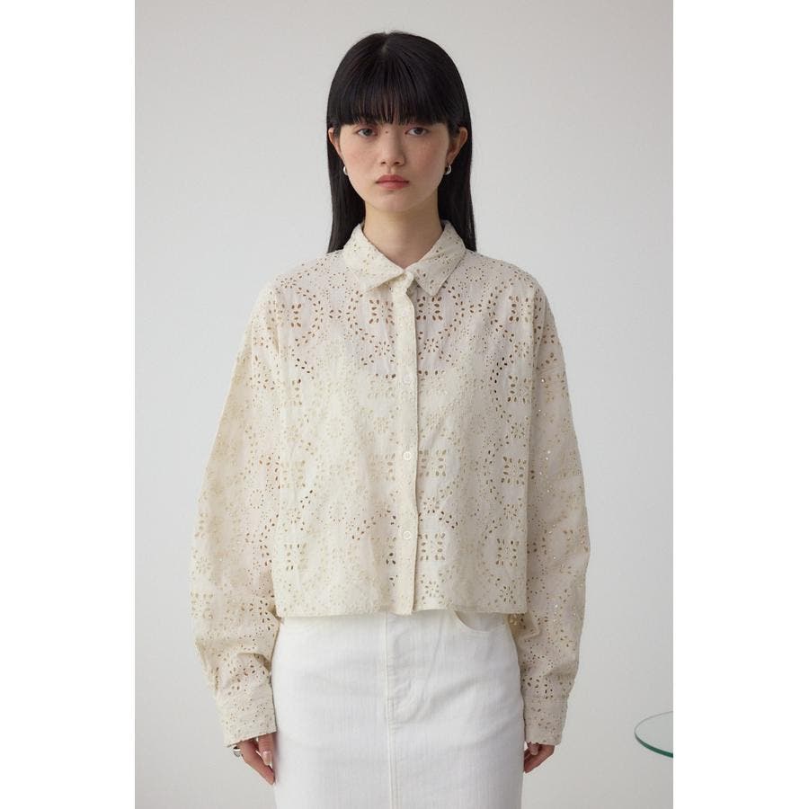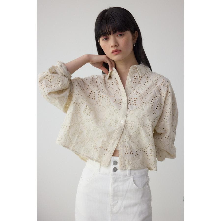 コットンレースクロップドシャツ