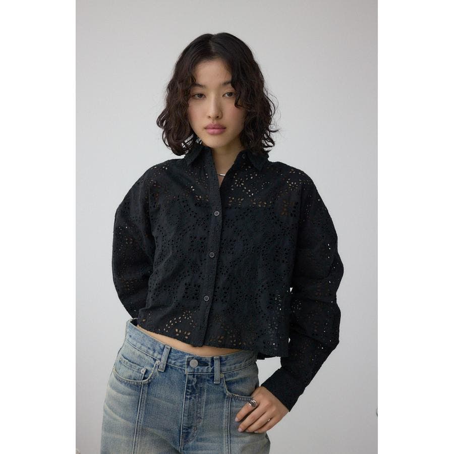 ■コットンレースクロップドシャツ