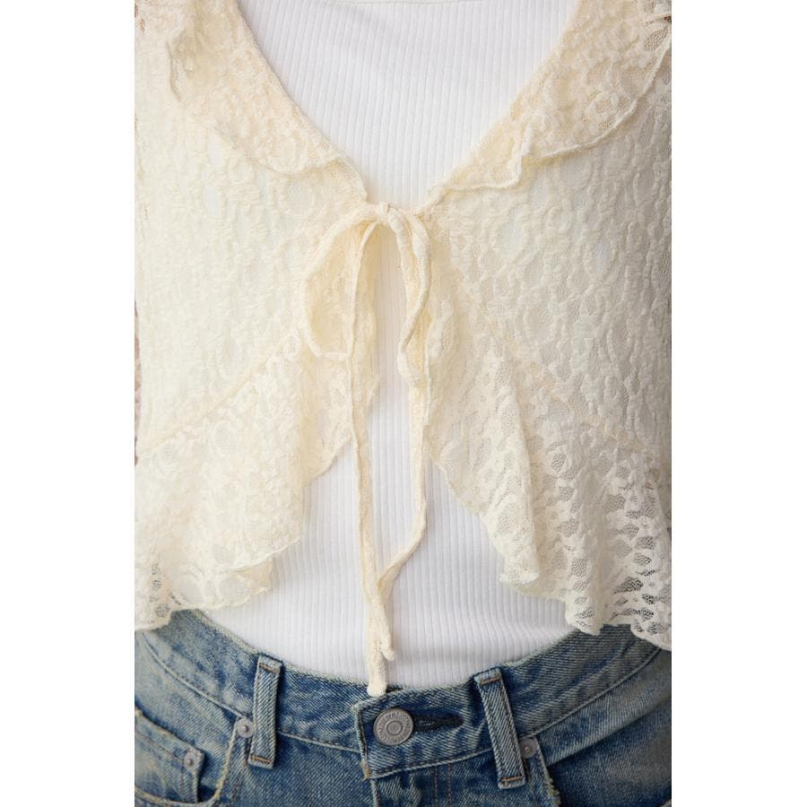 フロントは身生地と同じレース素材のリボンをつけており、結んで閉めることが可能です。