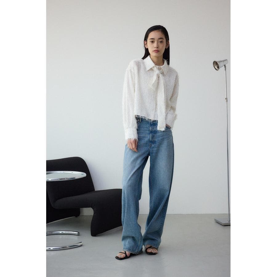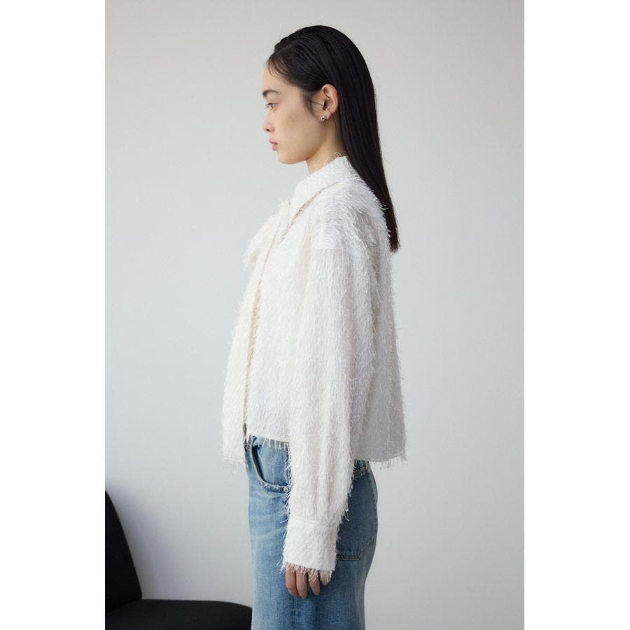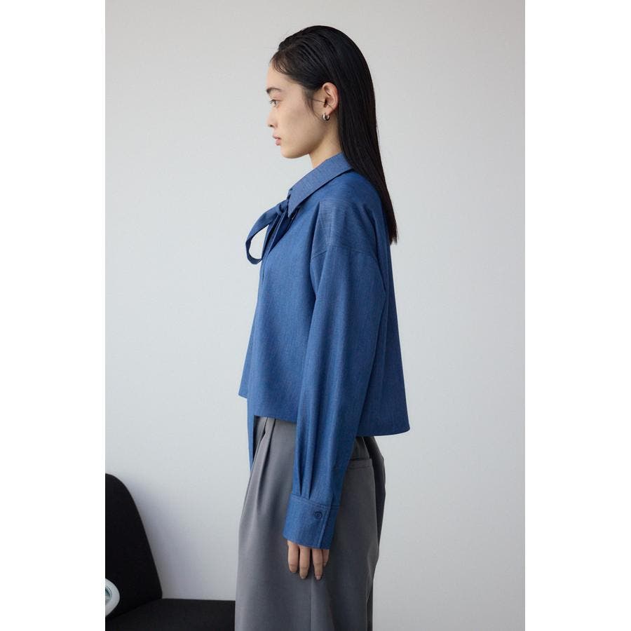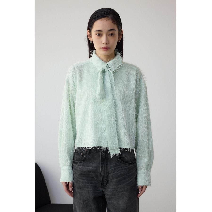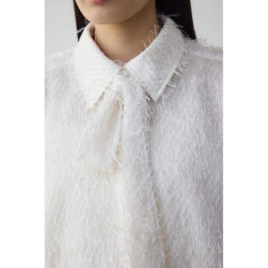 表情のある素材感を使用したボウタイデザインブラウス。