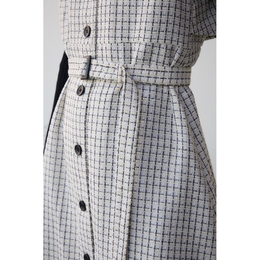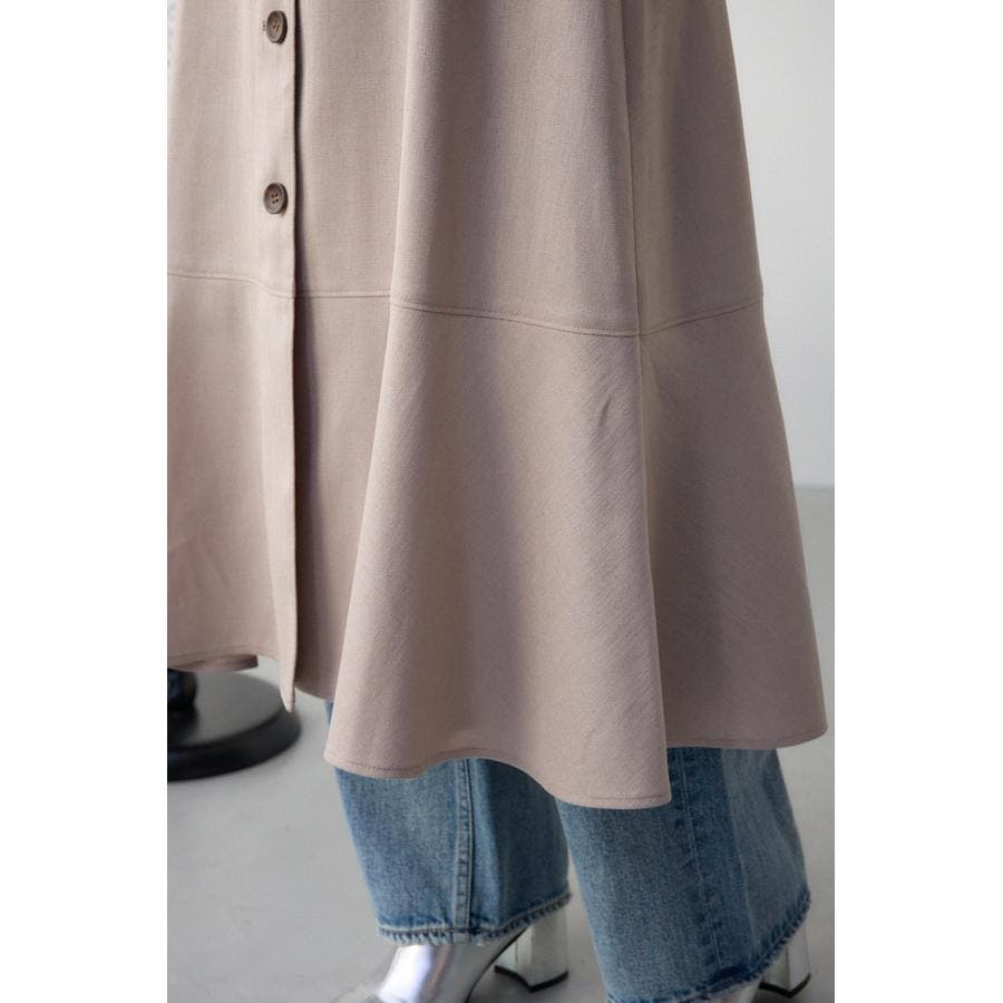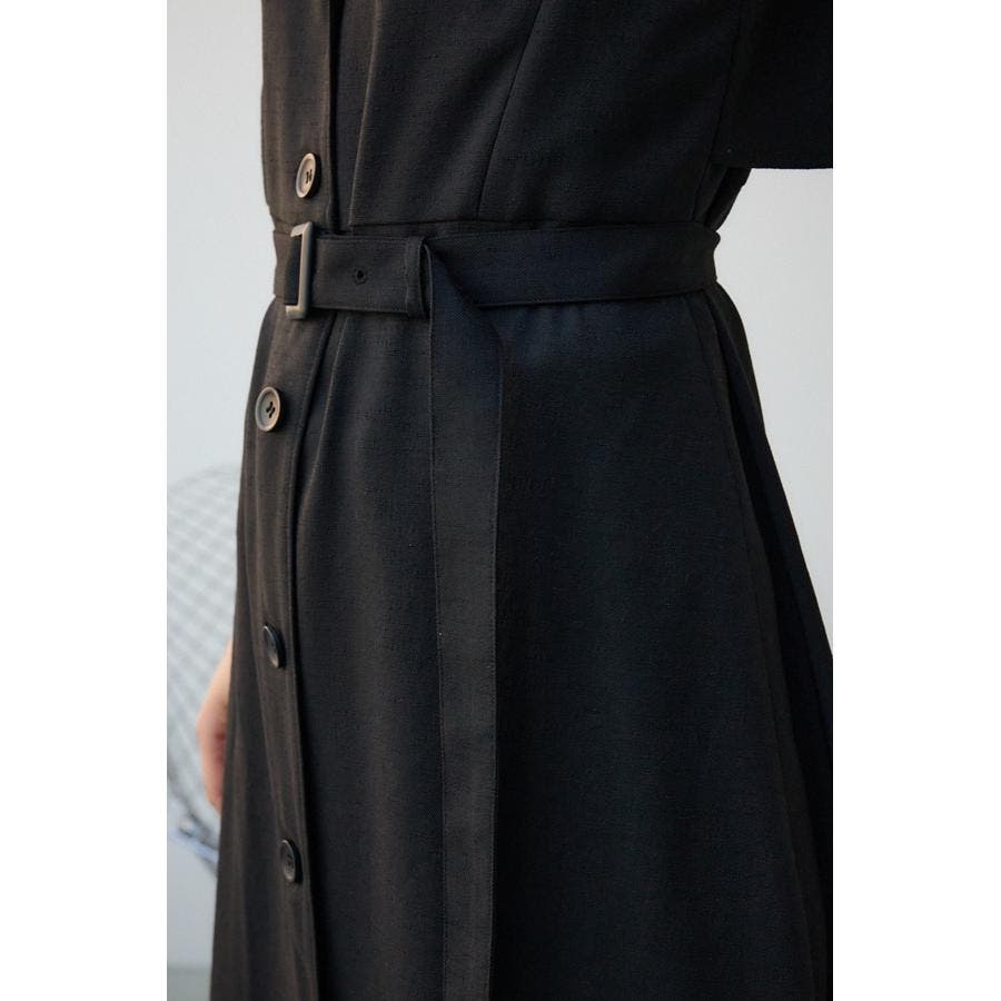 シンプルながら裾のフレア切り替えデザインと、共布ベルト付きでウエストマークができ、品良くスタイリングに馴染んでくれます。