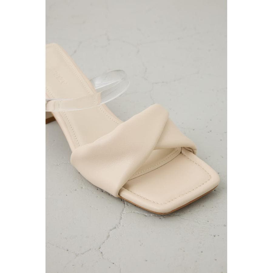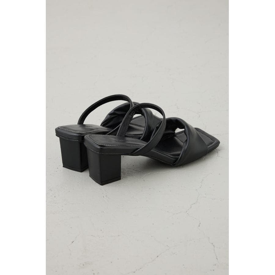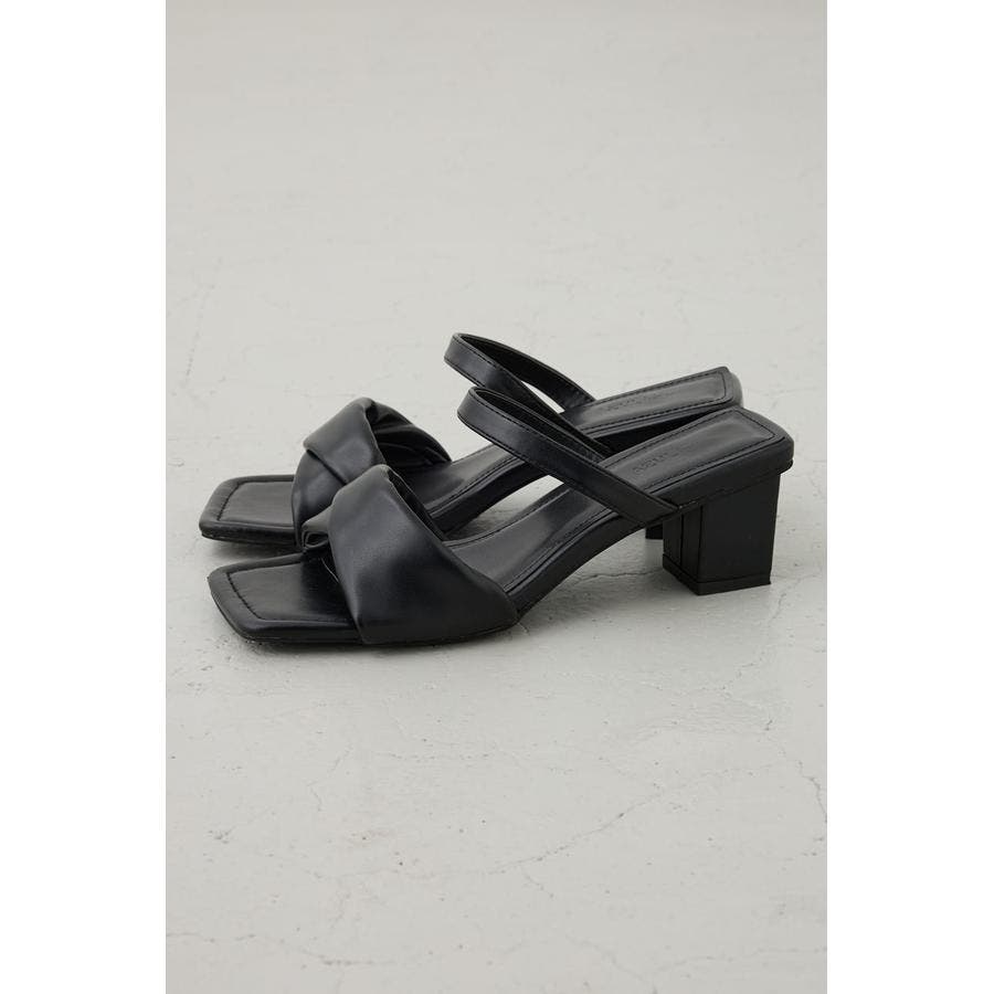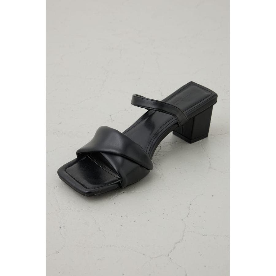 合成皮革のツイストベルトが上品な存在感を放つ、女性らしさを引き立てるヒールサンダル。