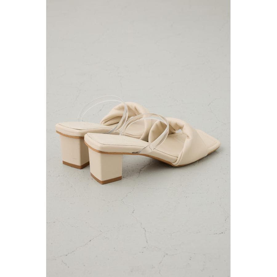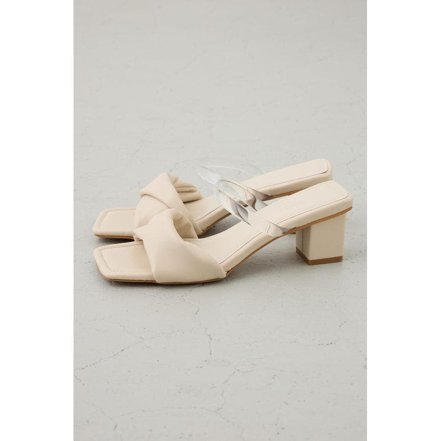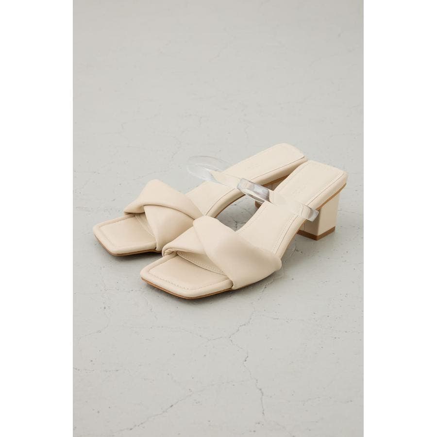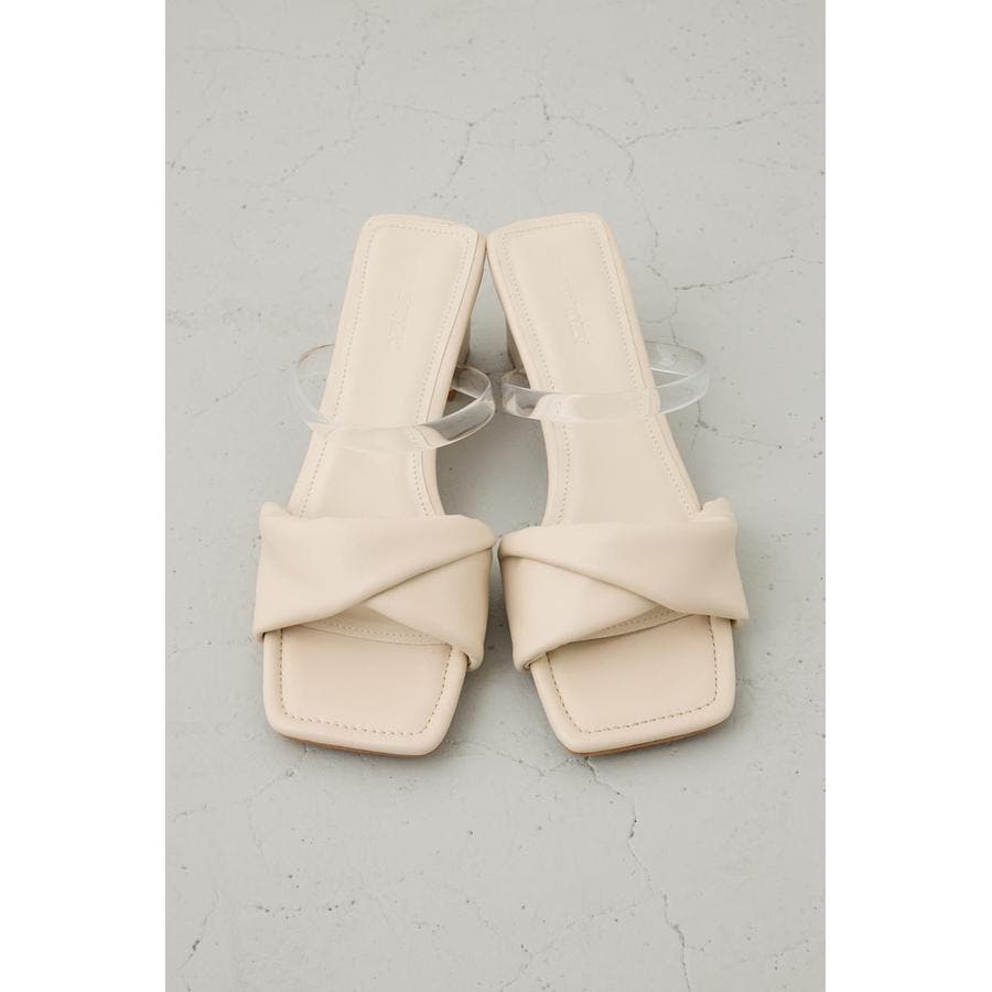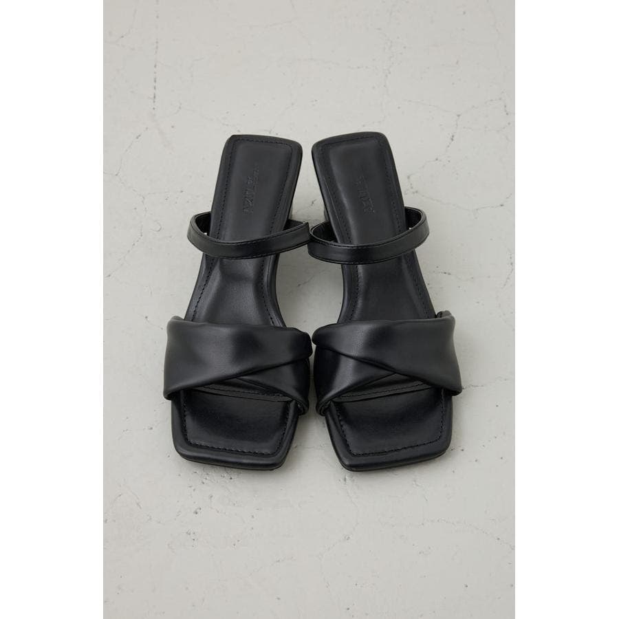合成皮革のツイストベルトが上品な存在感を放つ、女性らしさを引き立てるヒールサンダル。