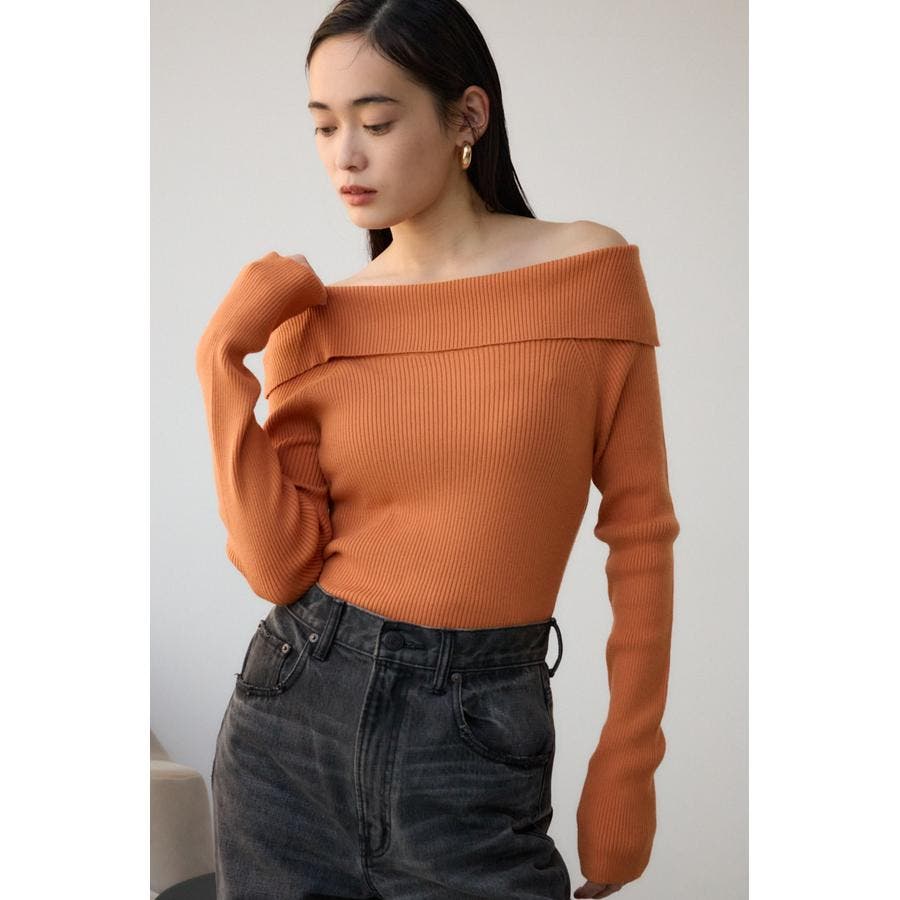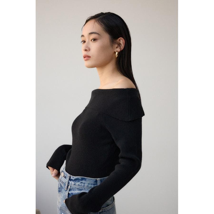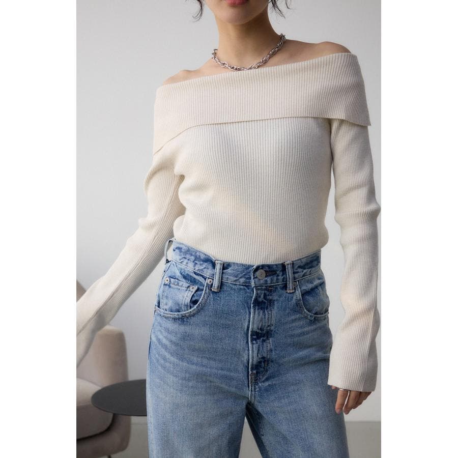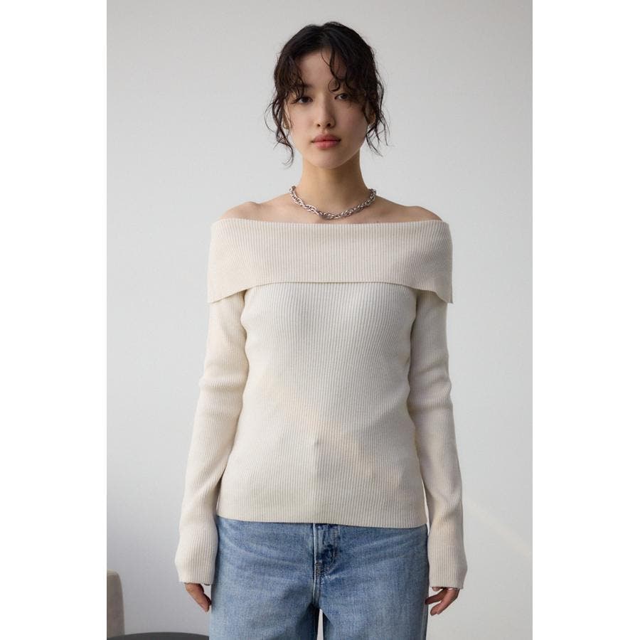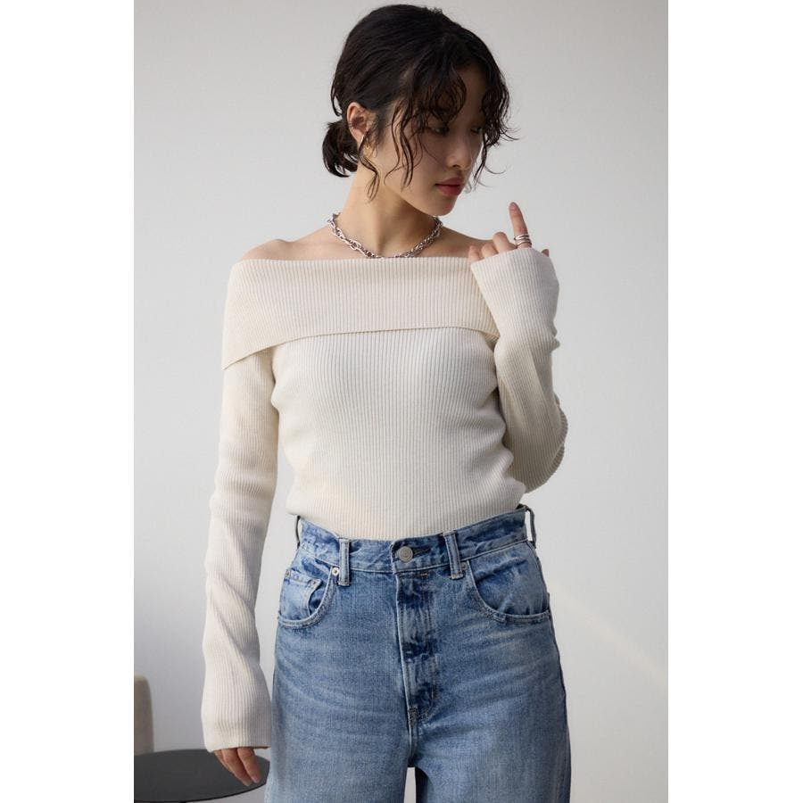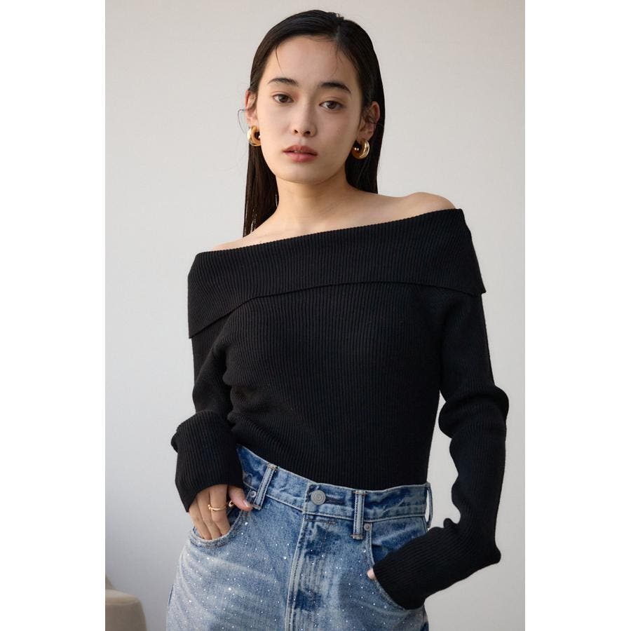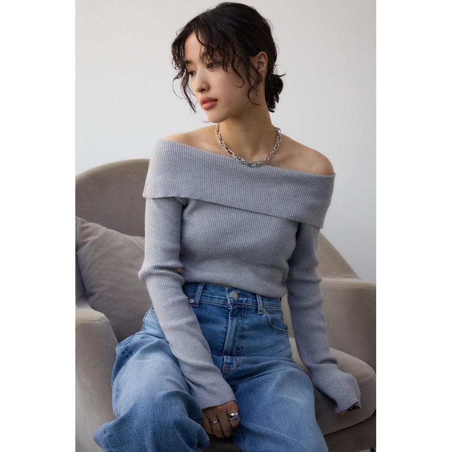 トレンドのオフショルダーニット。