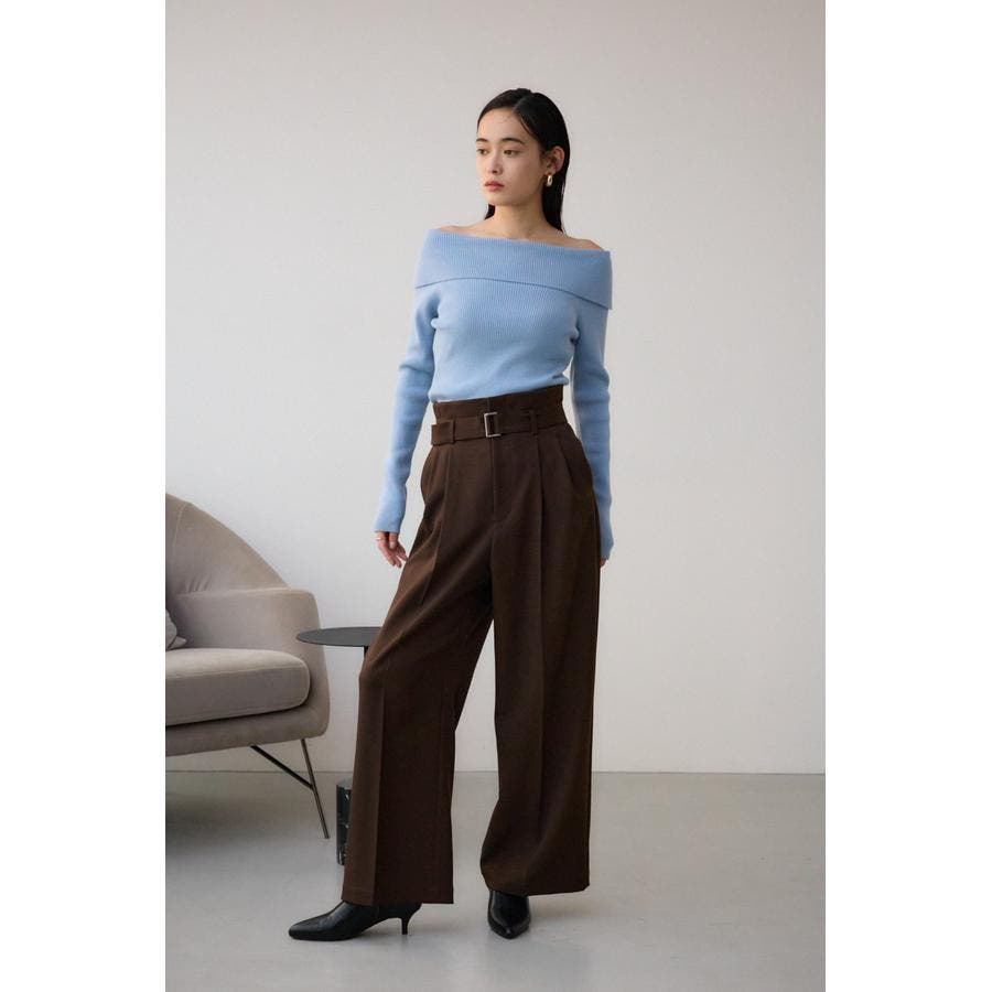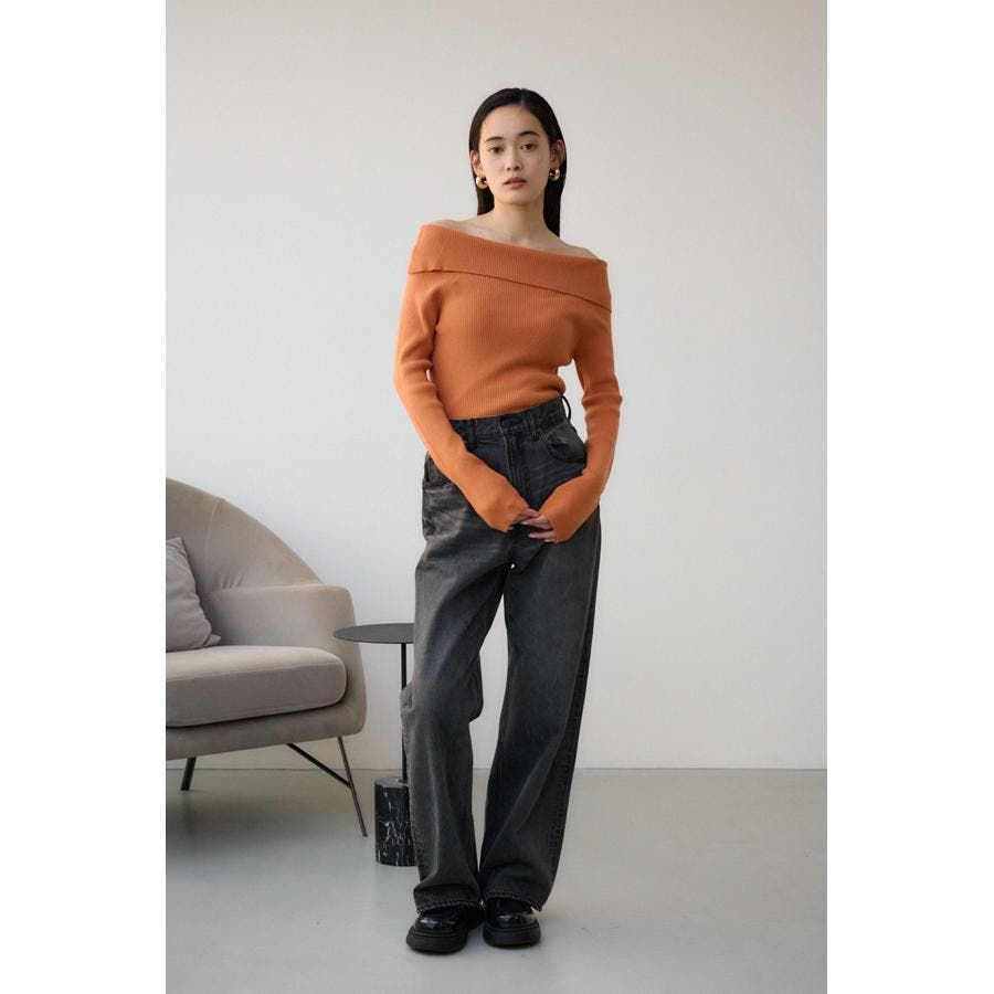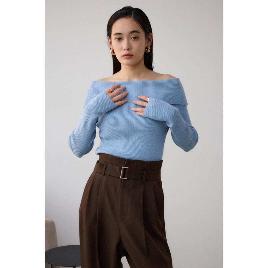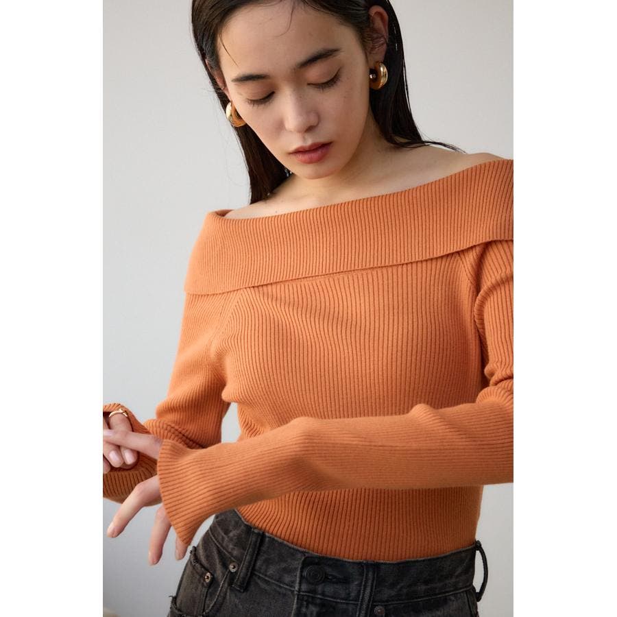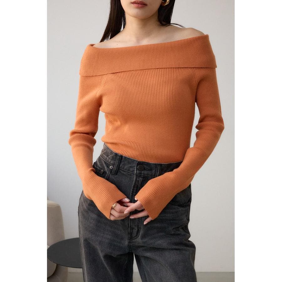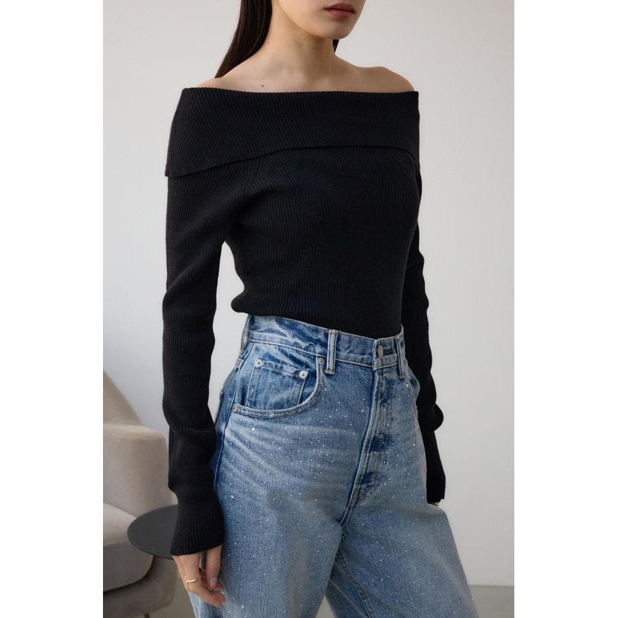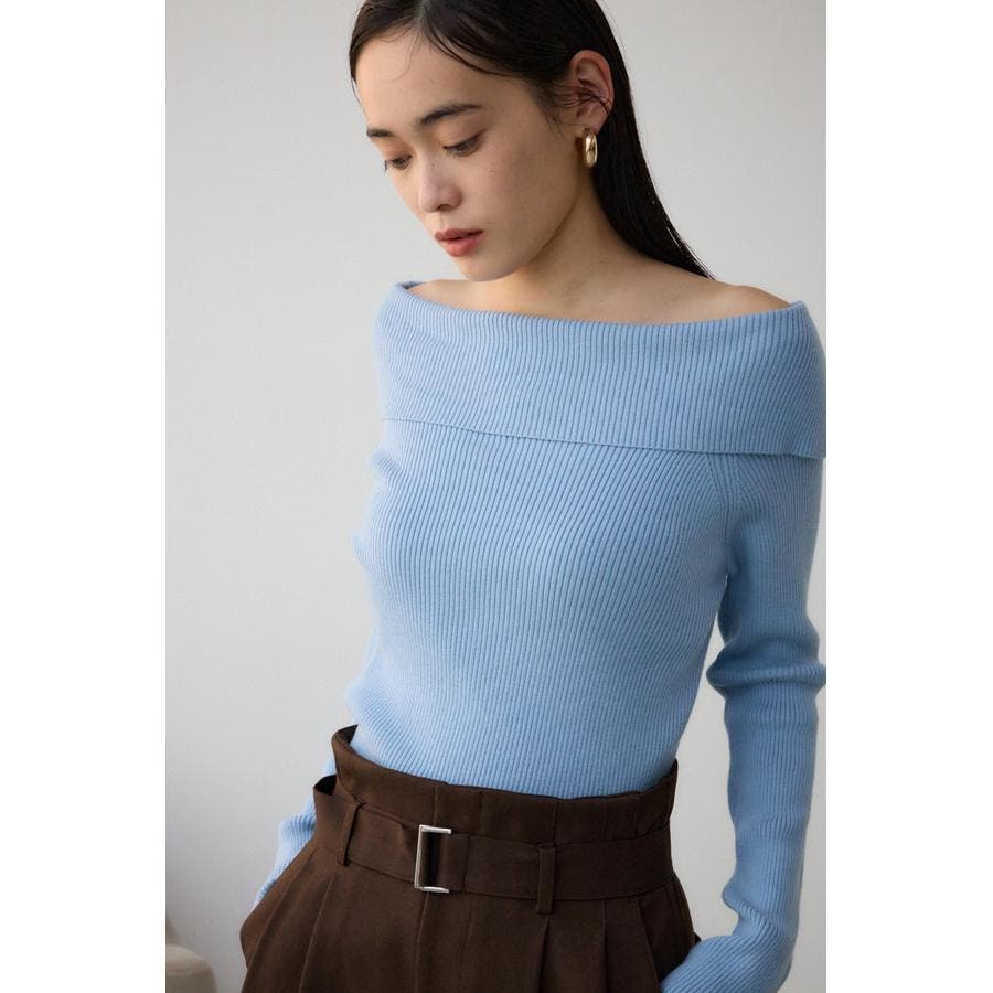 トレンドのオフショルダーニット。