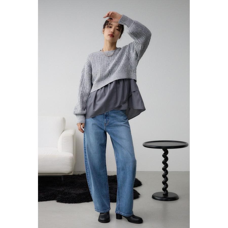 ワイドデニム、ハイウエストのデニムスカートとの合わせがおすすめ。