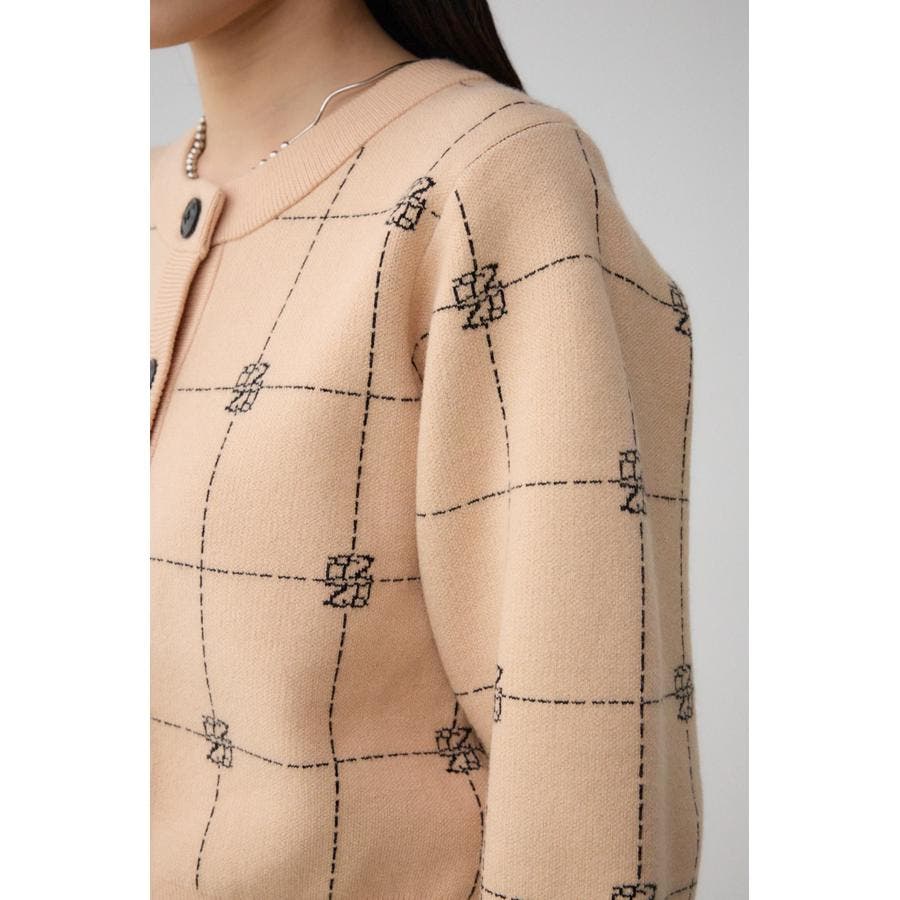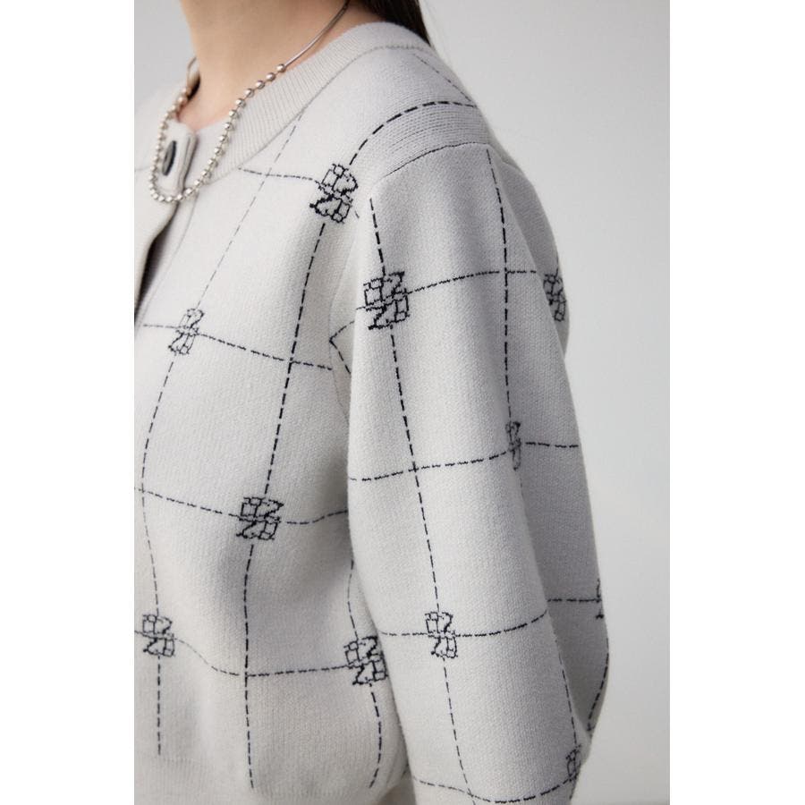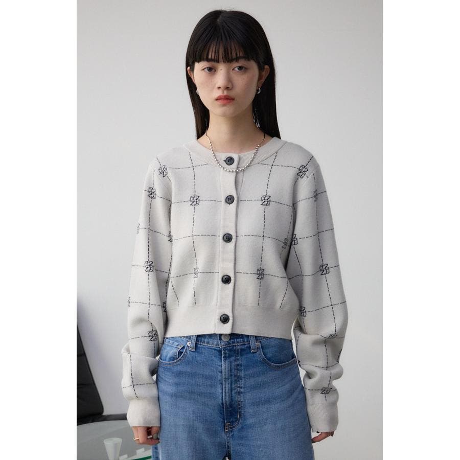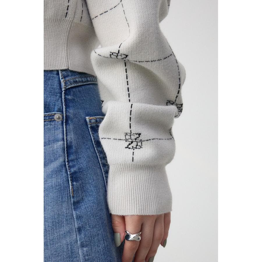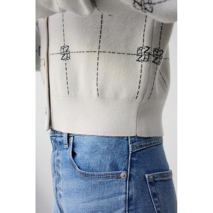 コンパクトなシルエット、クロップド丈がトレンドのAZオリジナルロゴをあしらった幾何学柄のニットです。